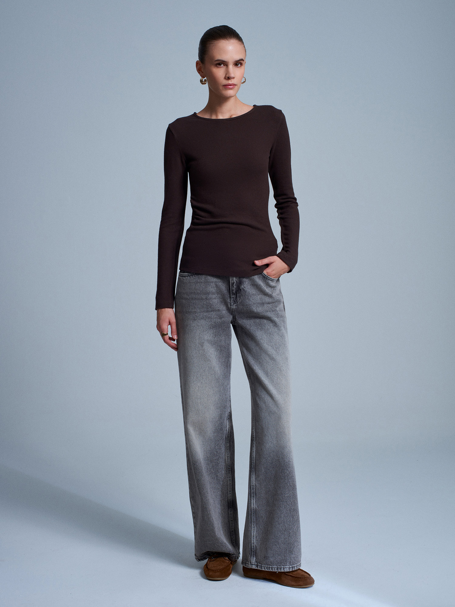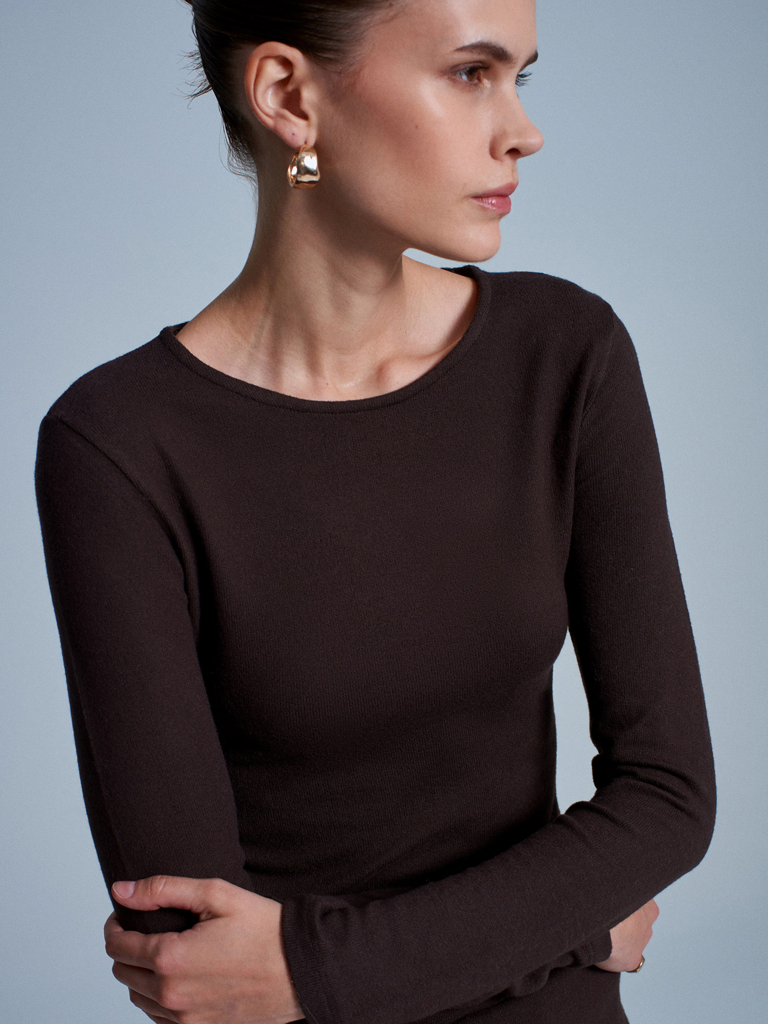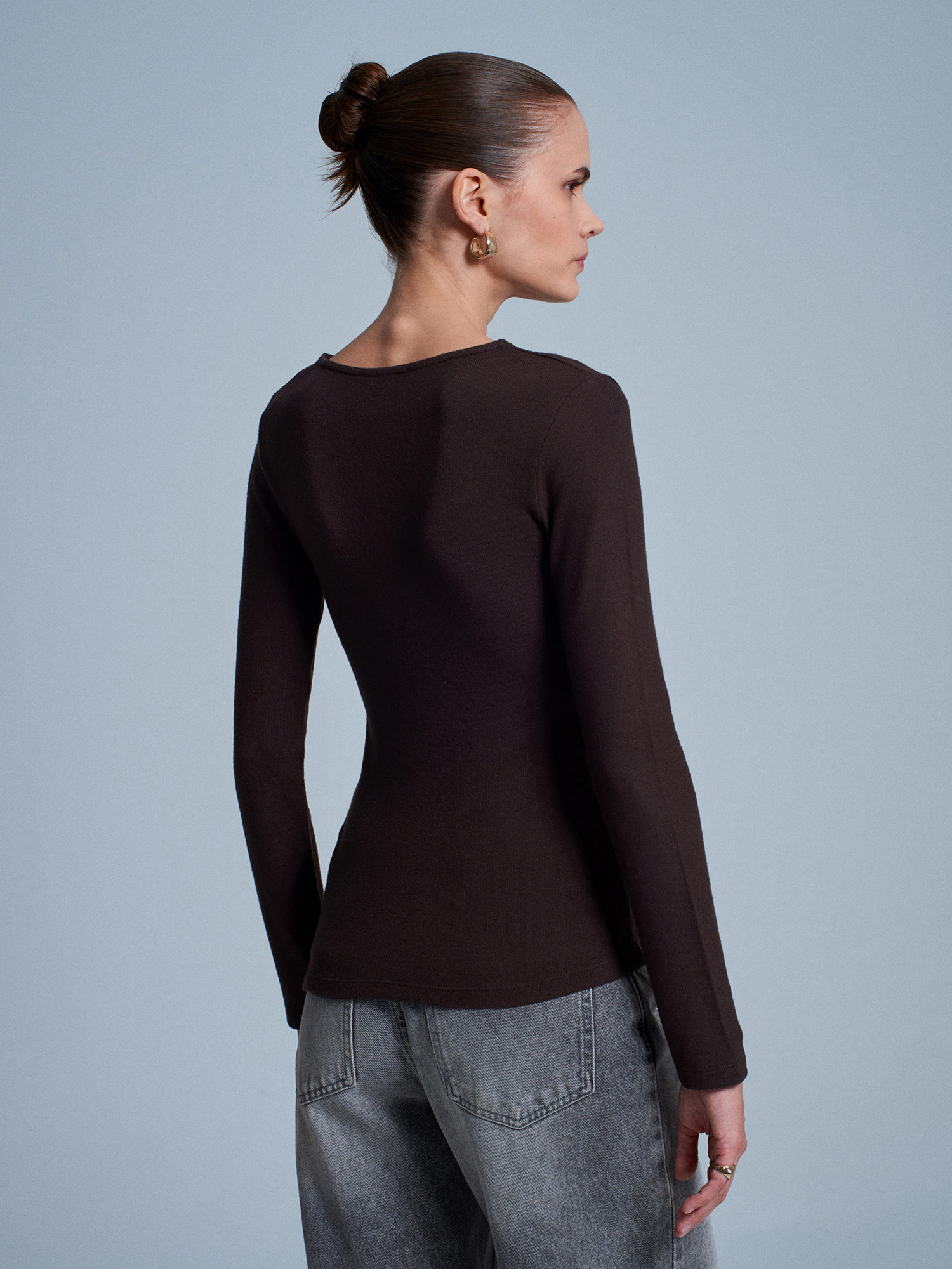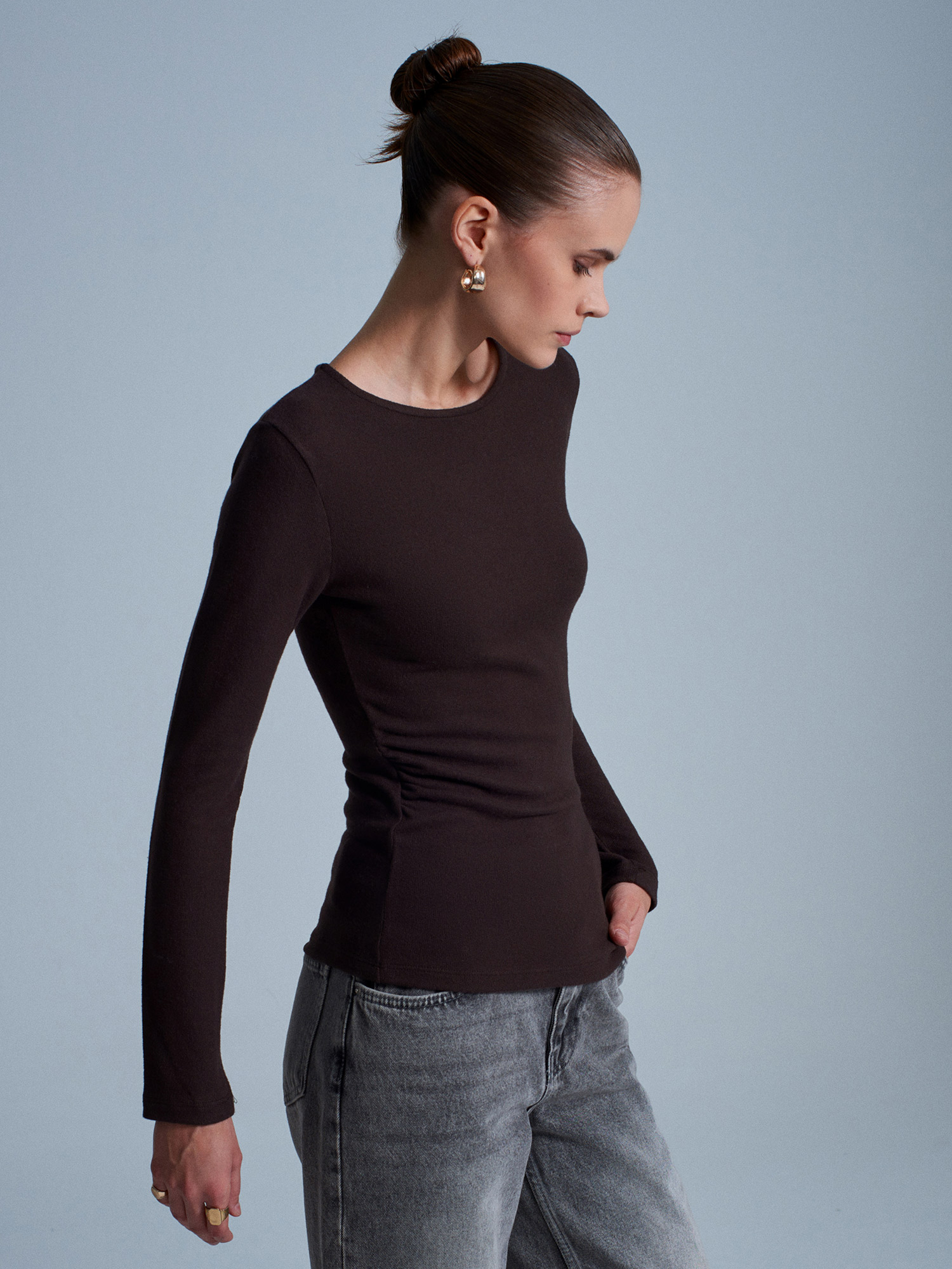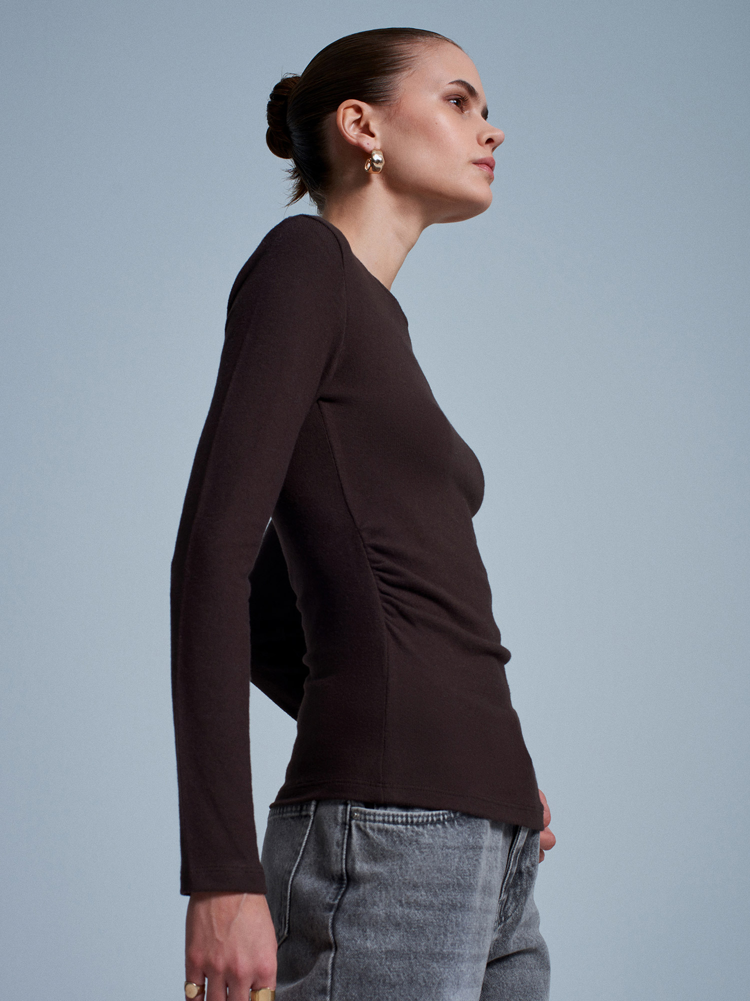 32194 Uzun Kollu Büzgülü Top-Koyu Kahve