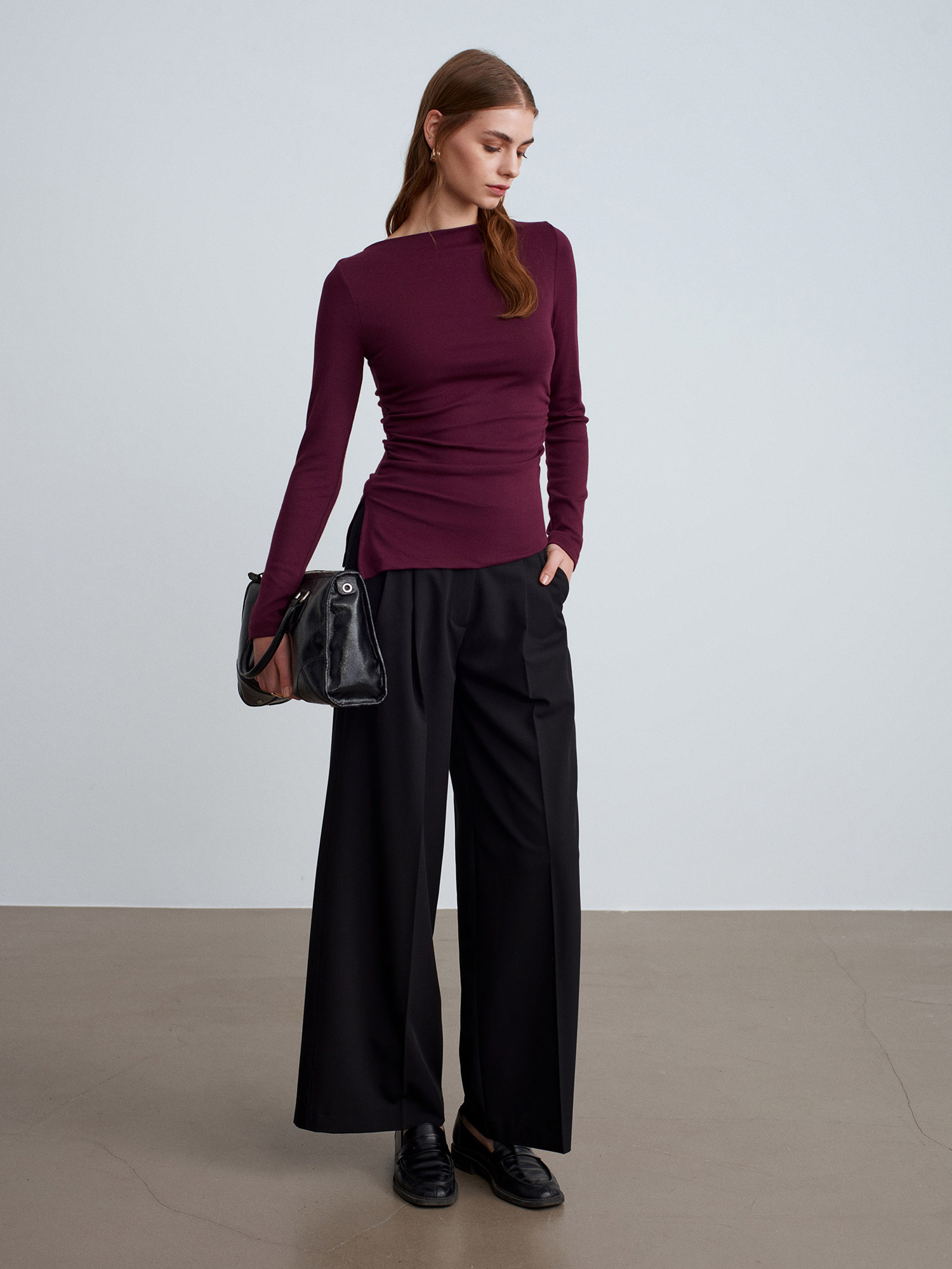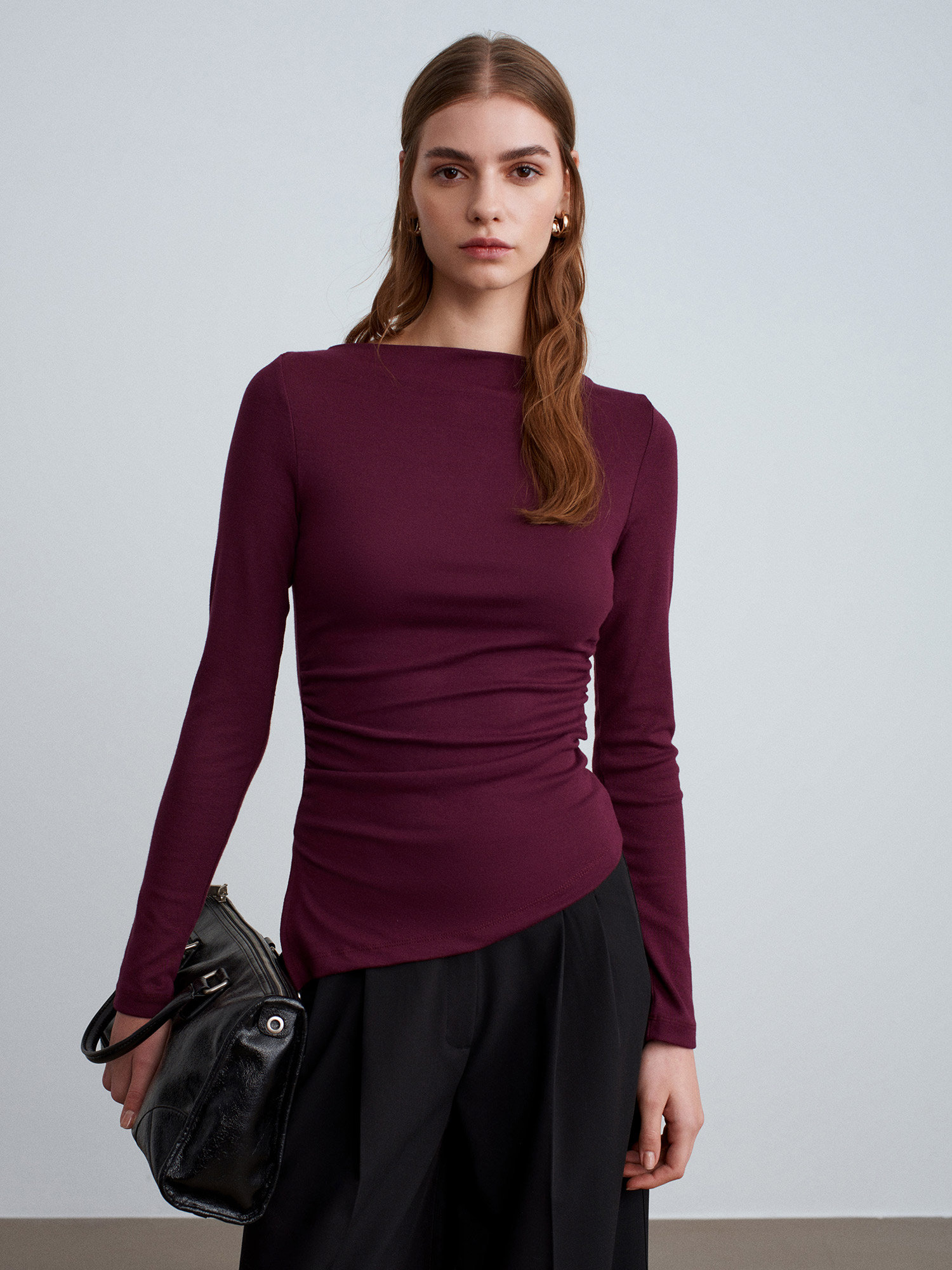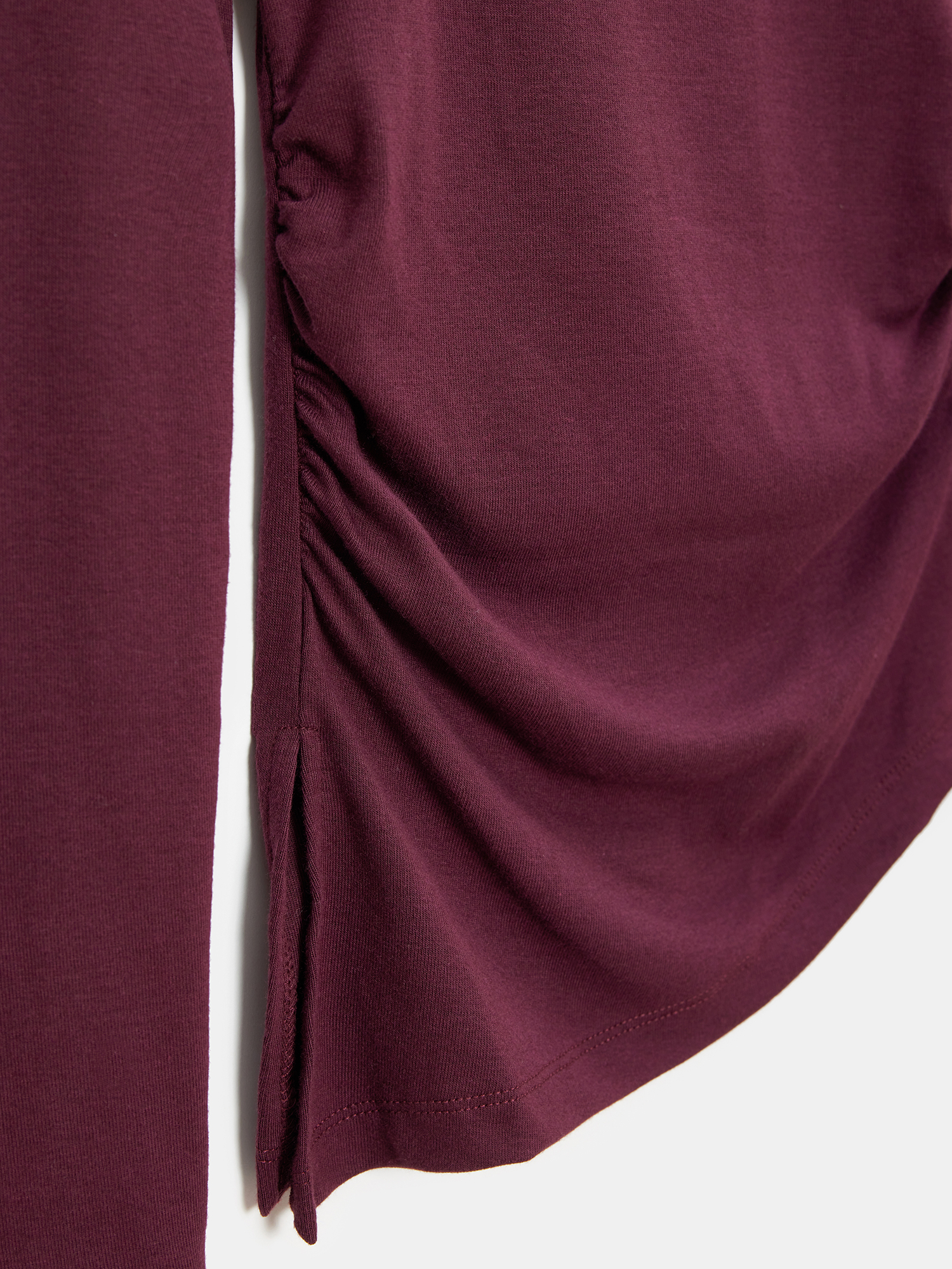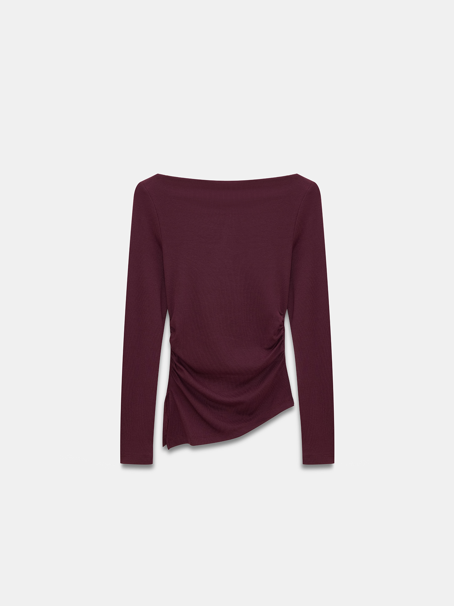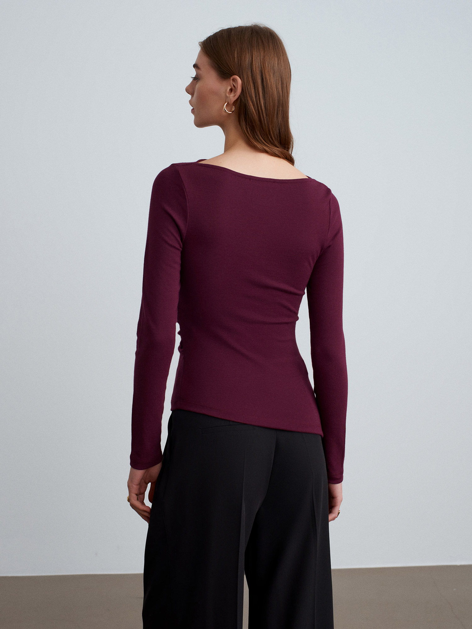 32198 Kayık Yaka Büzgülü Top-Bordo