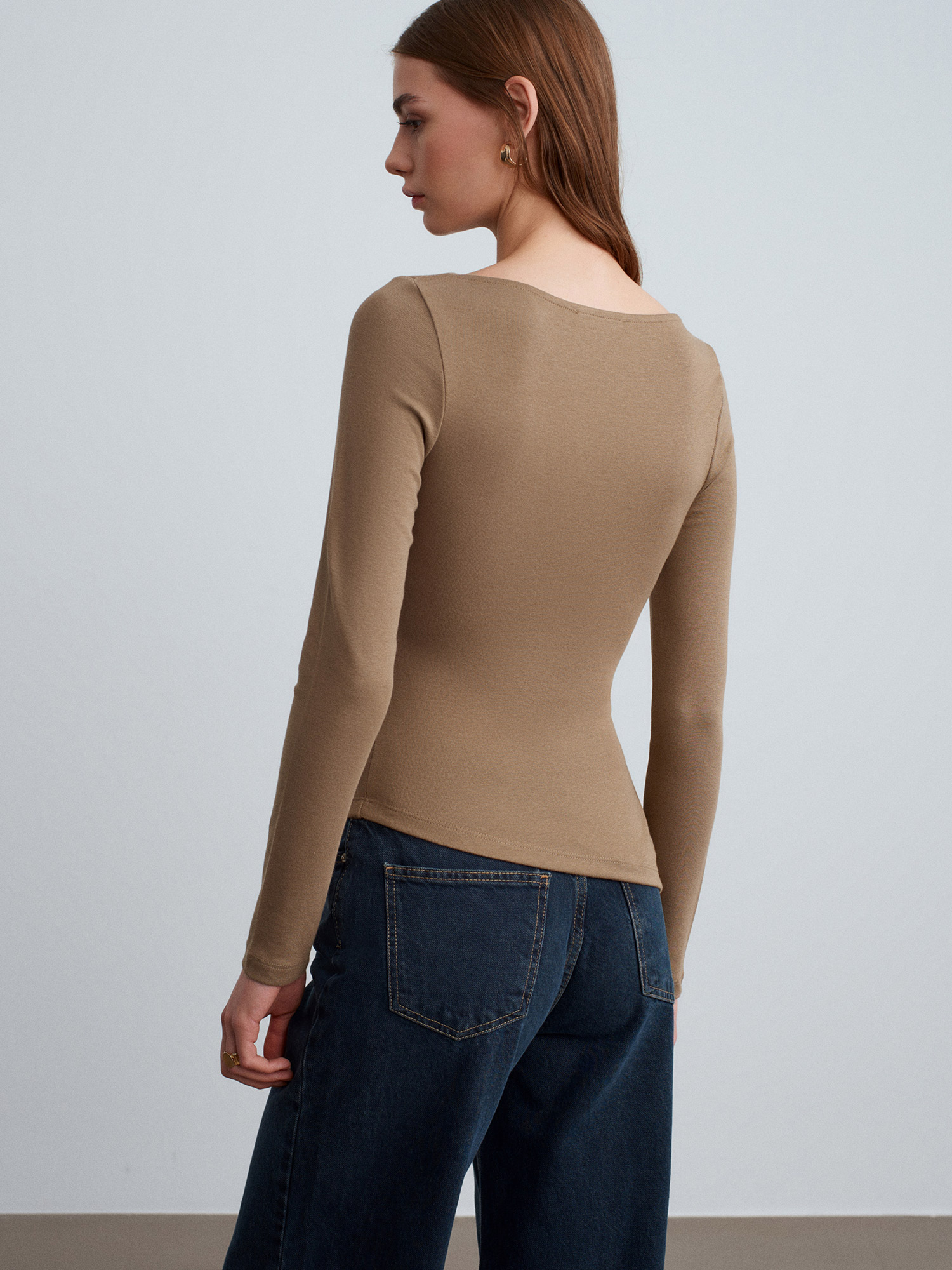 32198 Kayık Yaka Büzgülü Top-Vizon