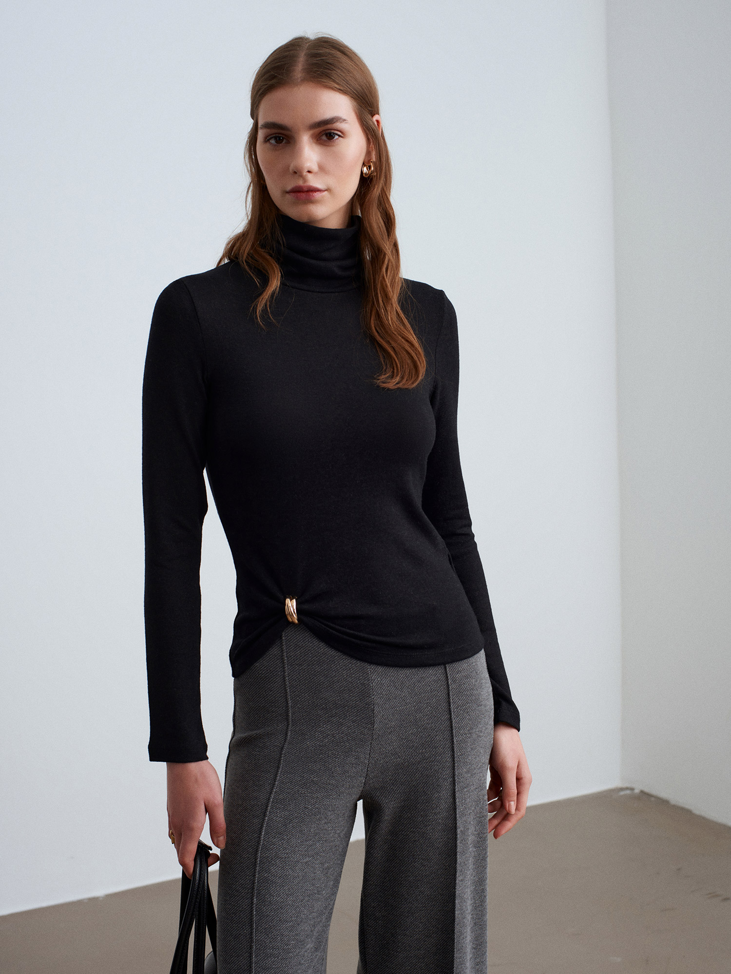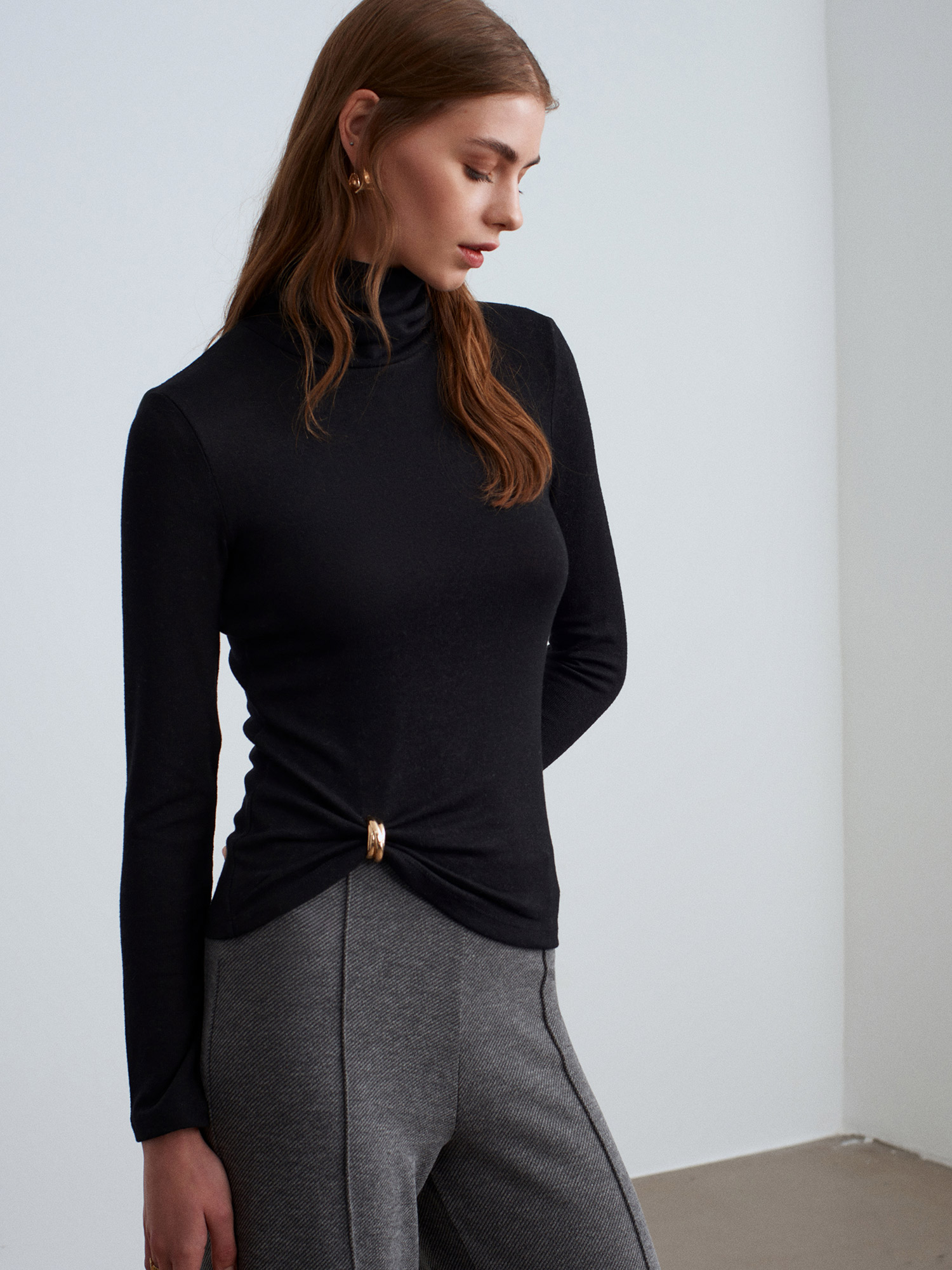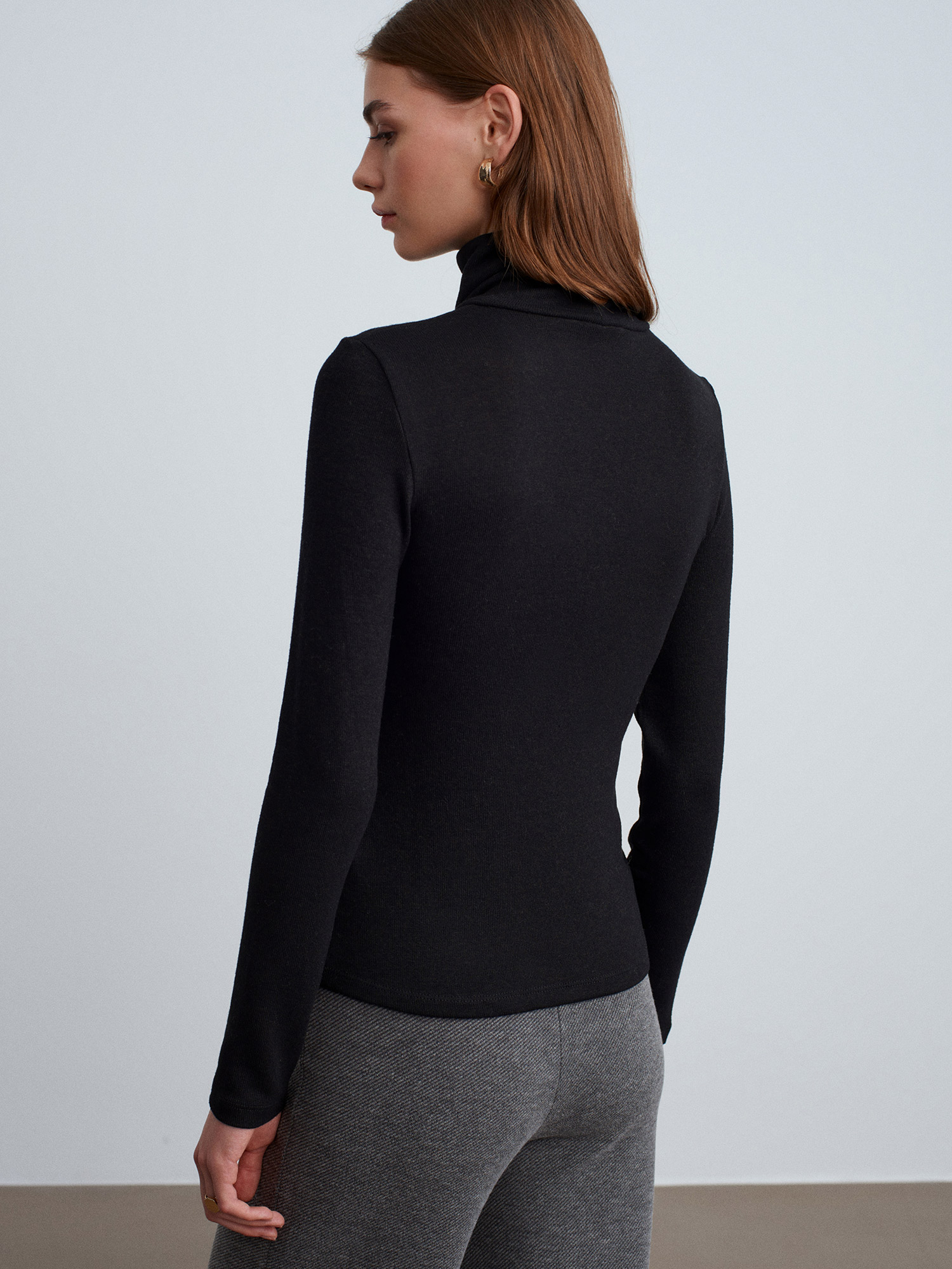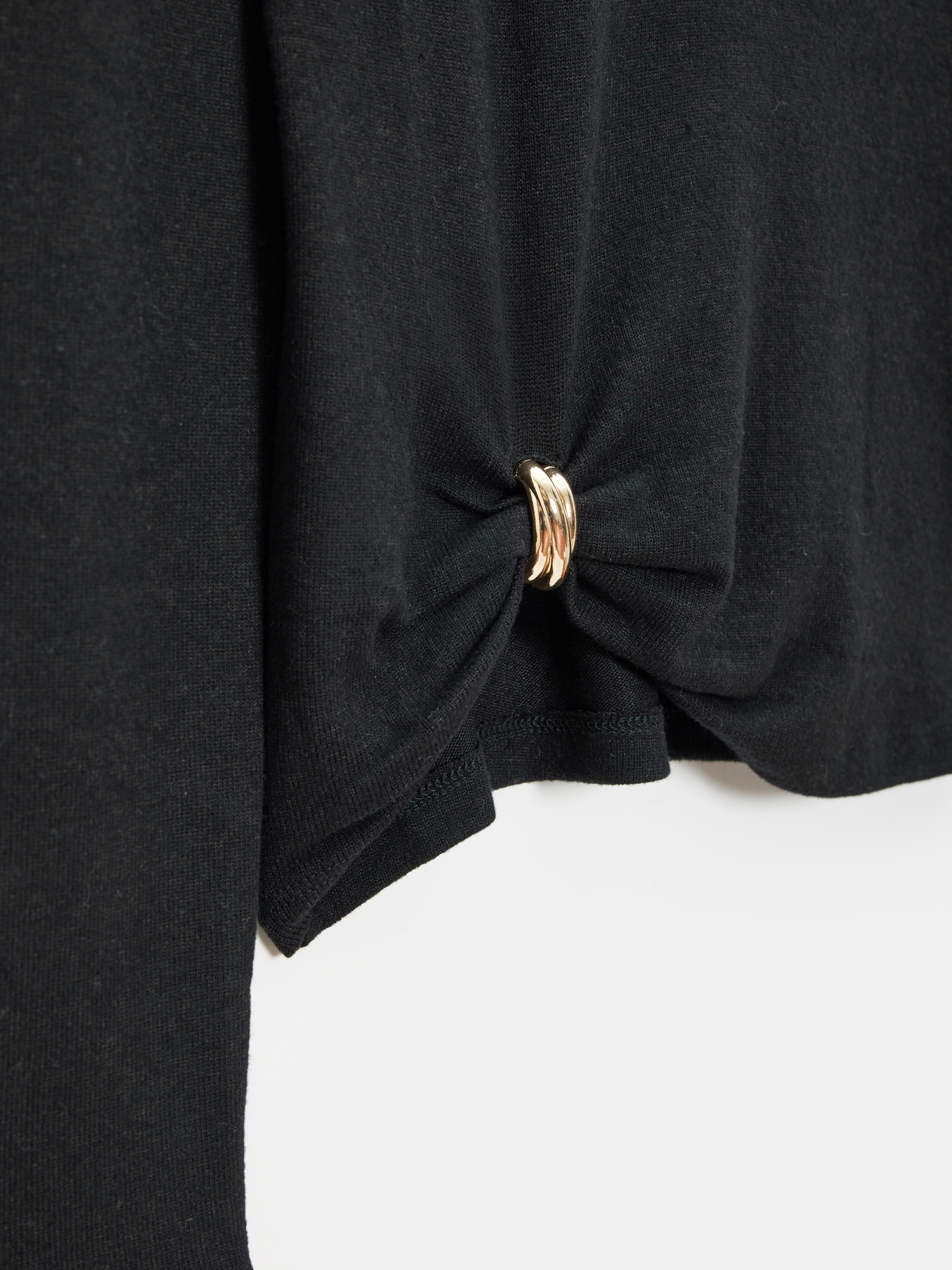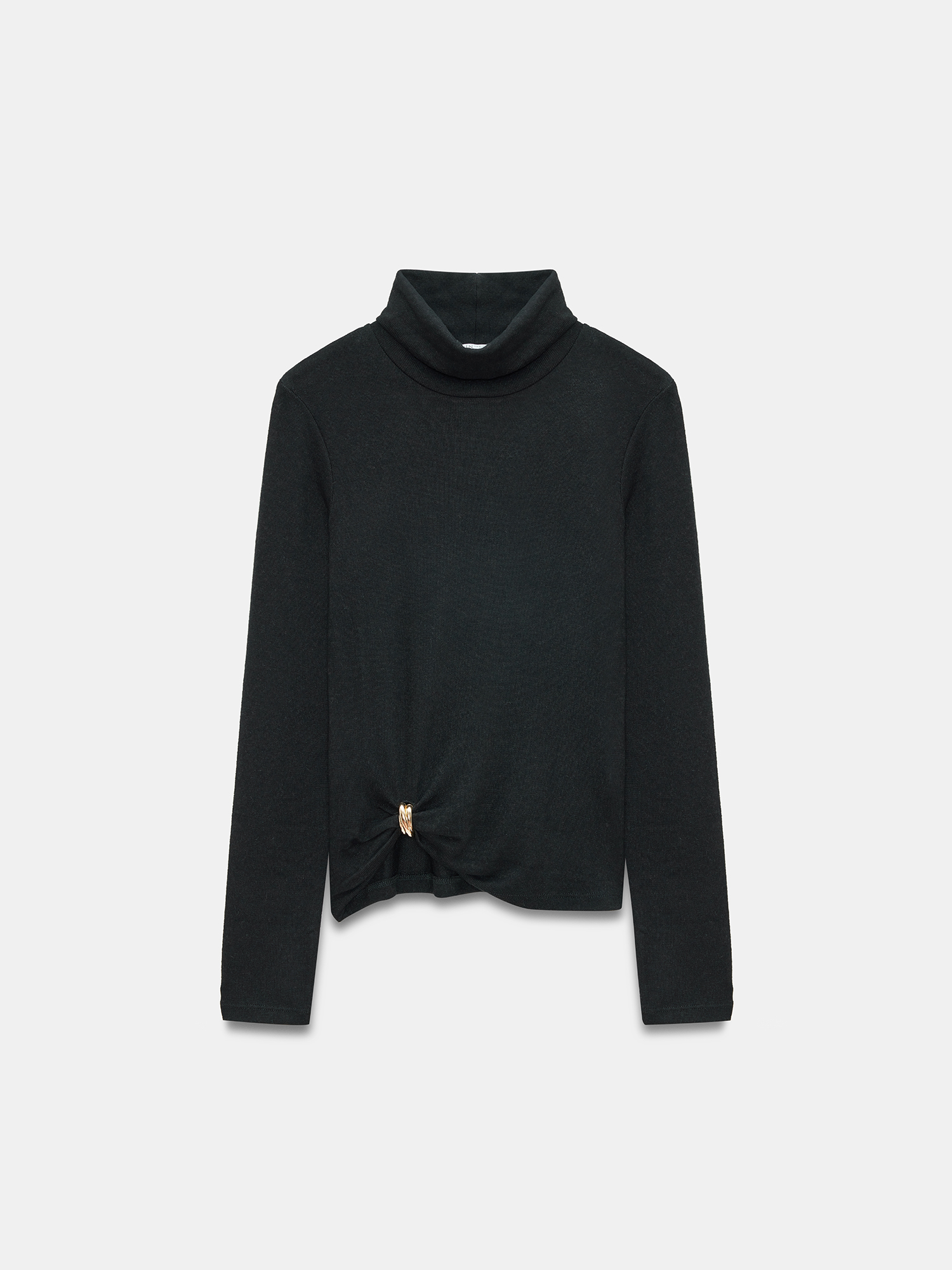32202 Aksesuar Detaylı Balıkcı Yaka Top-Siyah