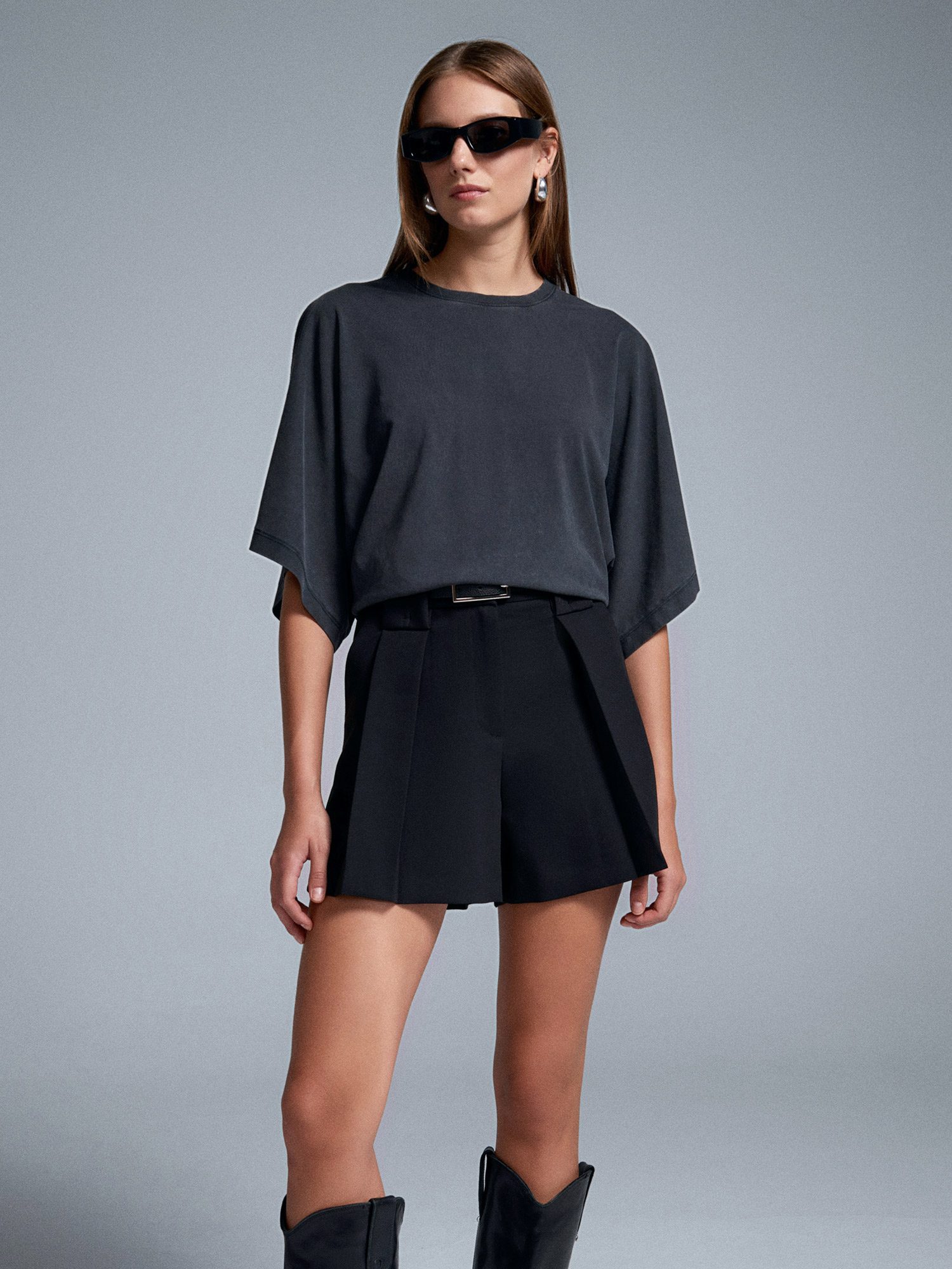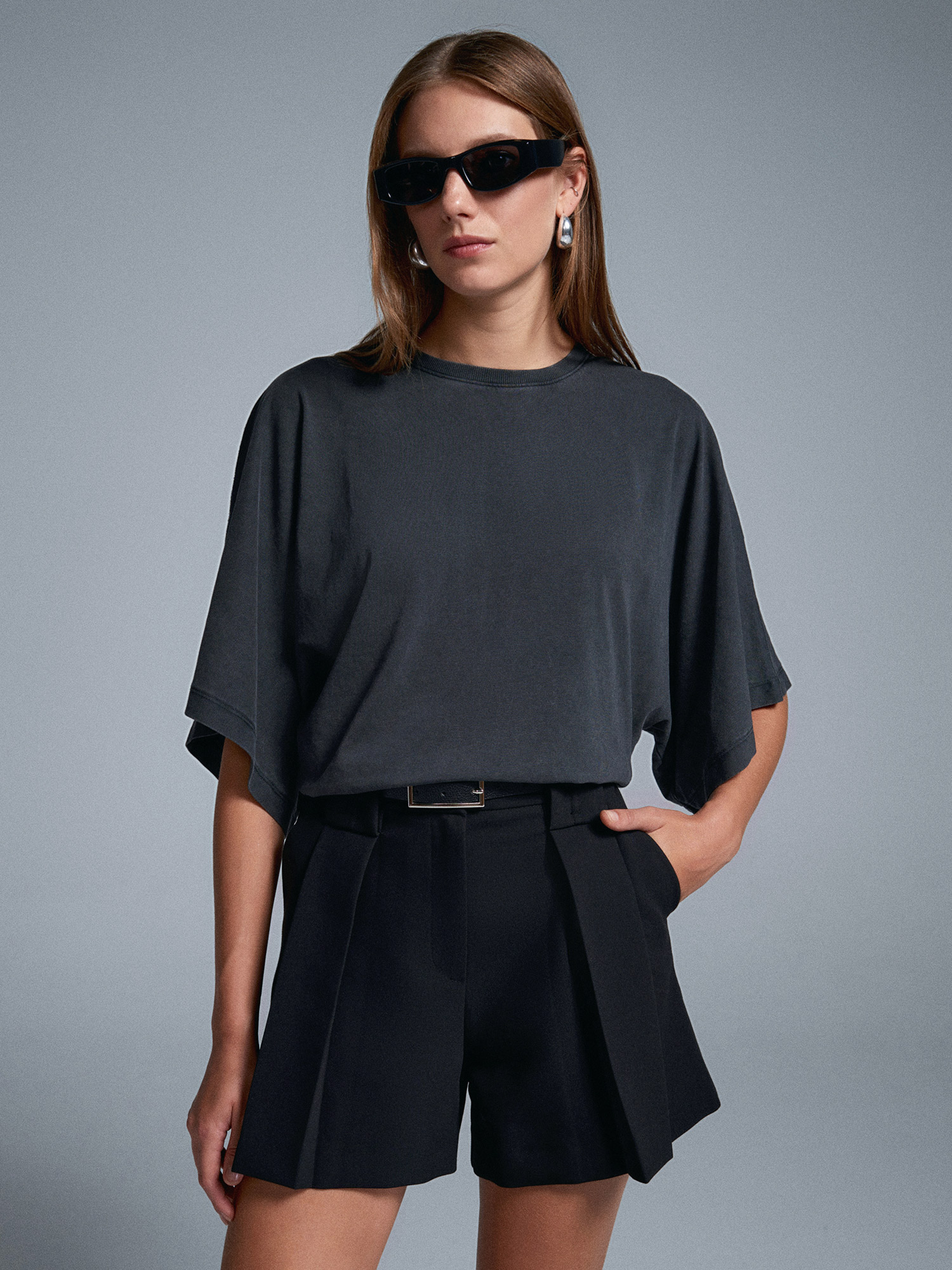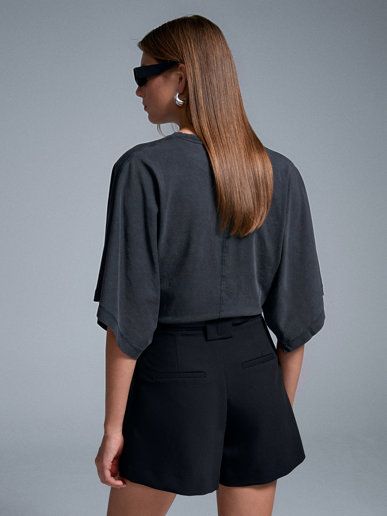 32207 Geniş Kollu T-shirt-K.Antrasit