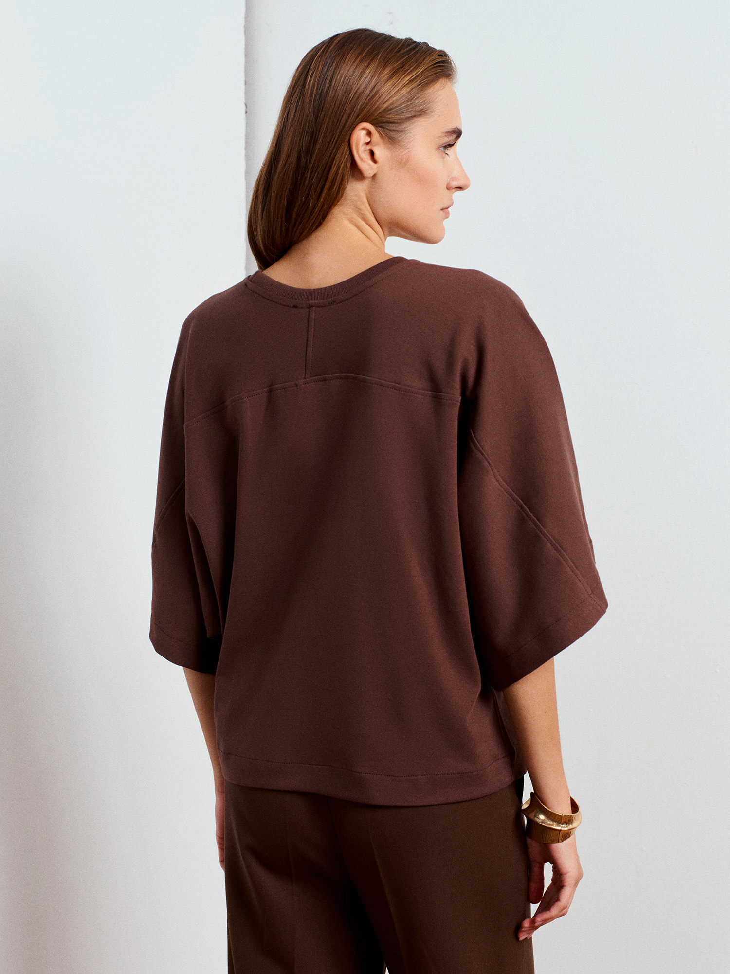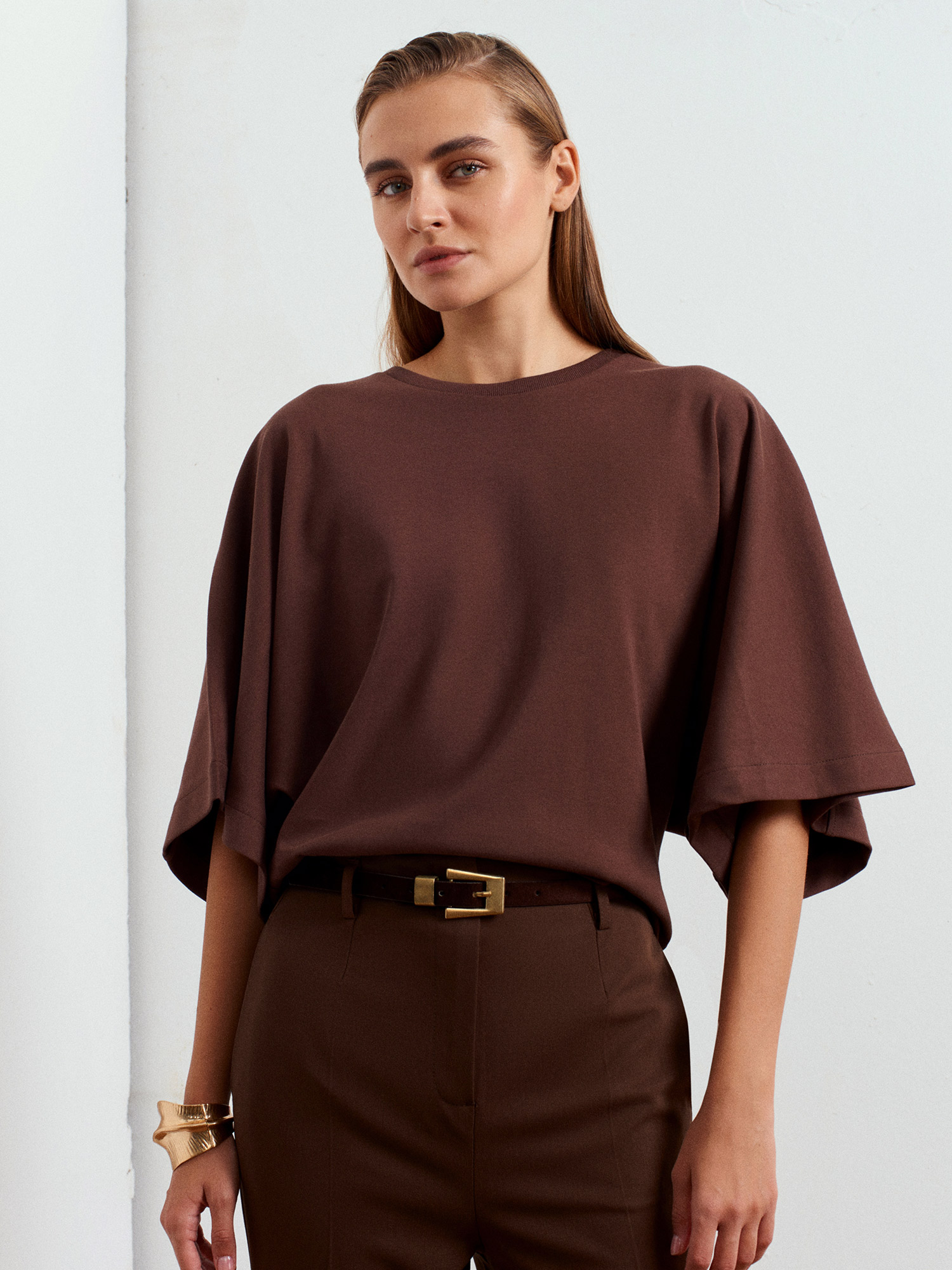 32210 %100 Pamuk Yarasa Kol T-Shirt-Açık Kahve