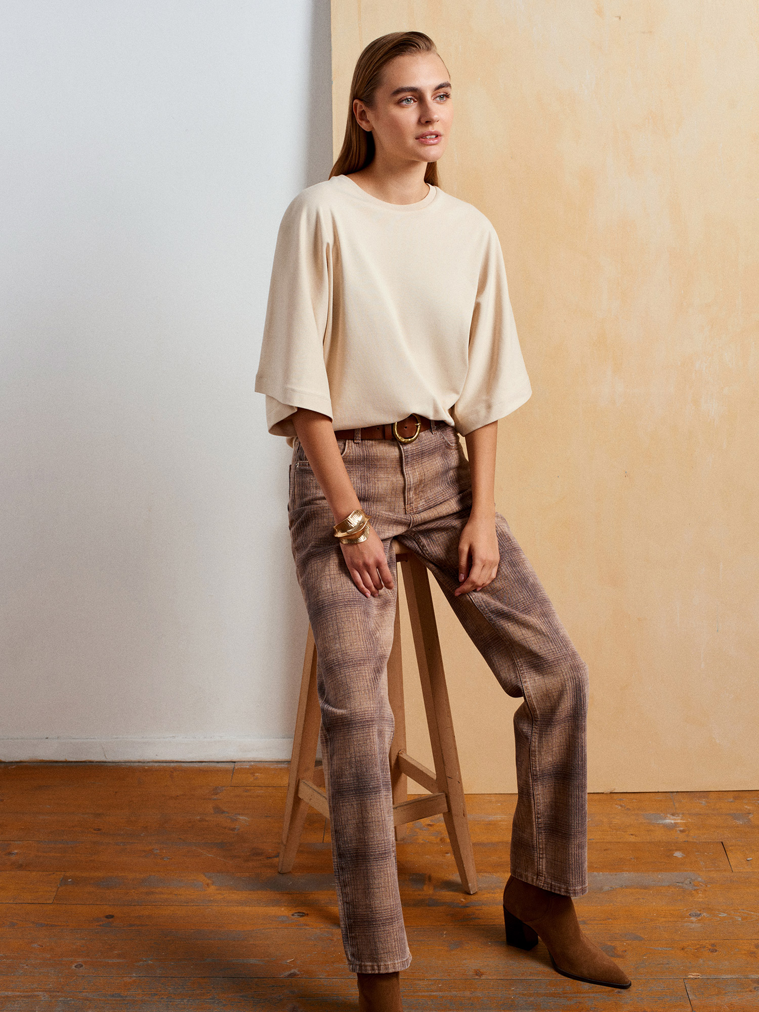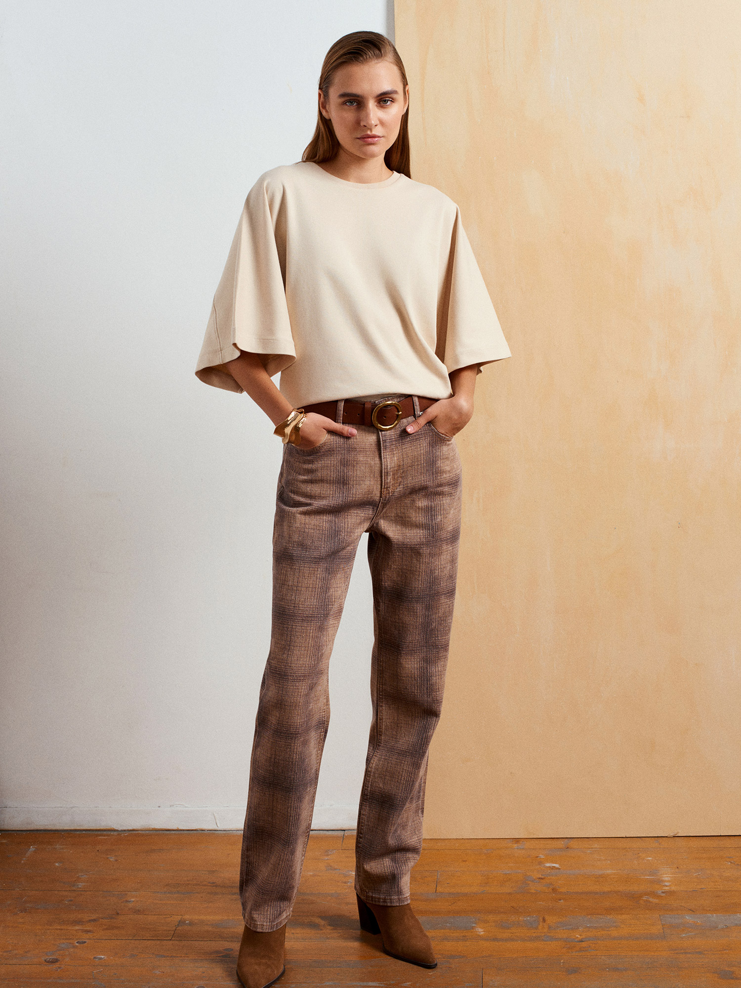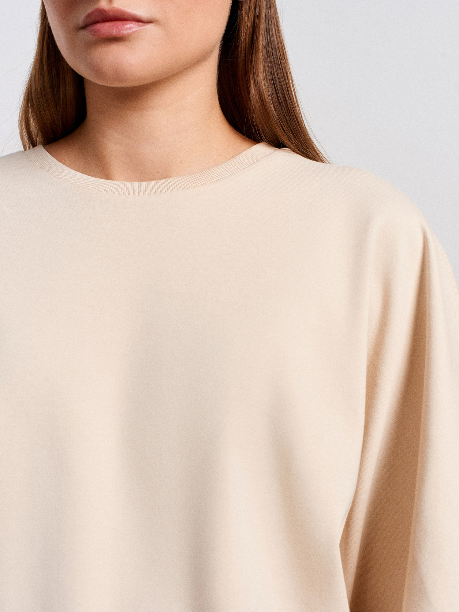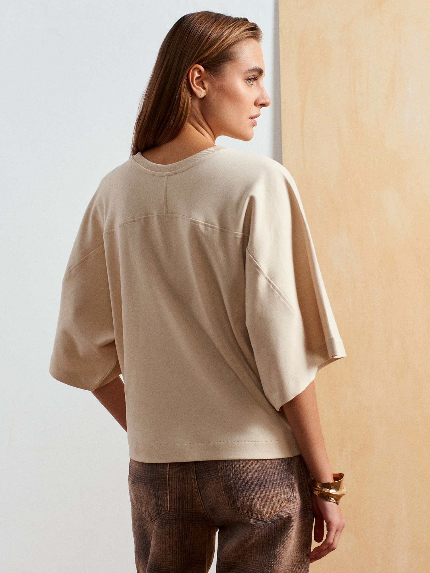 32210 %100 Pamuk Yarasa Kol T-Shirt-Taş