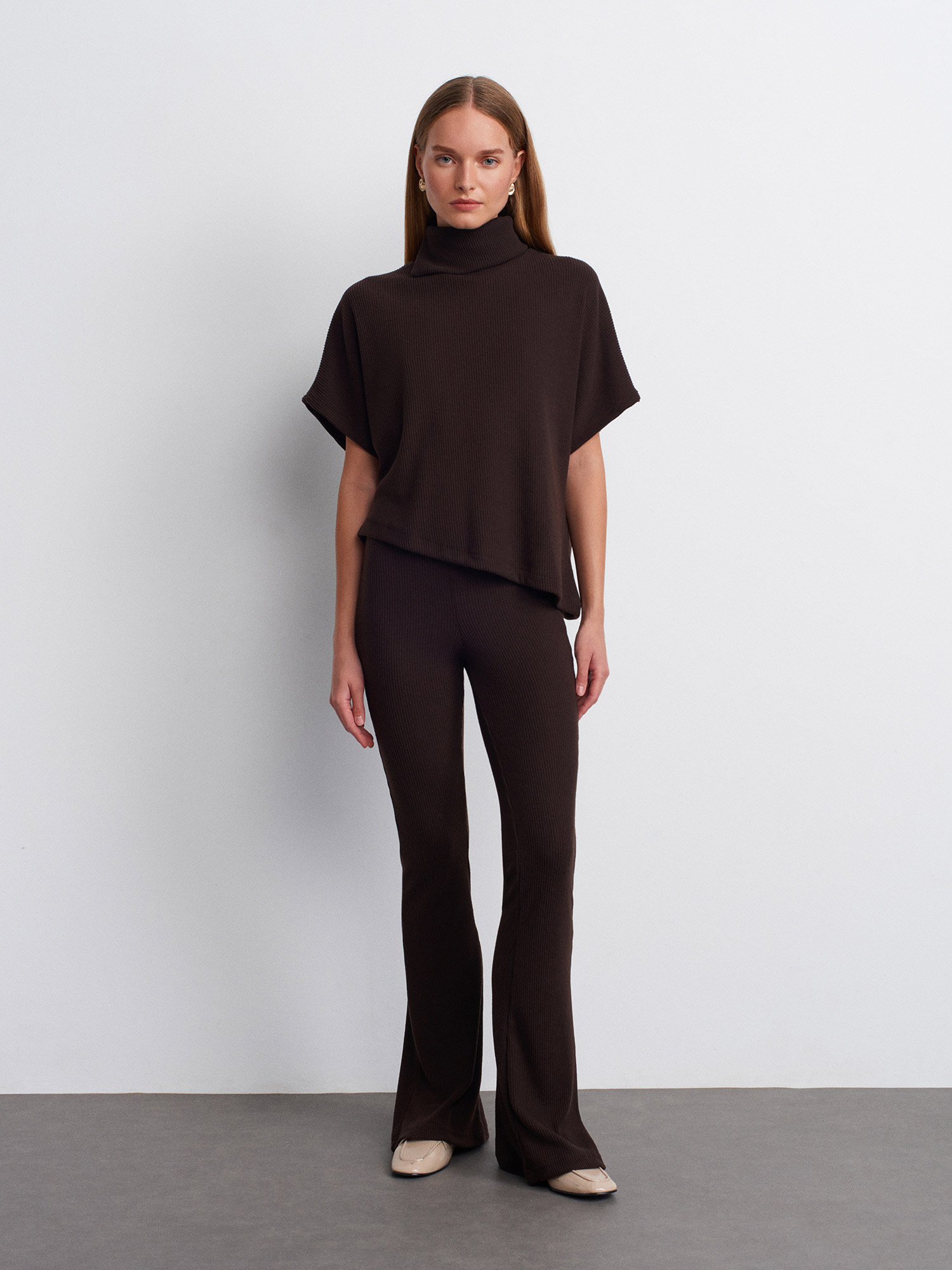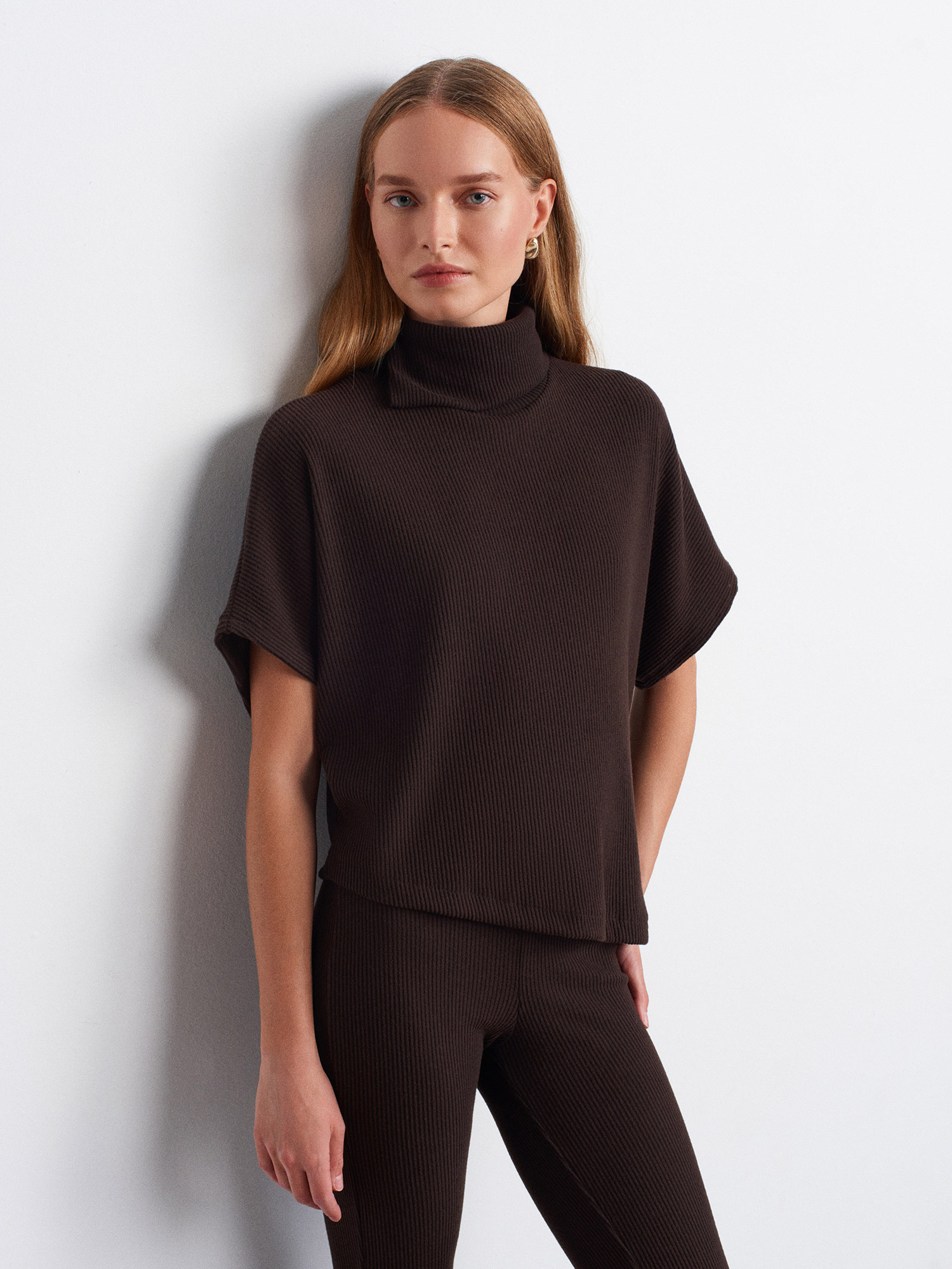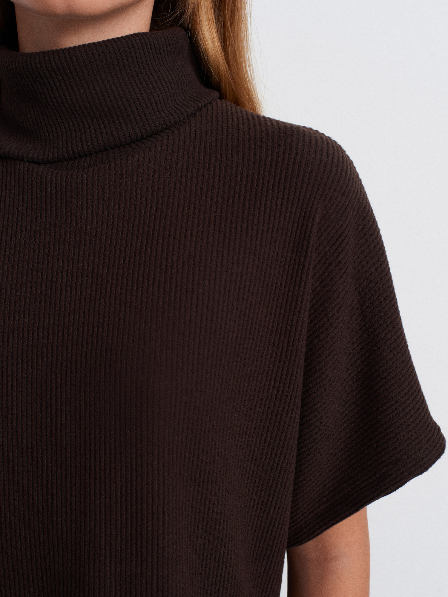 32239 Asimetrik Kesim Boğazlı Top-Kahve