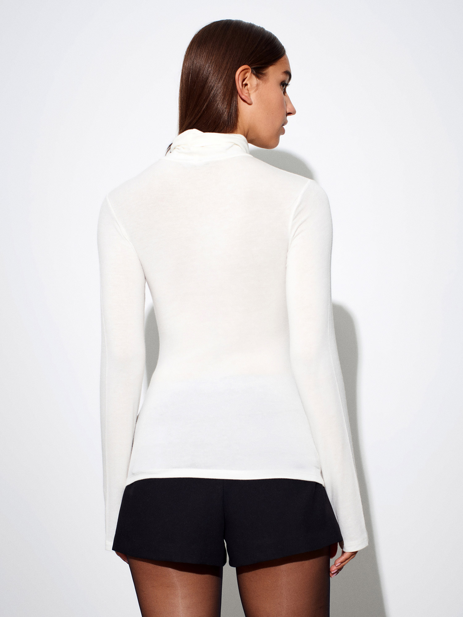 32253 Yün Karışımlı Balıkçı Yaka Top-Ekru