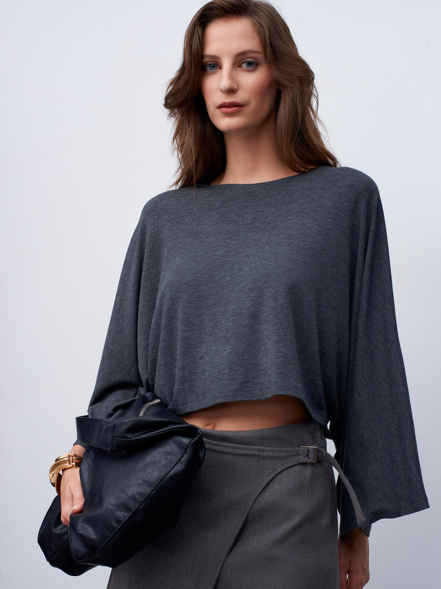 32270 Kayık Yaka Yarasa Kollu Top-K.Antrasit