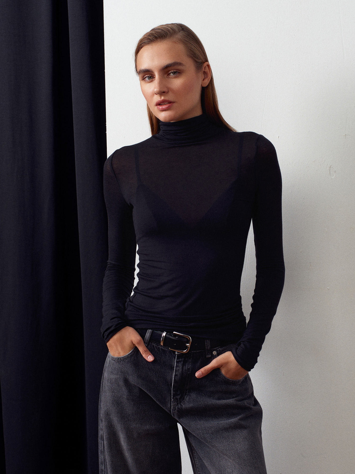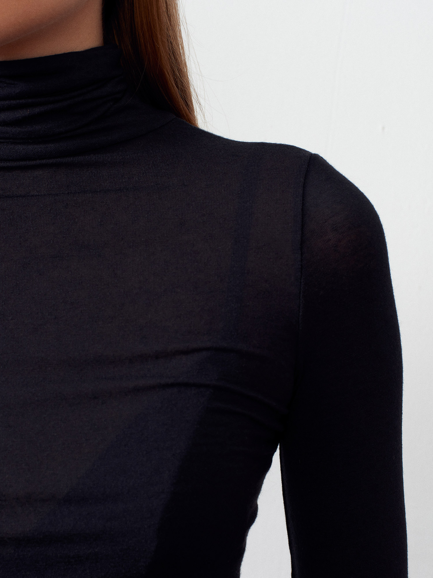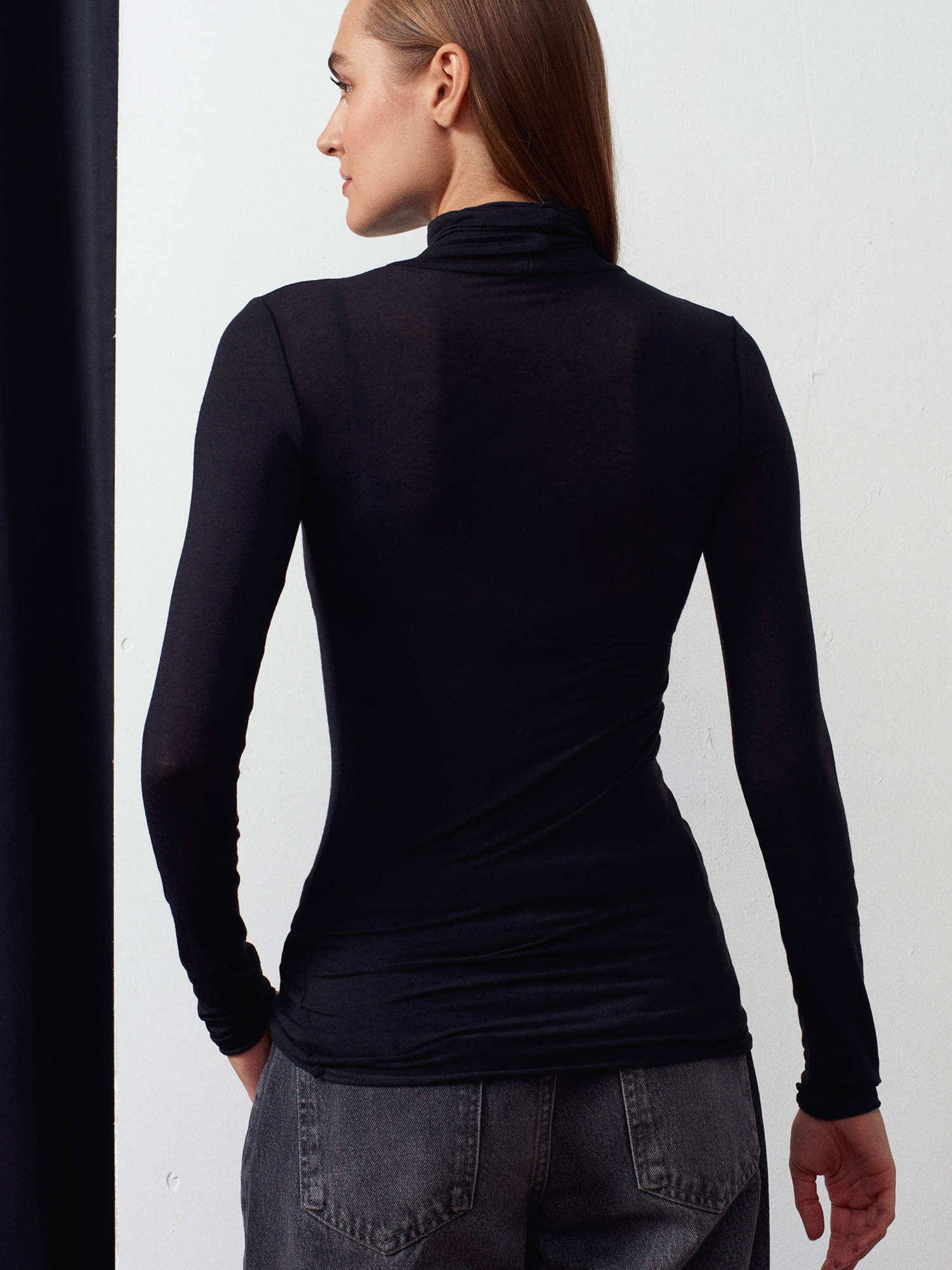 32277 Balıkçı Yaka Kaşmir Bluz-Siyah