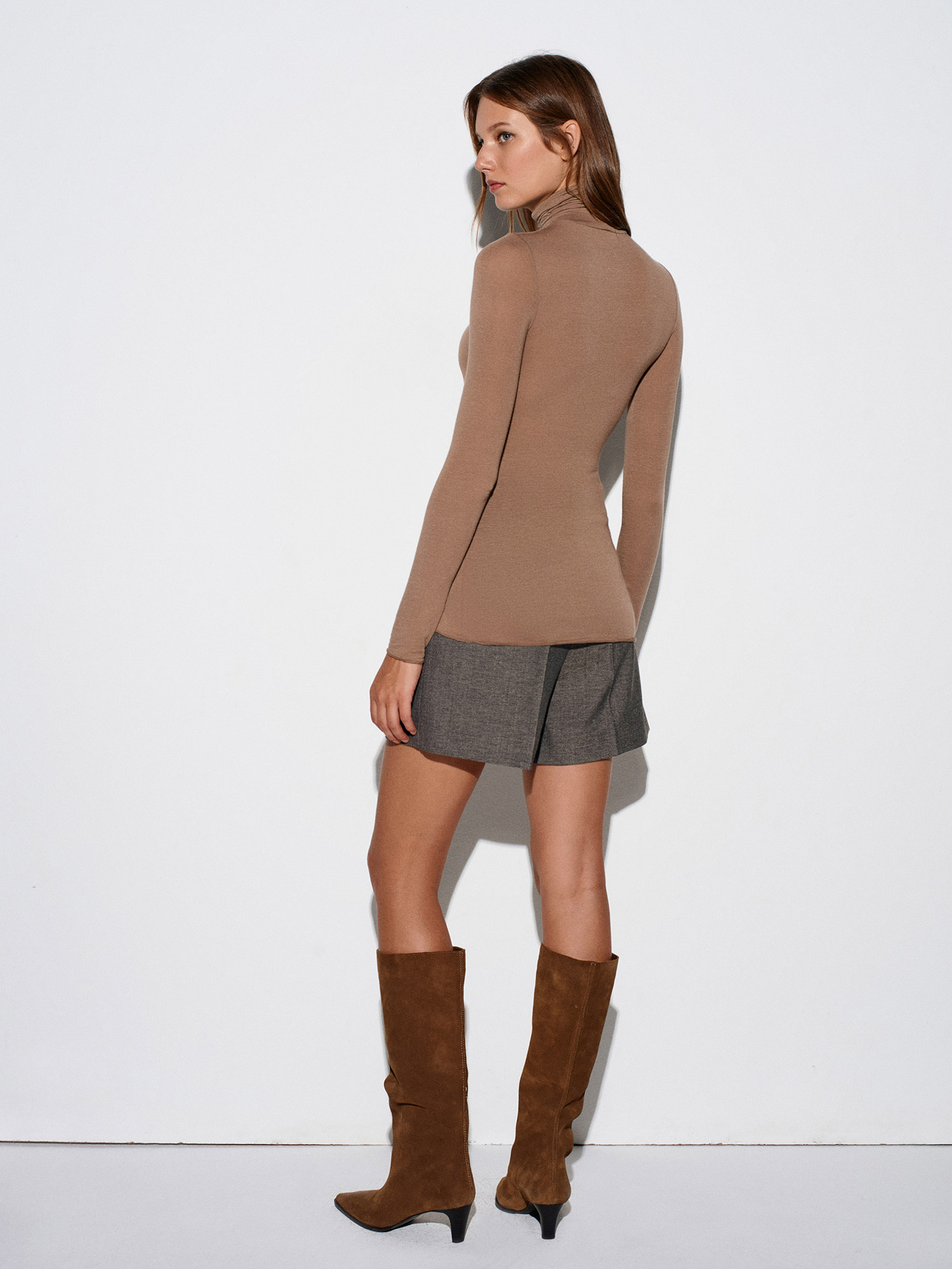 32277 Balıkçı Yaka Kaşmir Bluz-Vizon