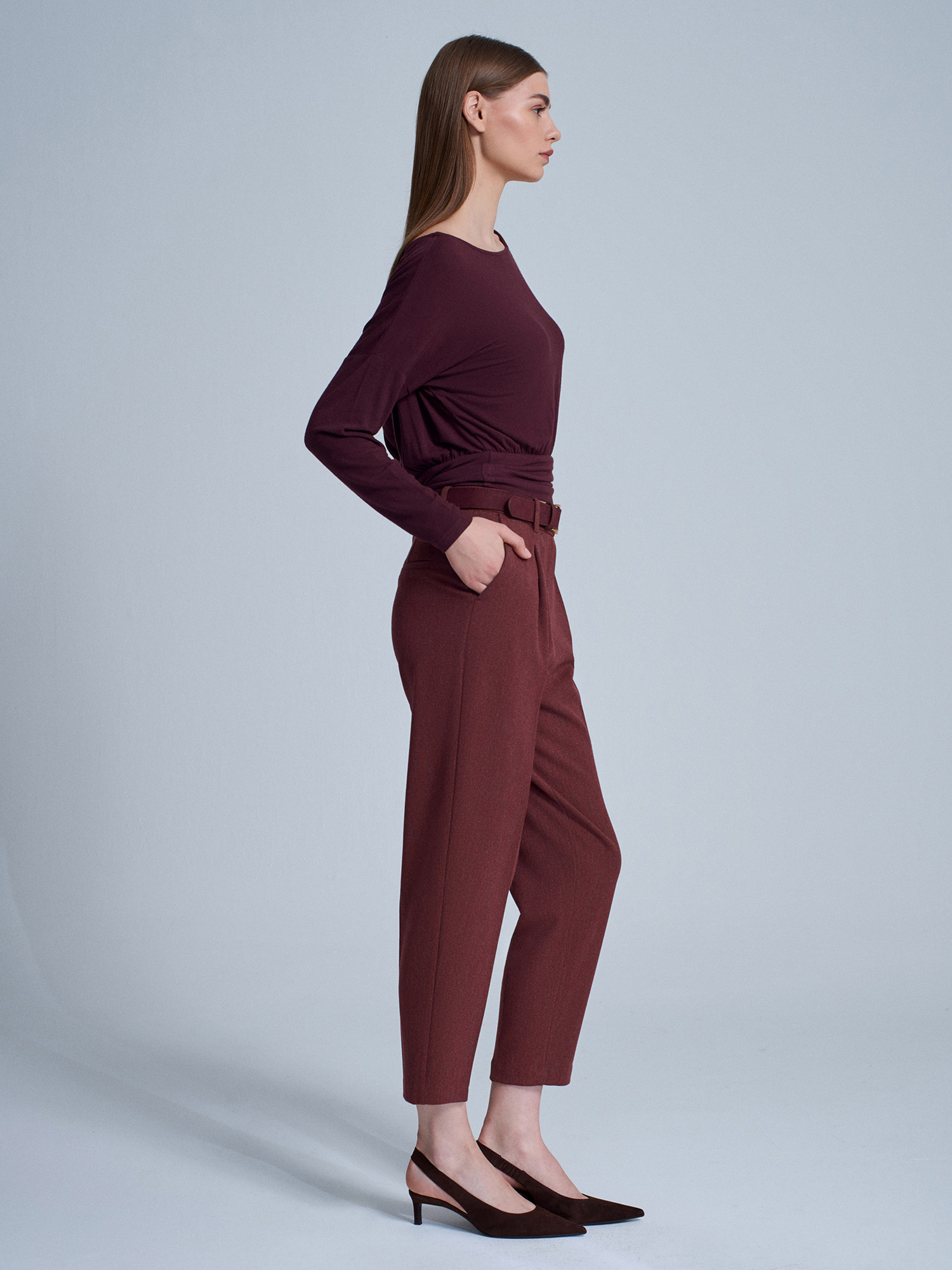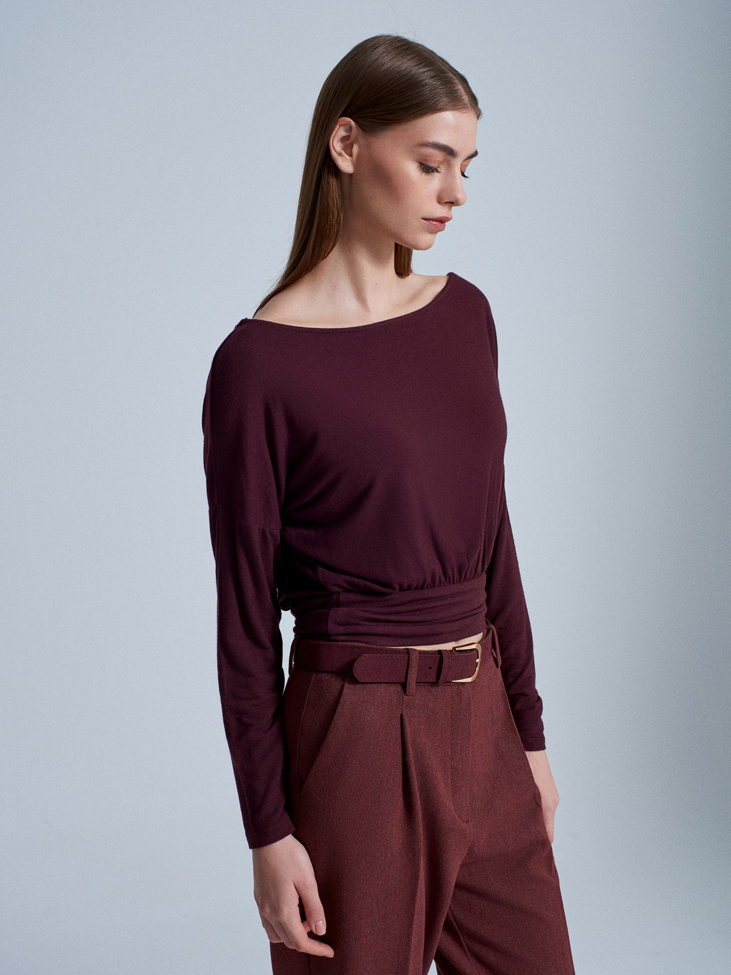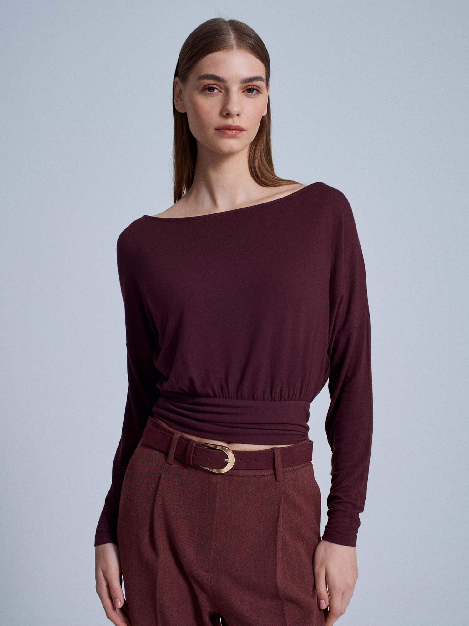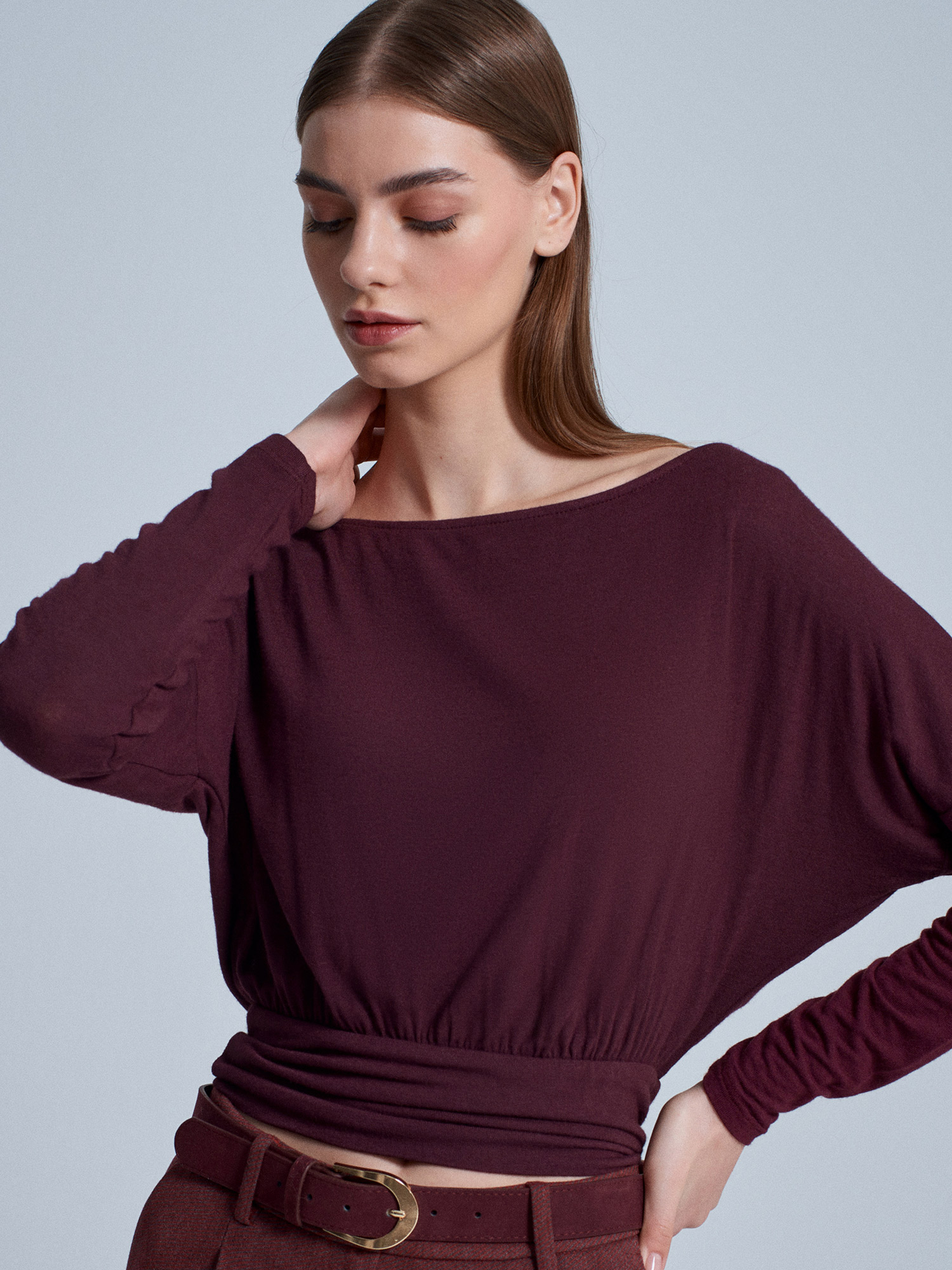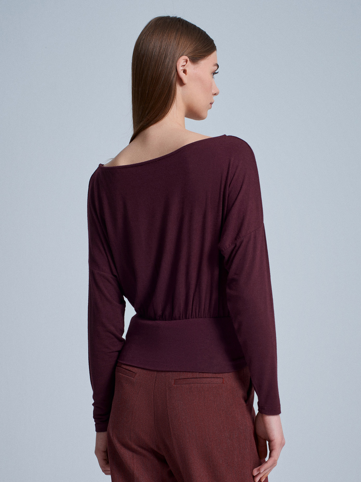 32306 Yün Karışımlı Tek Omuz Top-Bordo
