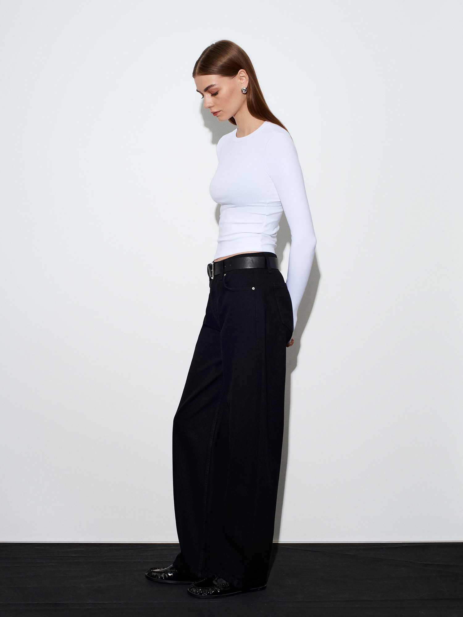 32319 Modal Karışımlı Uzun Kollu Top-Beyaz