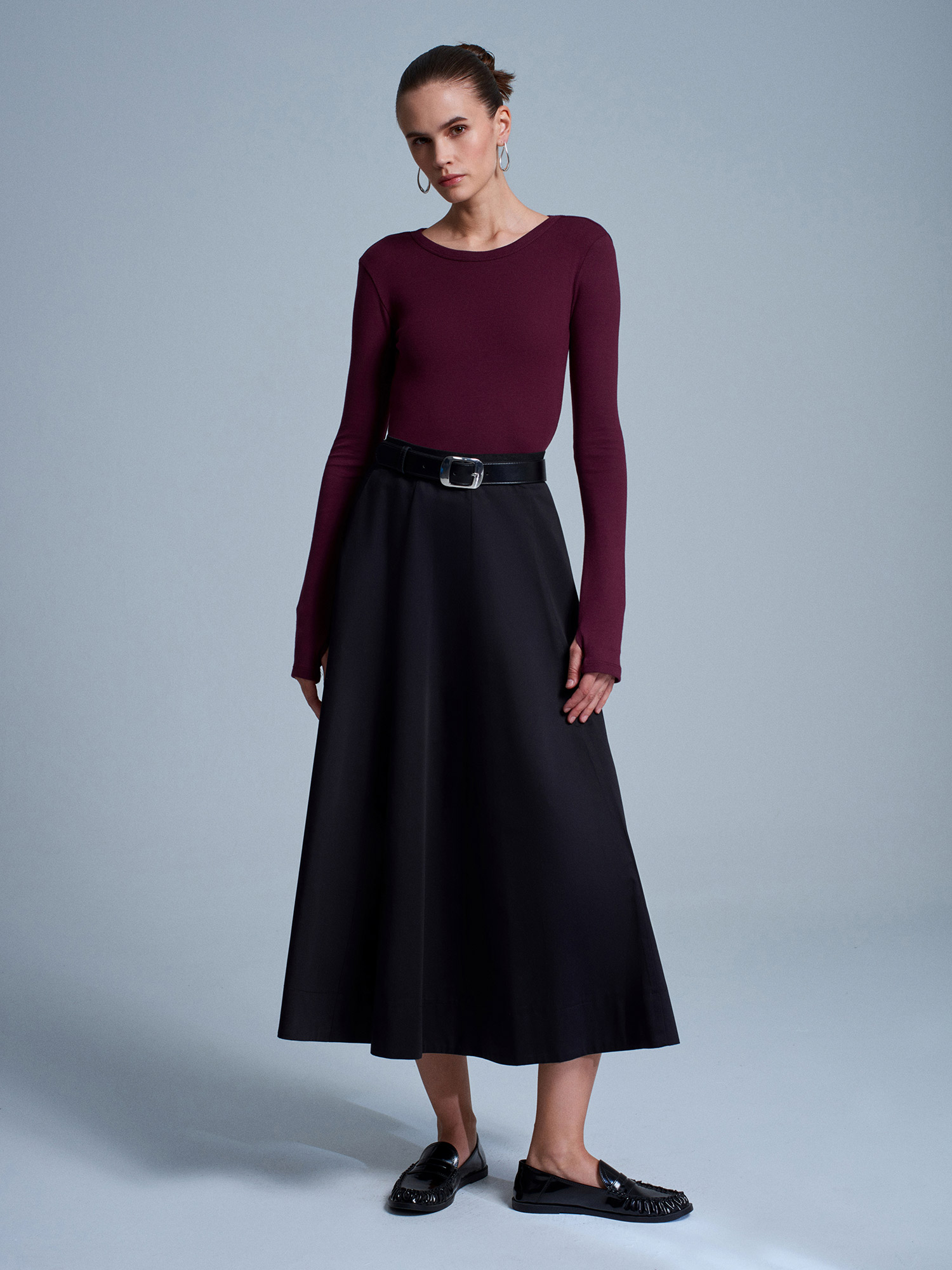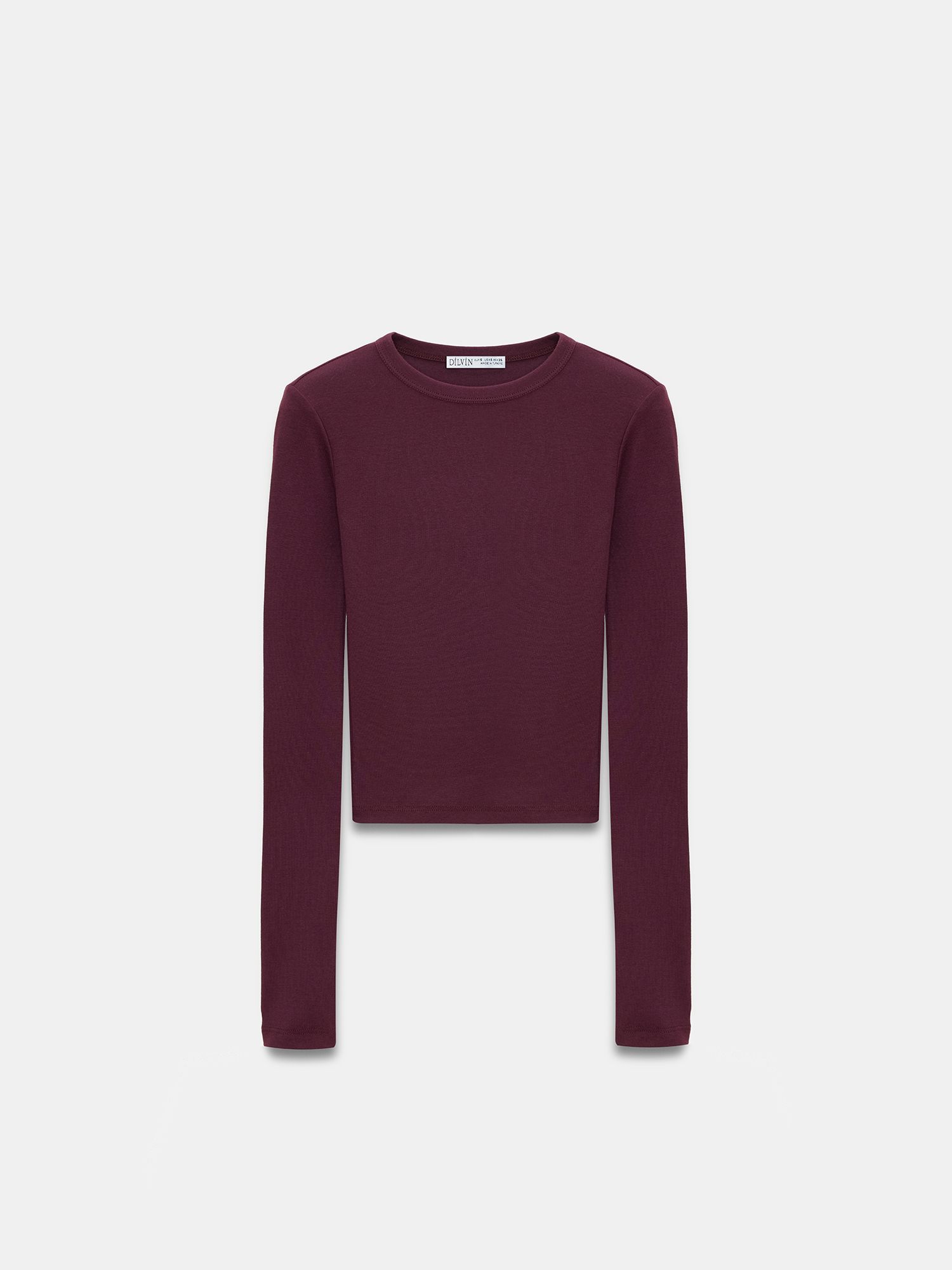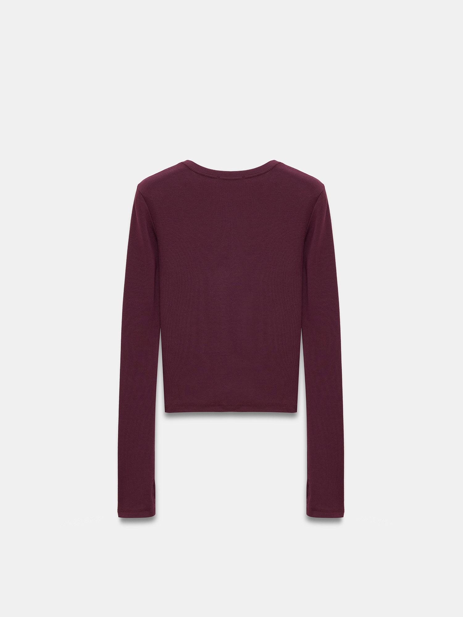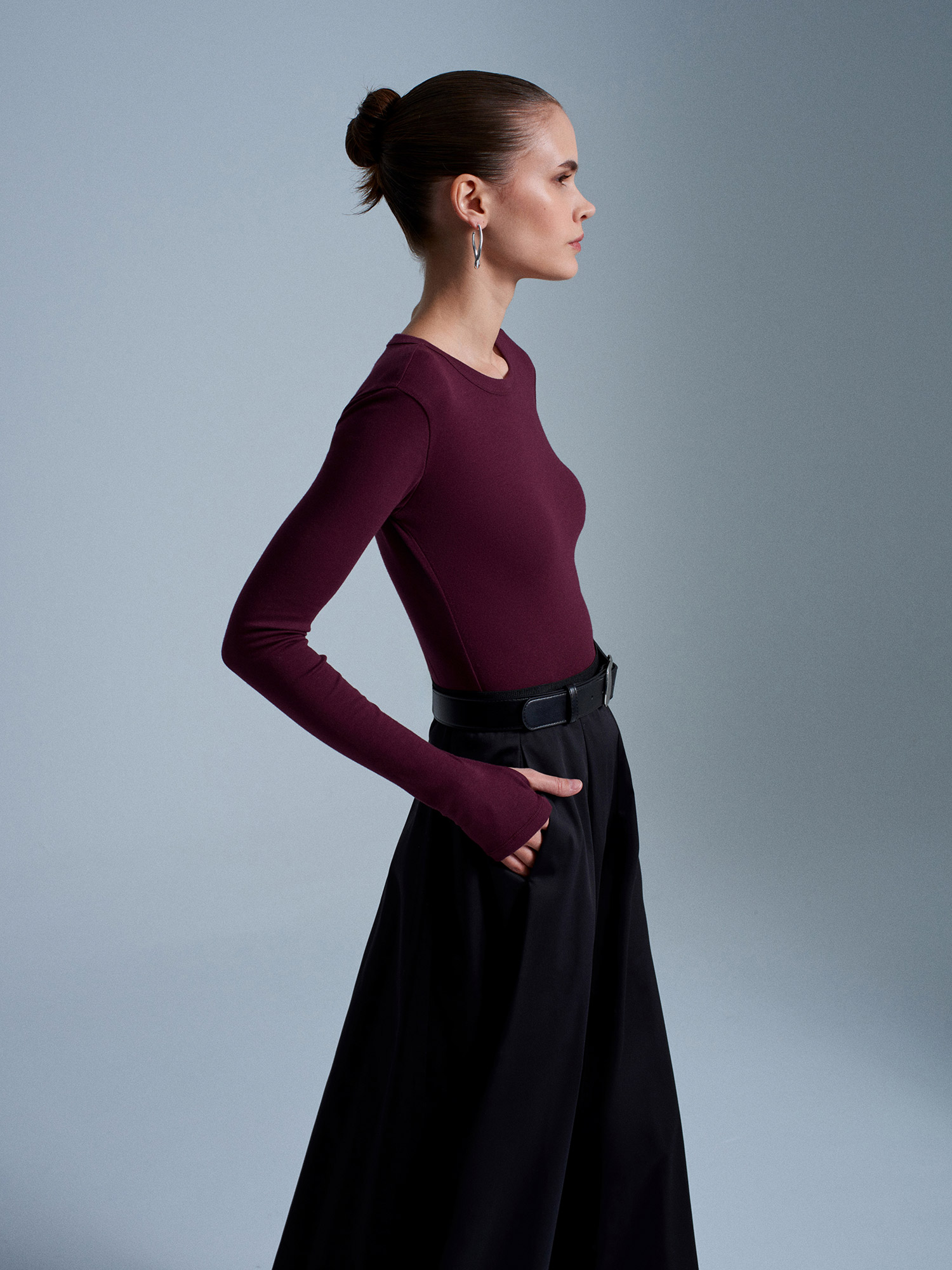32319 Modal Karışımlı Uzun Kollu Top-Bordo