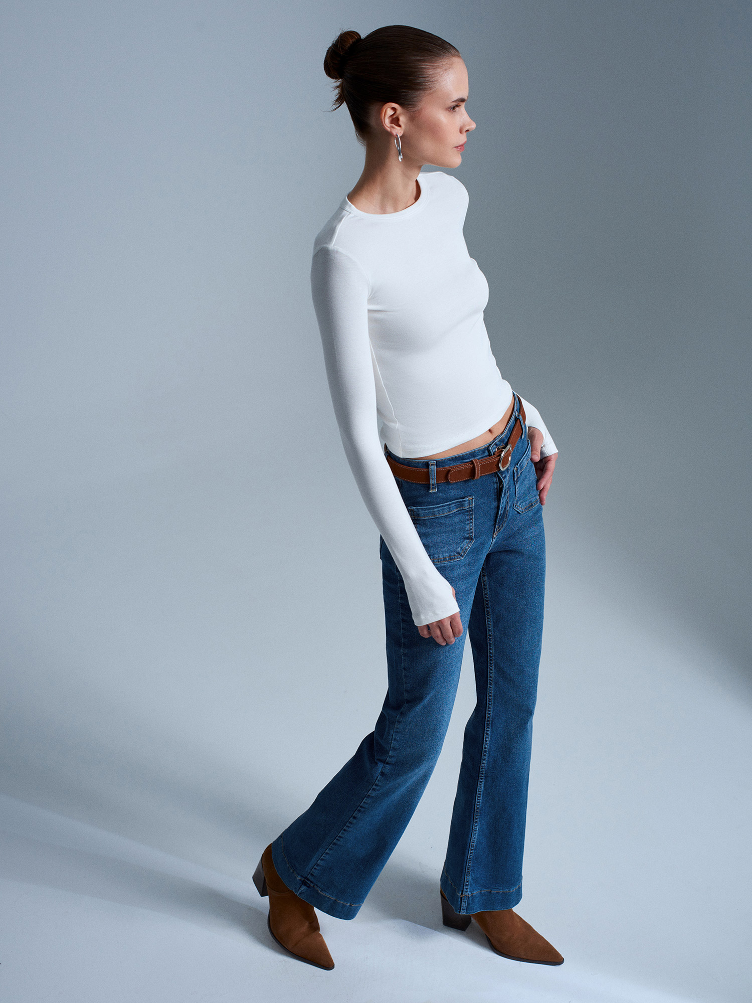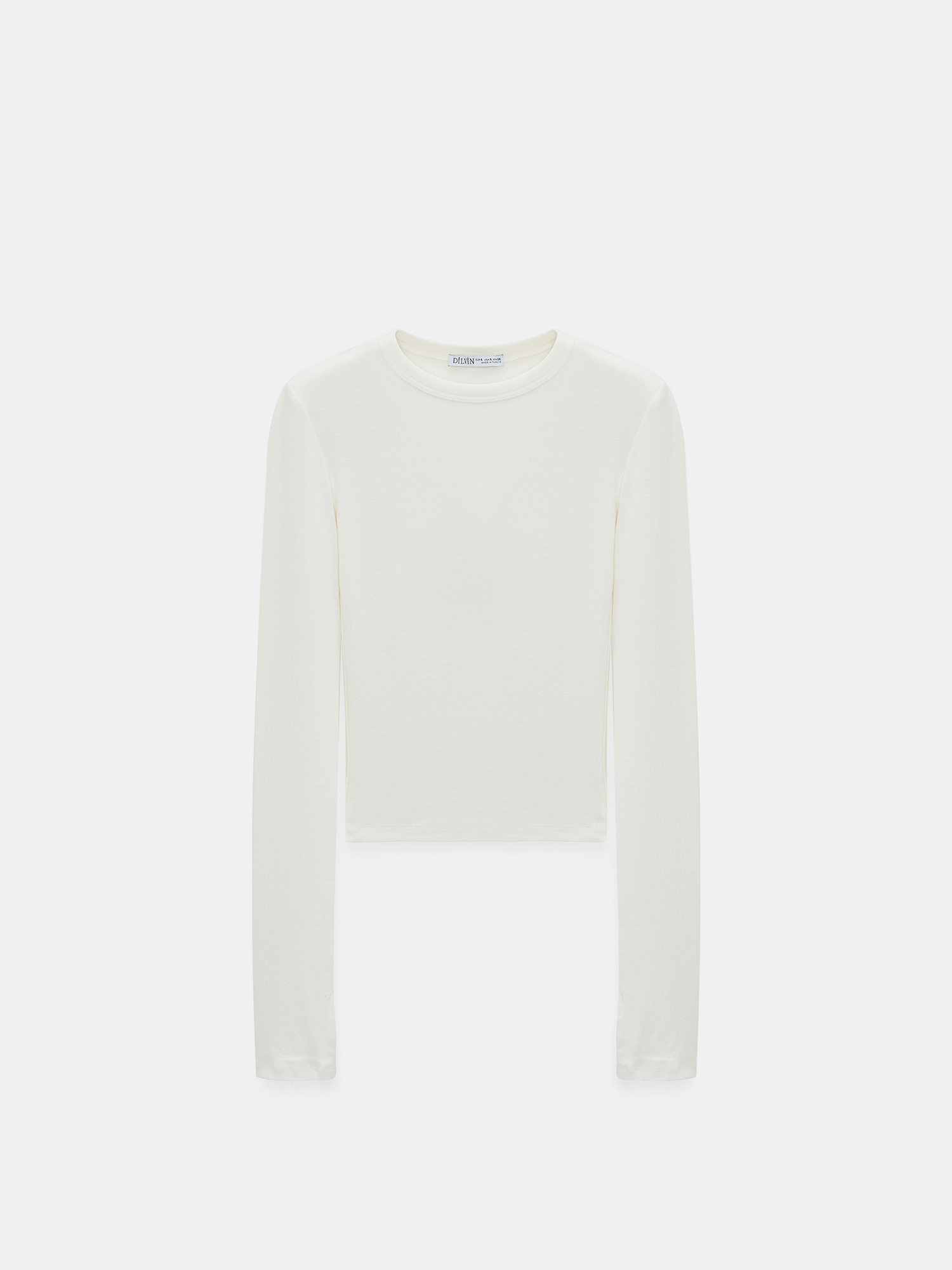 32319 Modal Karışımlı Uzun Kollu Top-Ekru