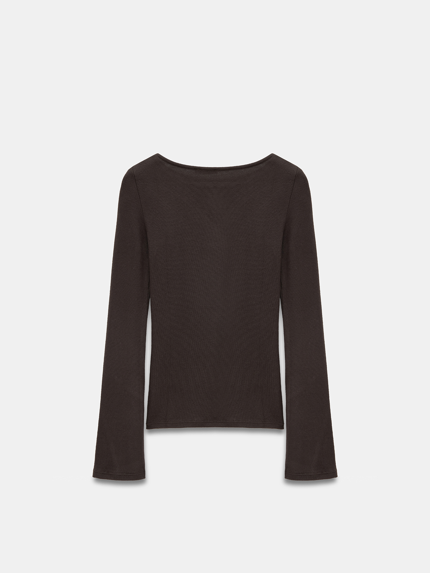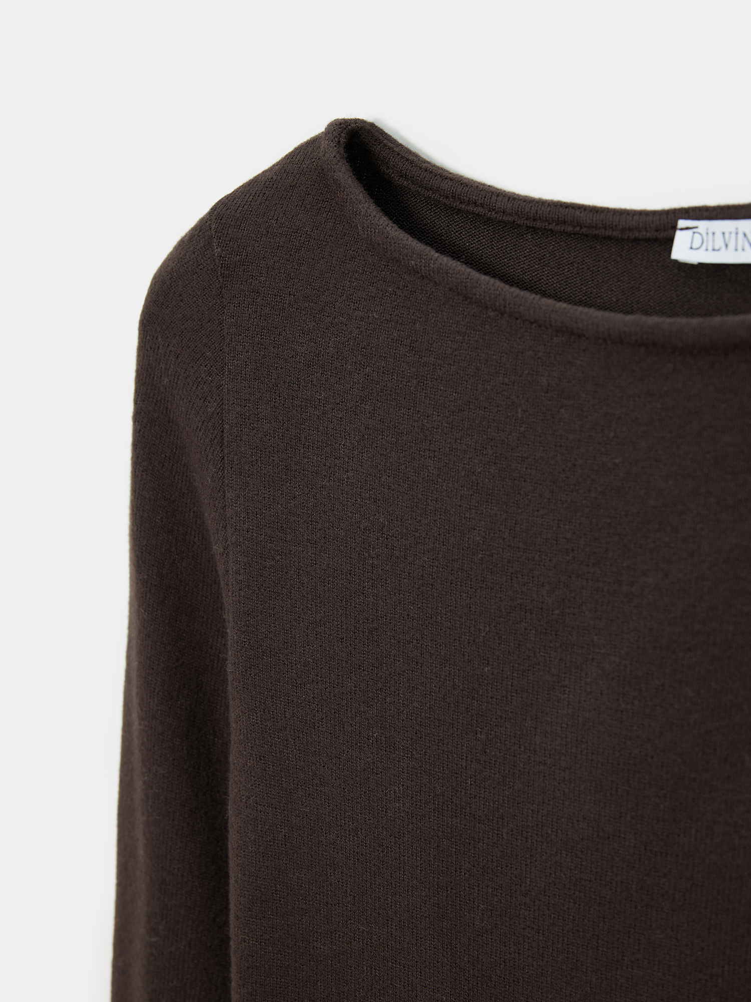 32322 Kayık Yaka Uzun Kollu Top-Koyu Kahve