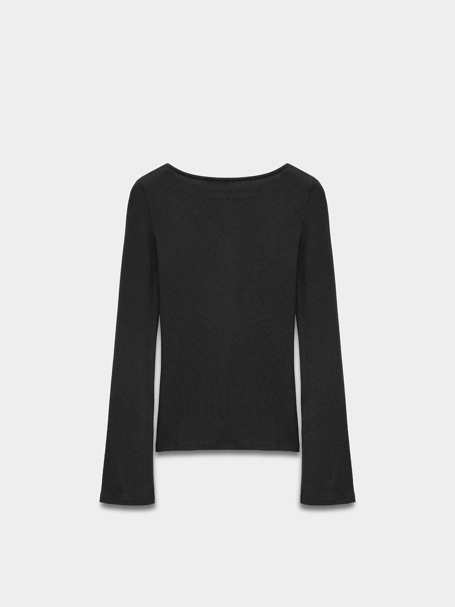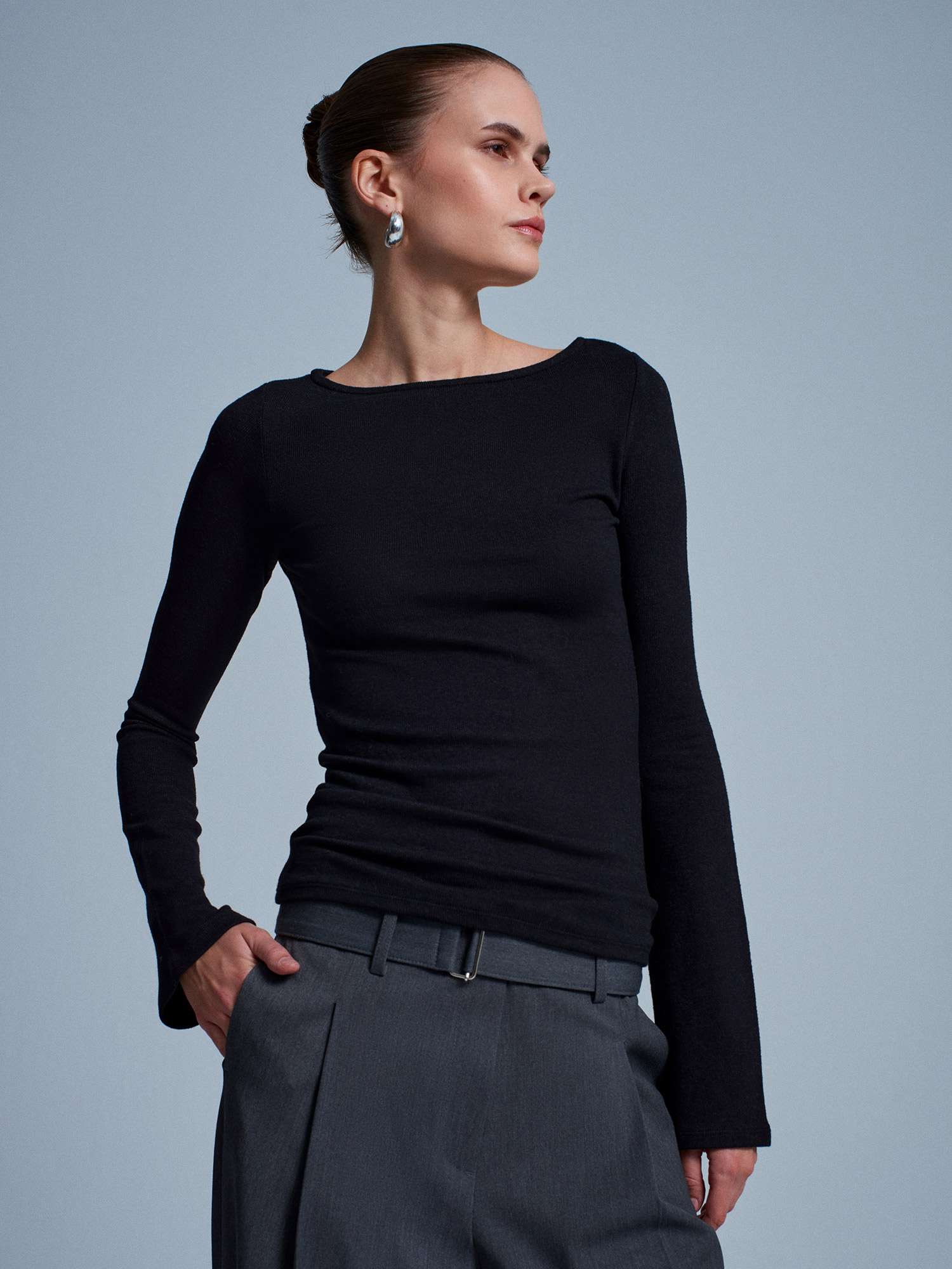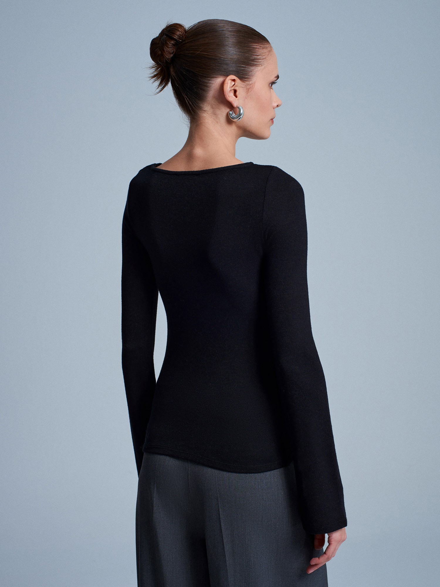 32322 Kayık Yaka Uzun Kollu Top-Siyah