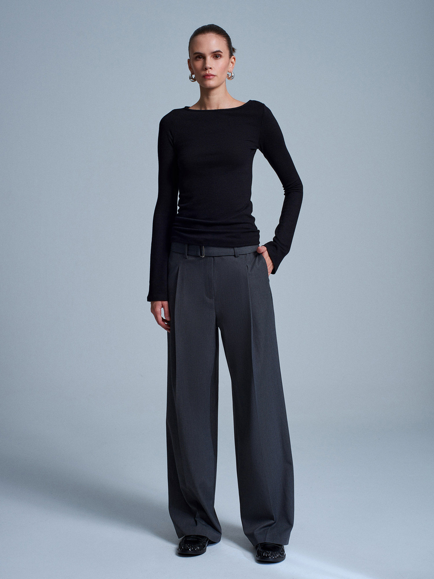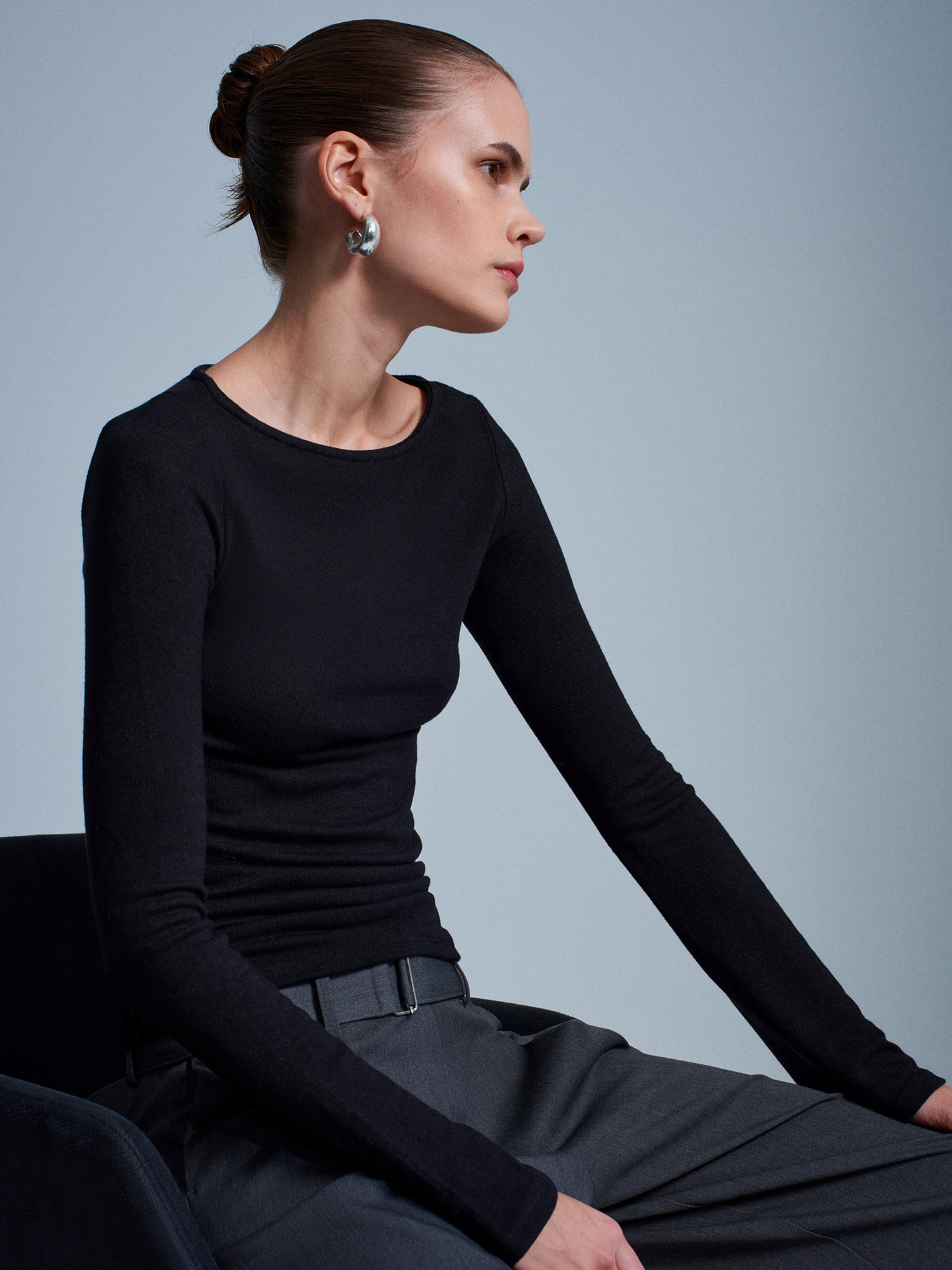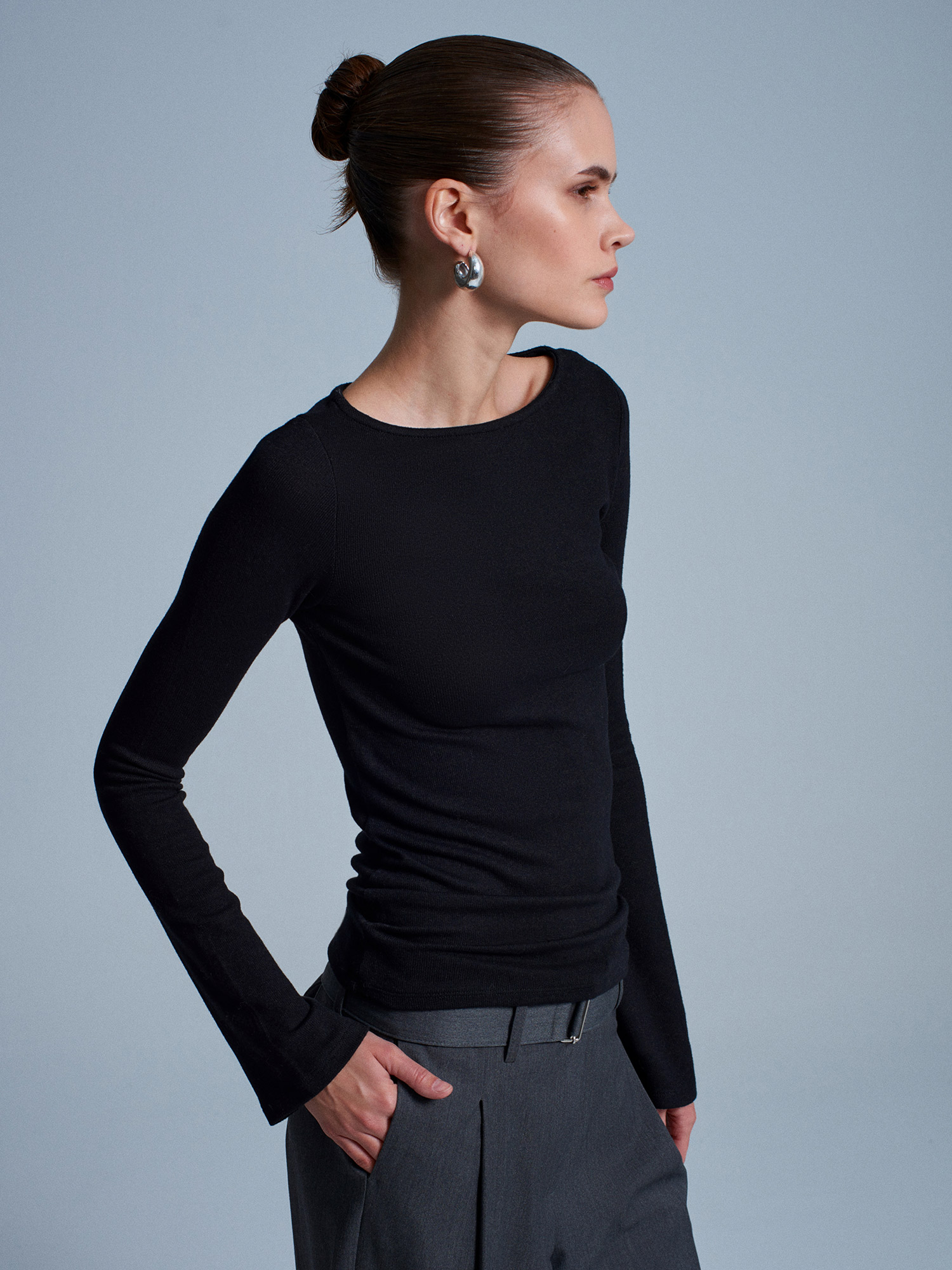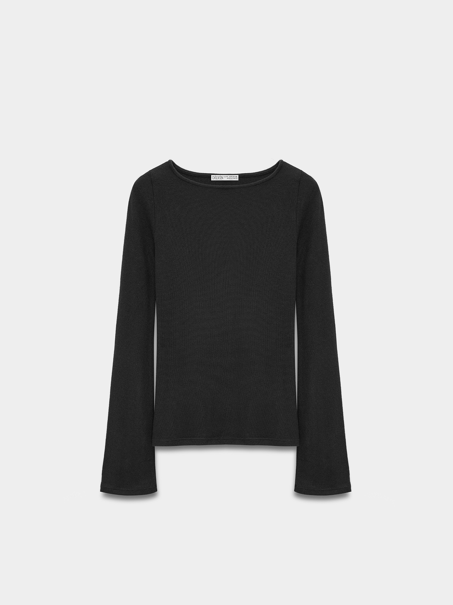 32322 Kayık Yaka Uzun Kollu Top-Siyah