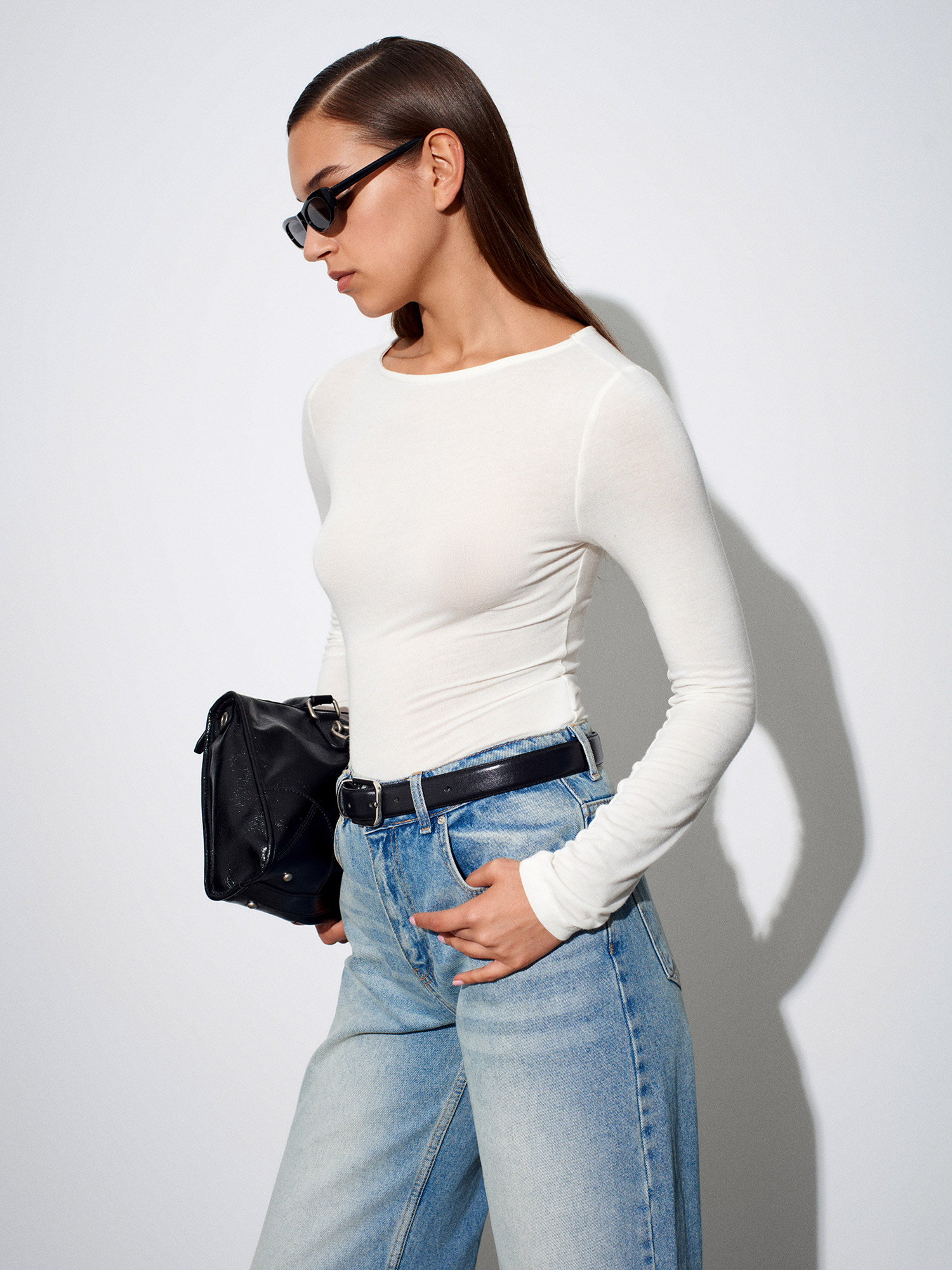 32325 Yün Karışımlı Kayık Yaka Top-Ekru