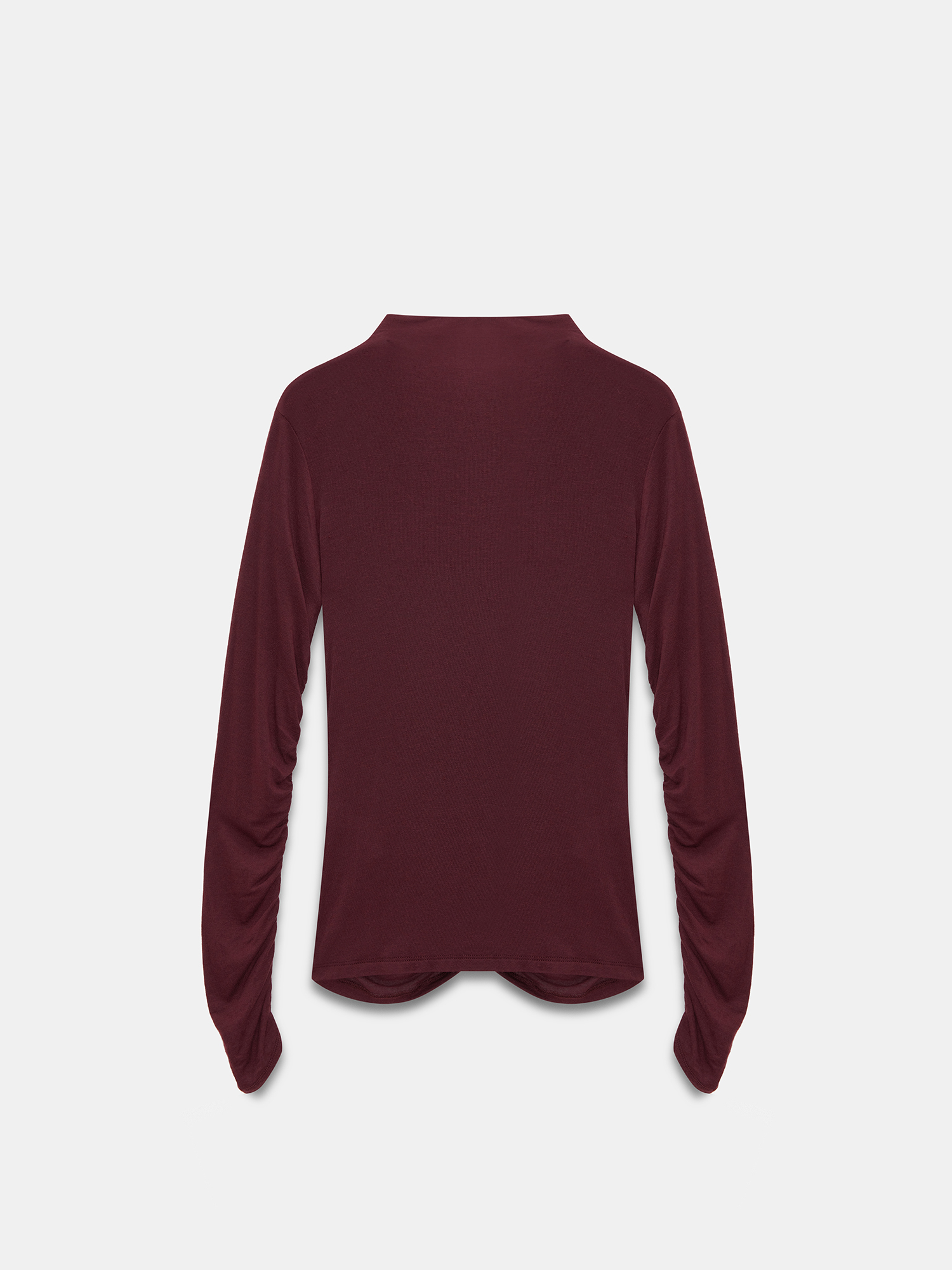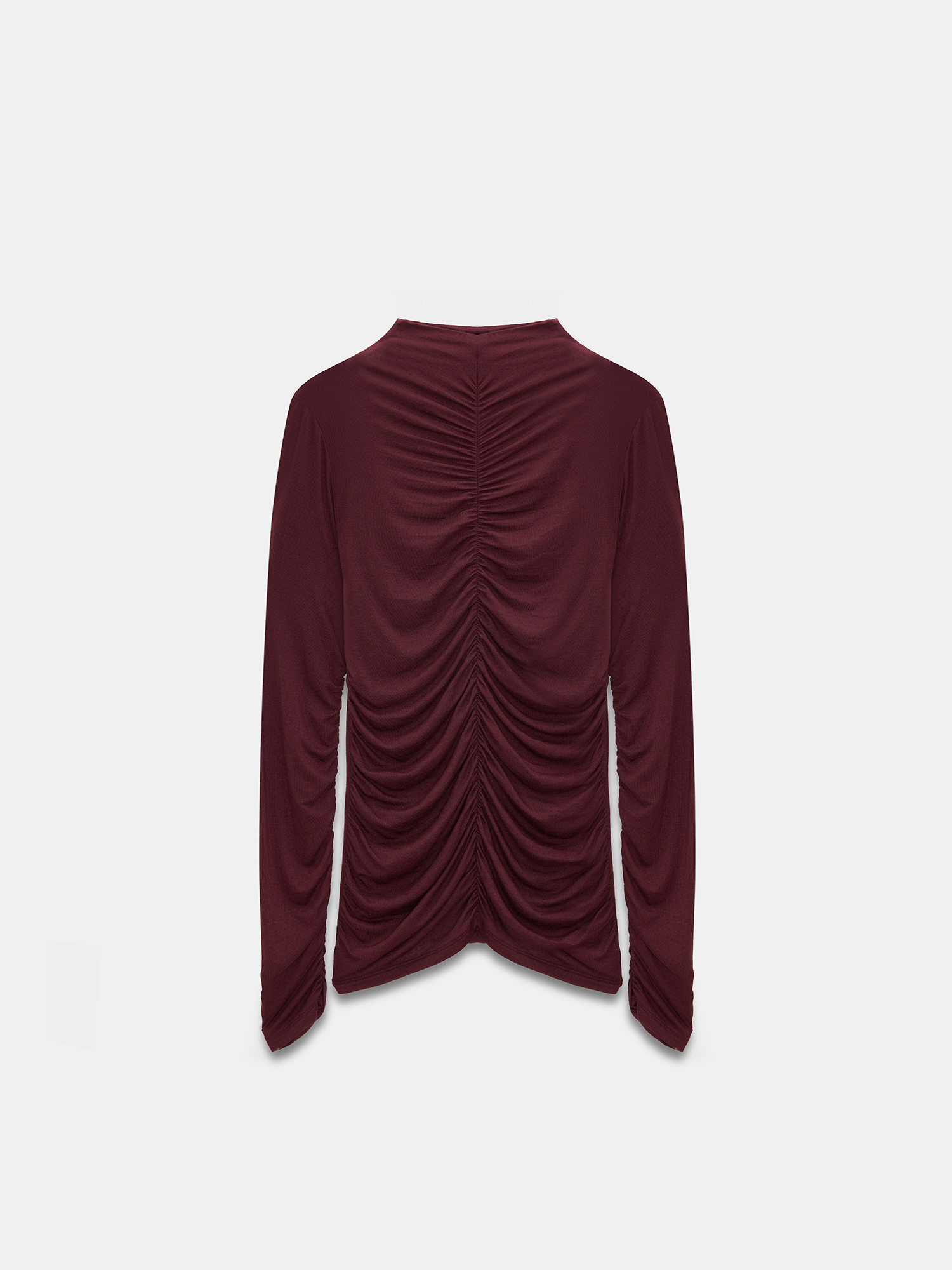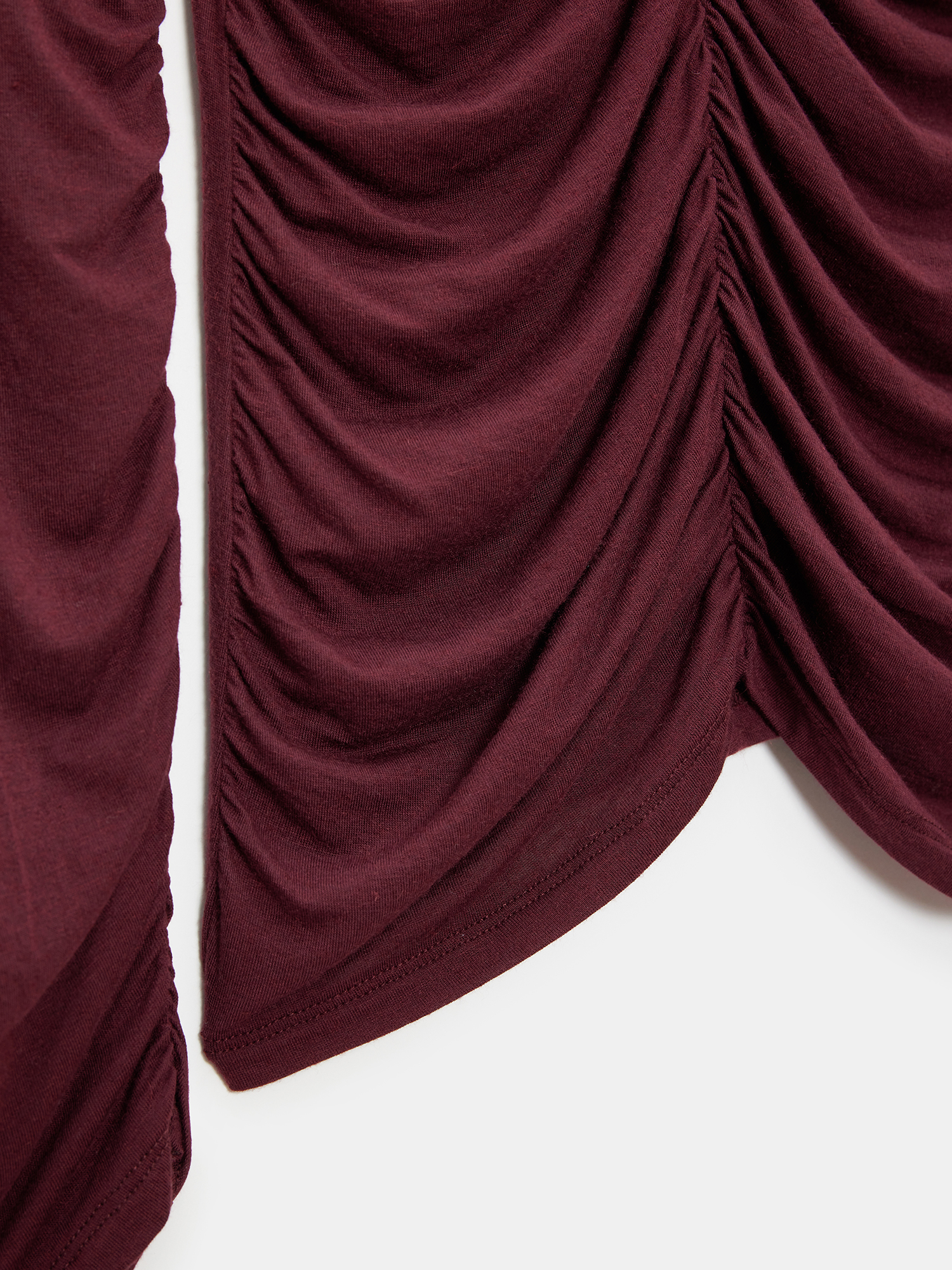 32333 Kaşmir Karışımlı Büzgülü Bluz-Bordo