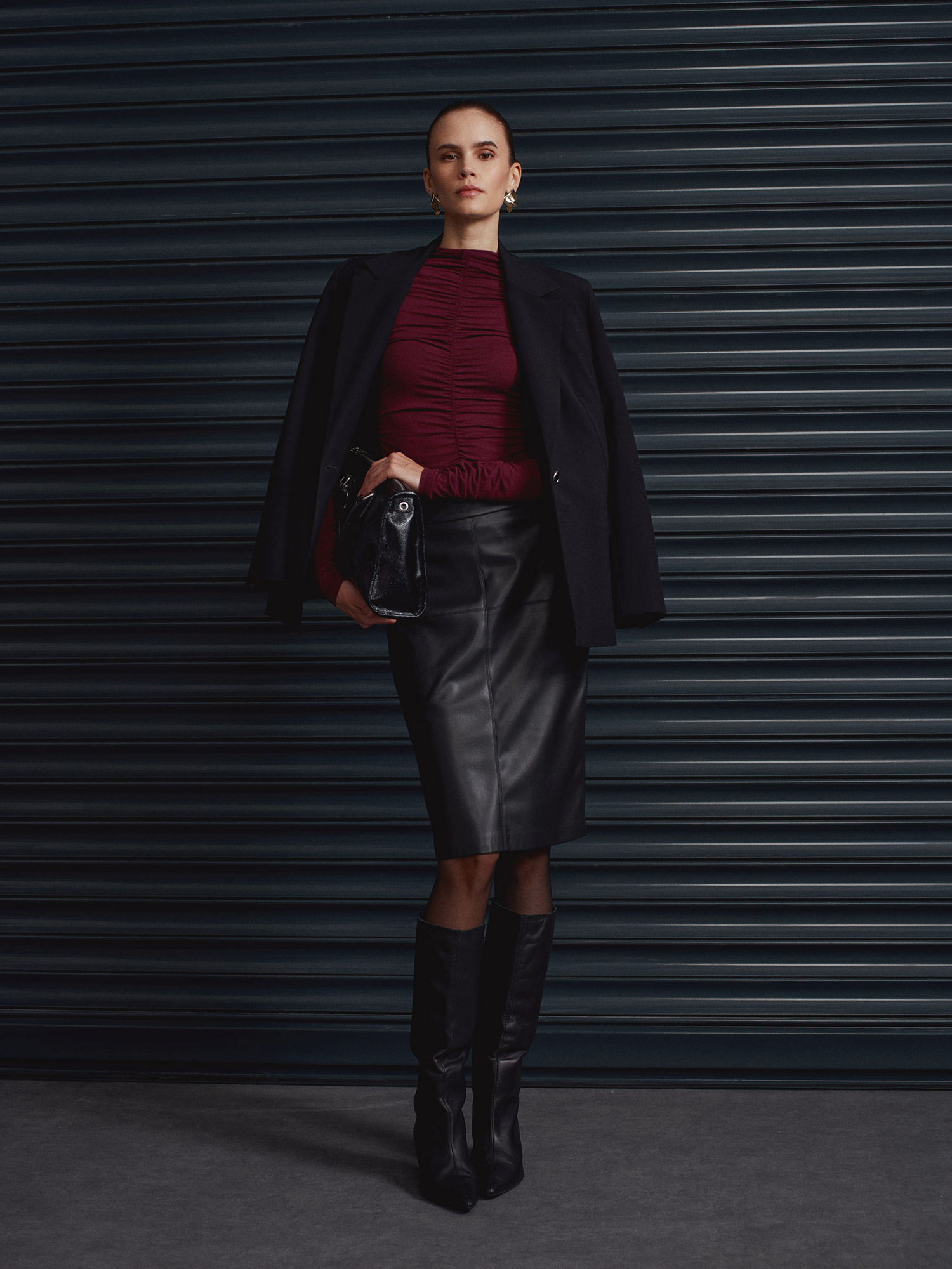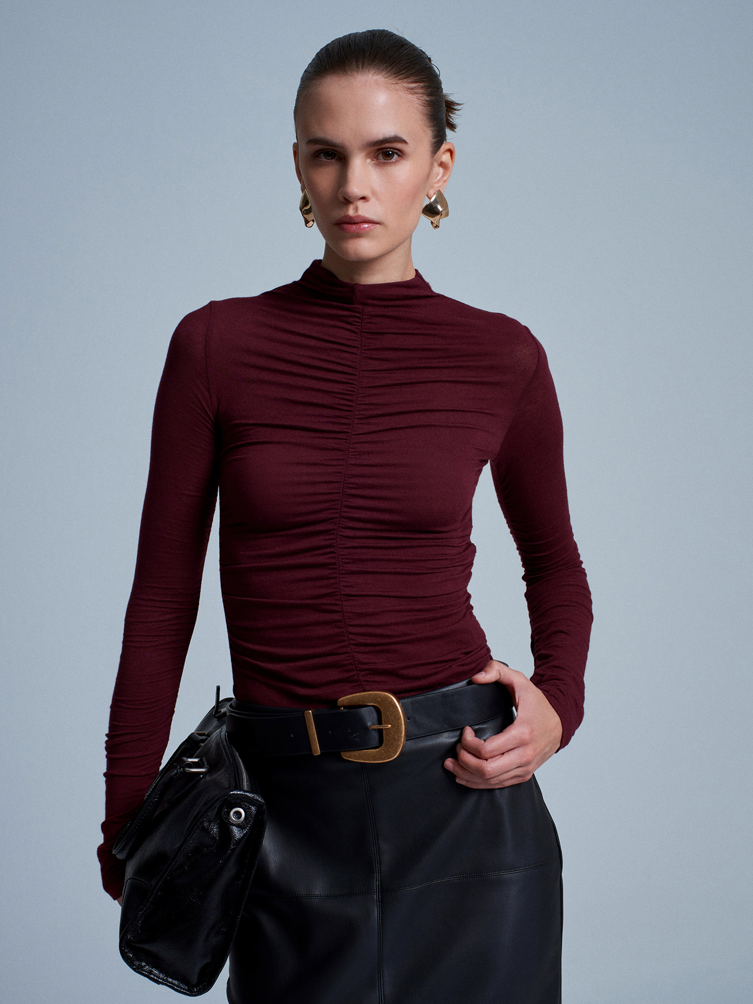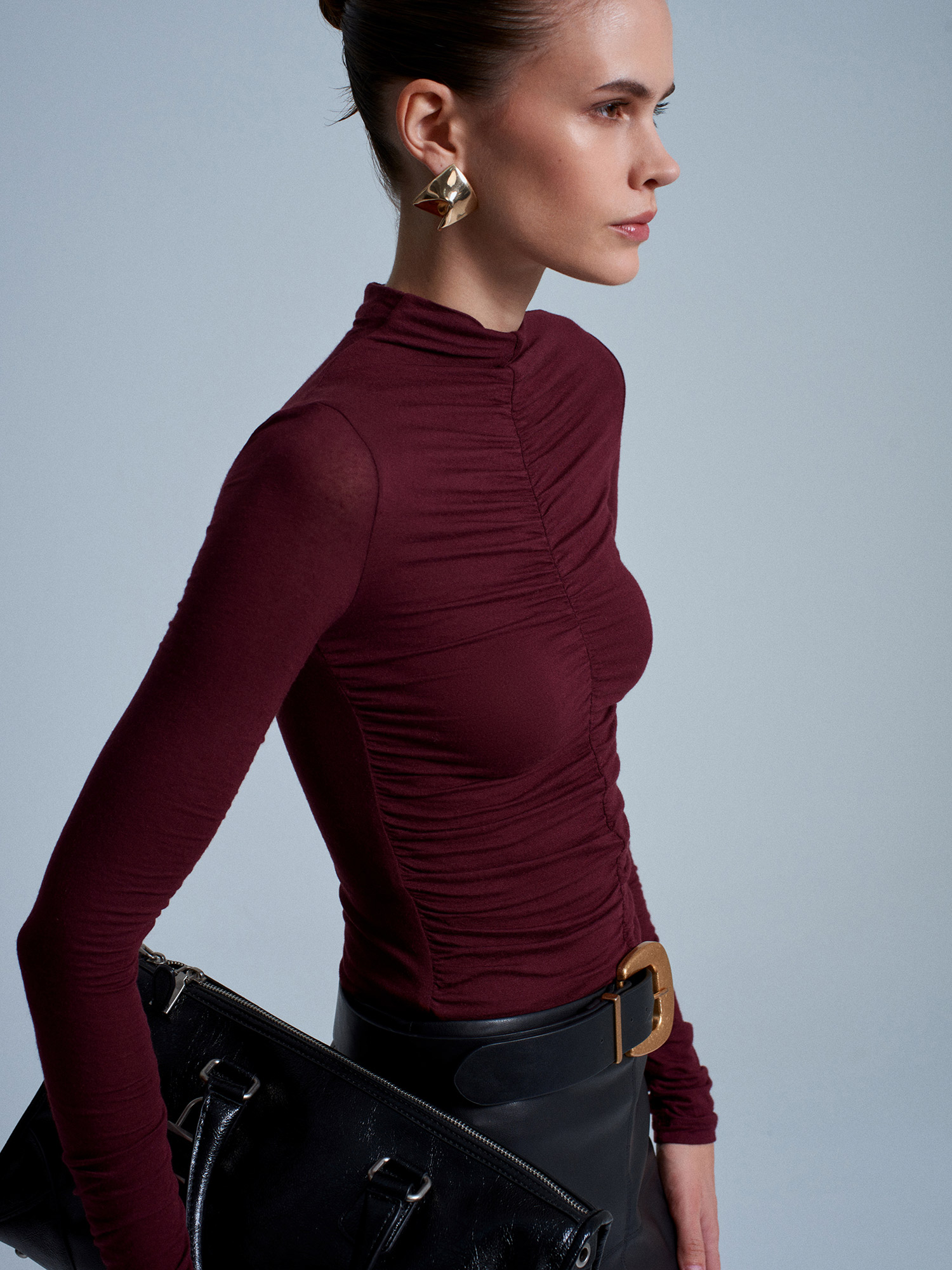 32333 Kaşmir Karışımlı Büzgülü Bluz-Bordo