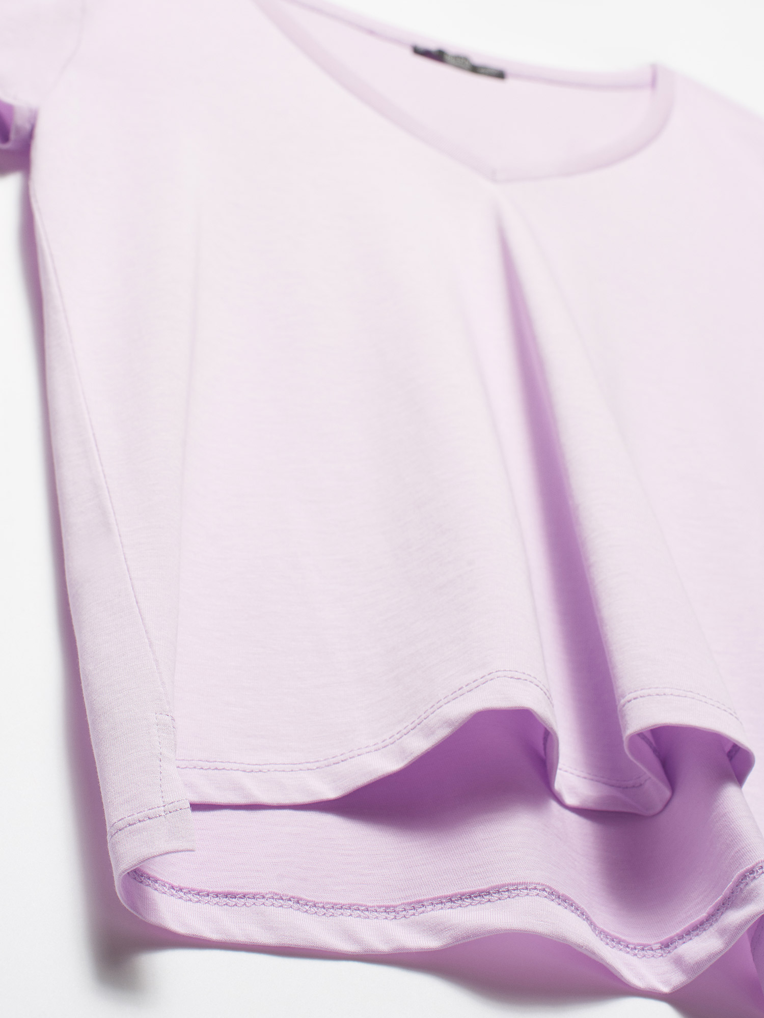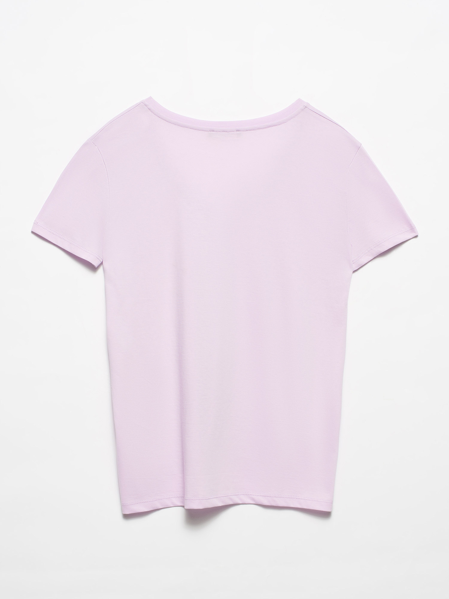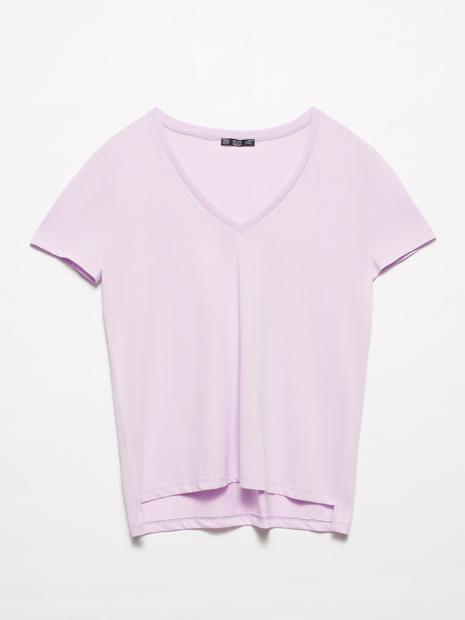 3470 V Yaka Basic T-Shirt-Açık Lila