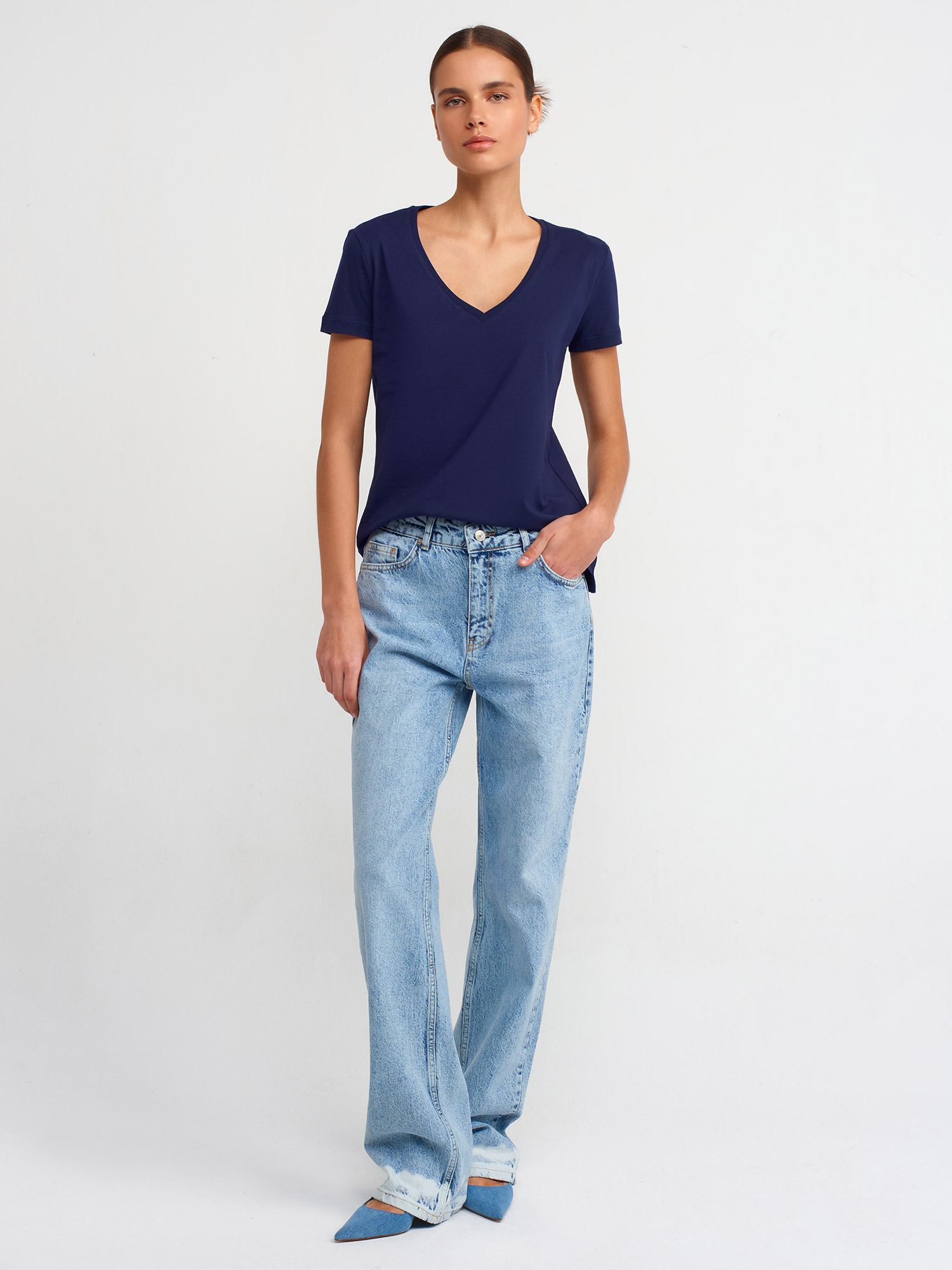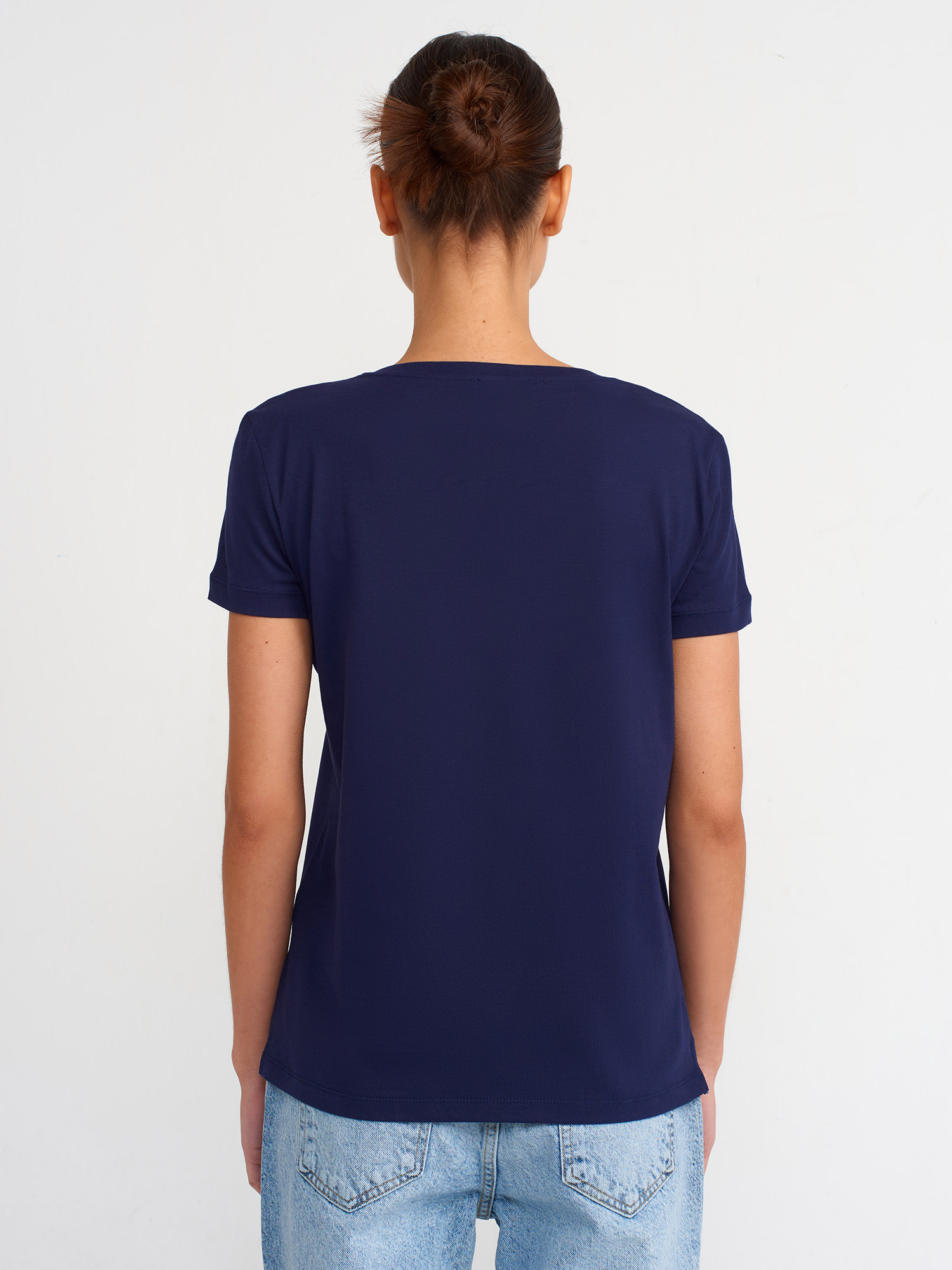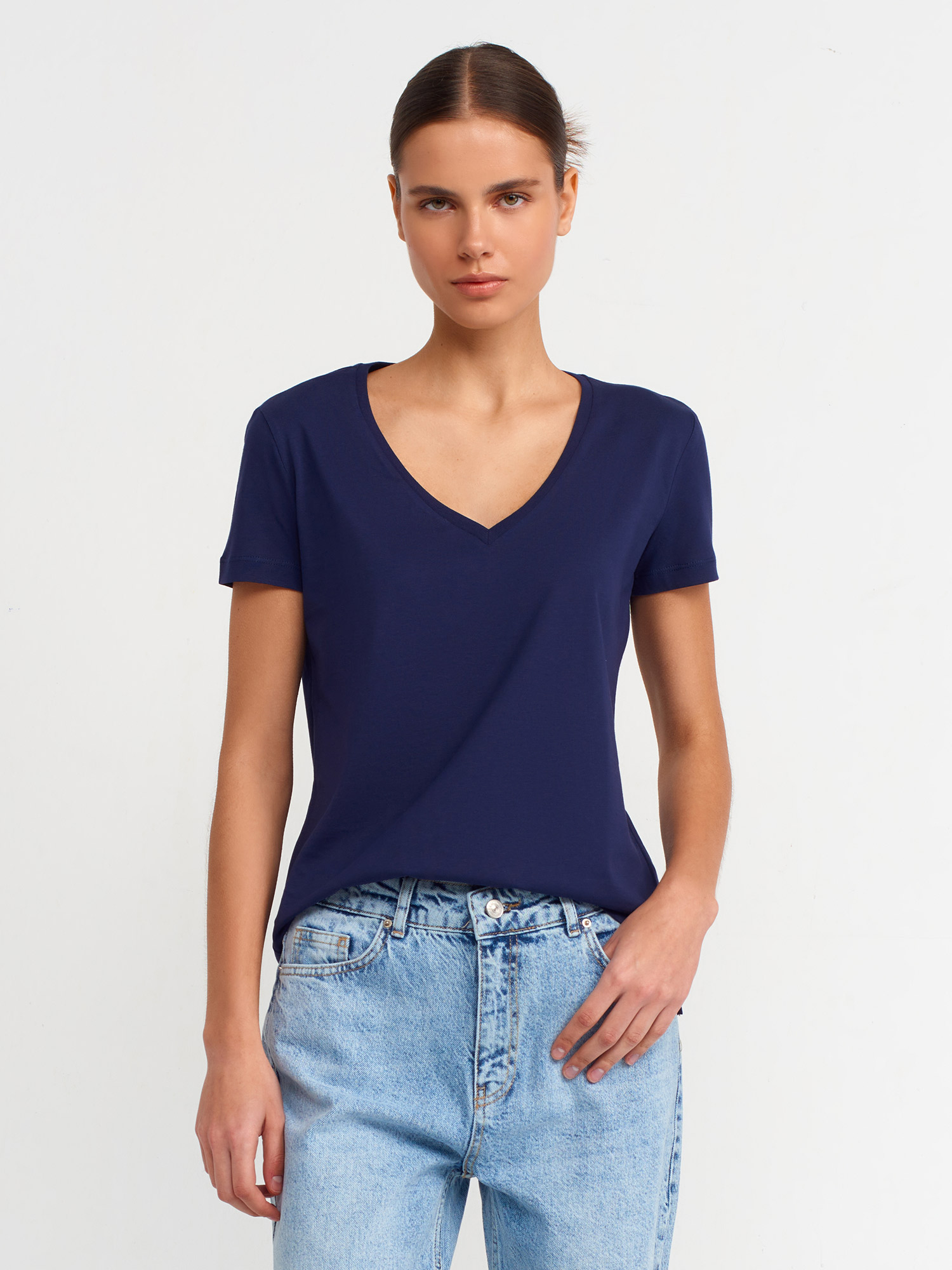 3470 V Yaka Basic T-Shirt-Lacivert