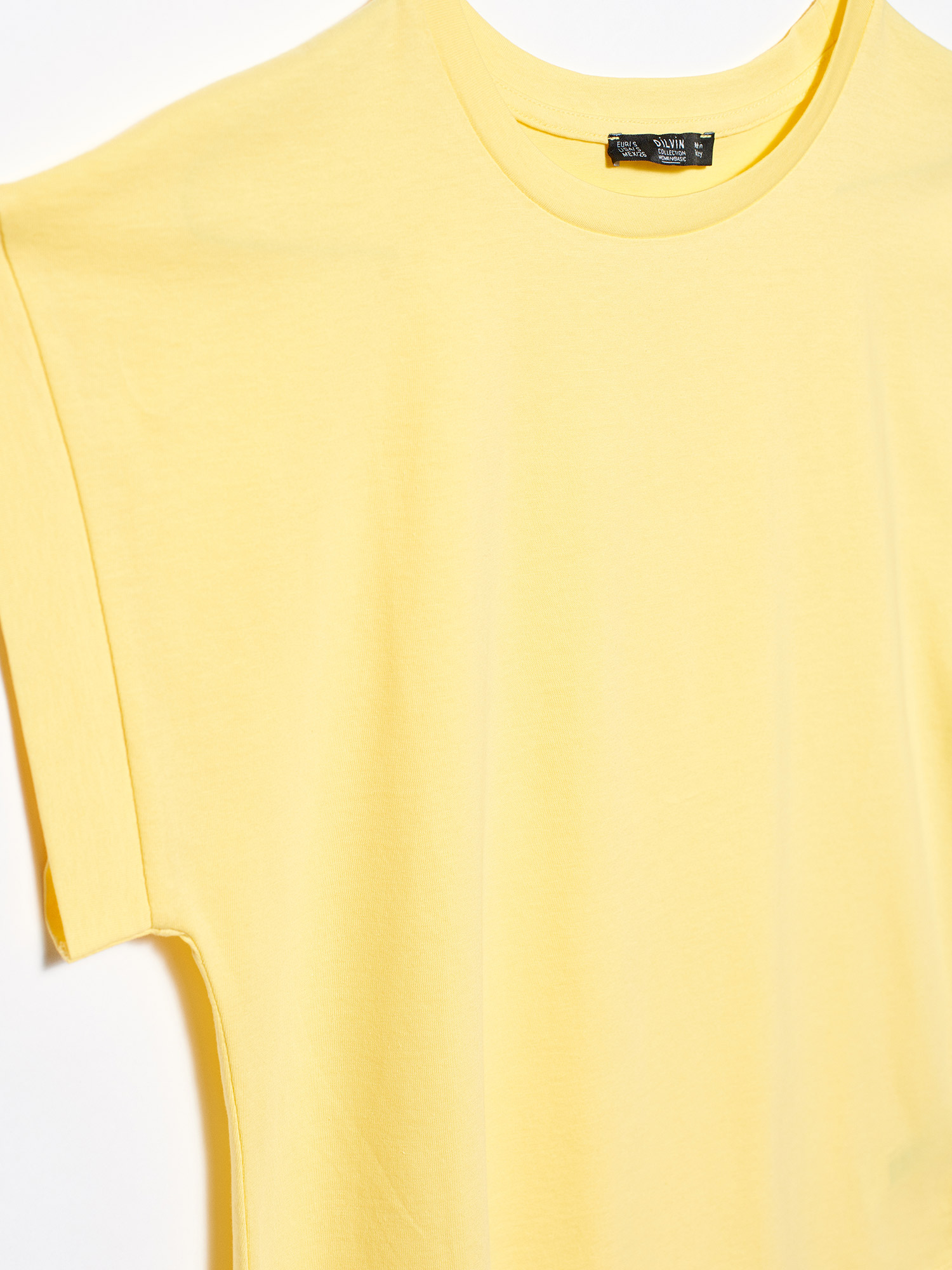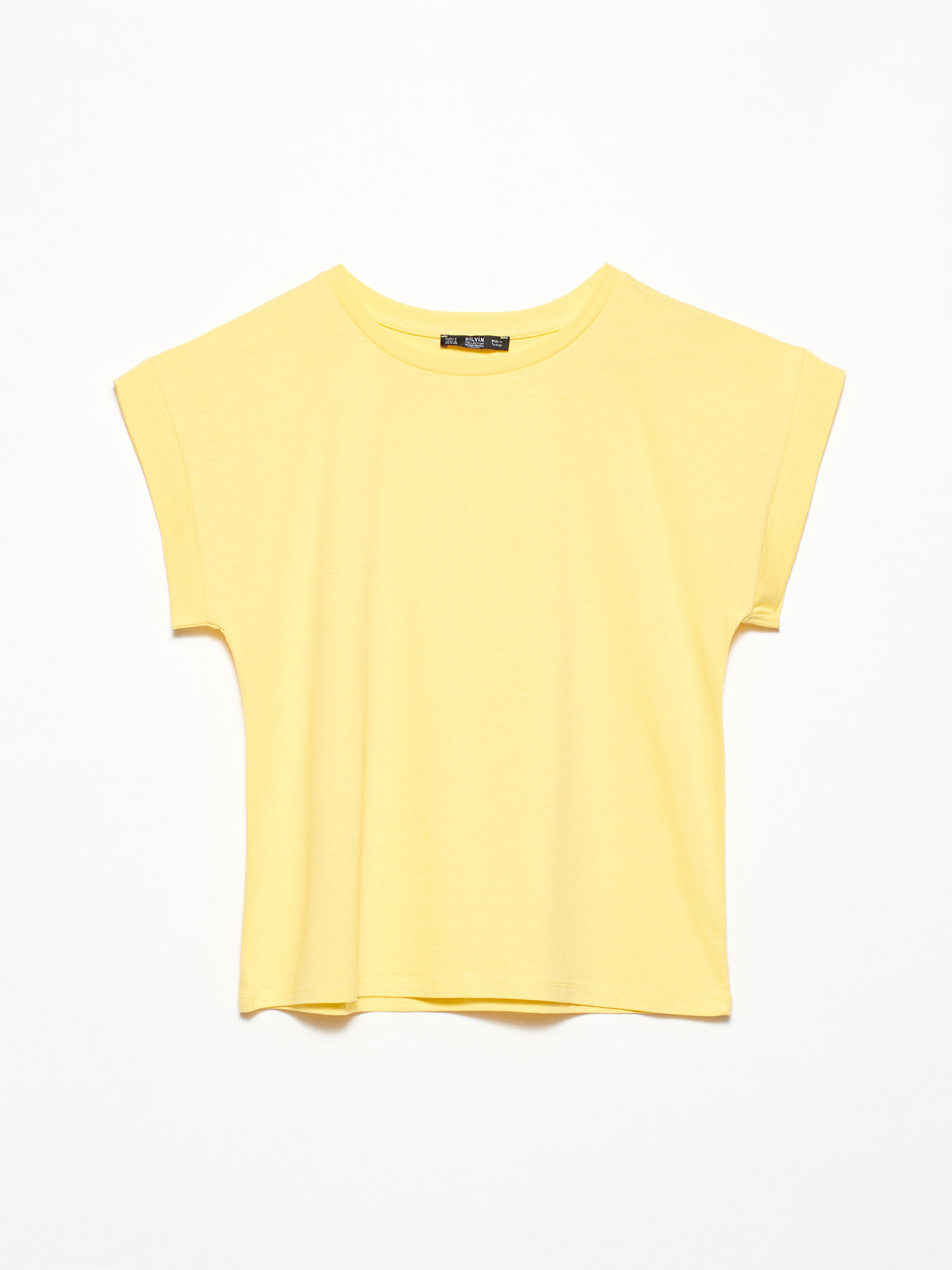 3504 Bisiklet Yaka Penye T-Shirt-Canlı Sarı