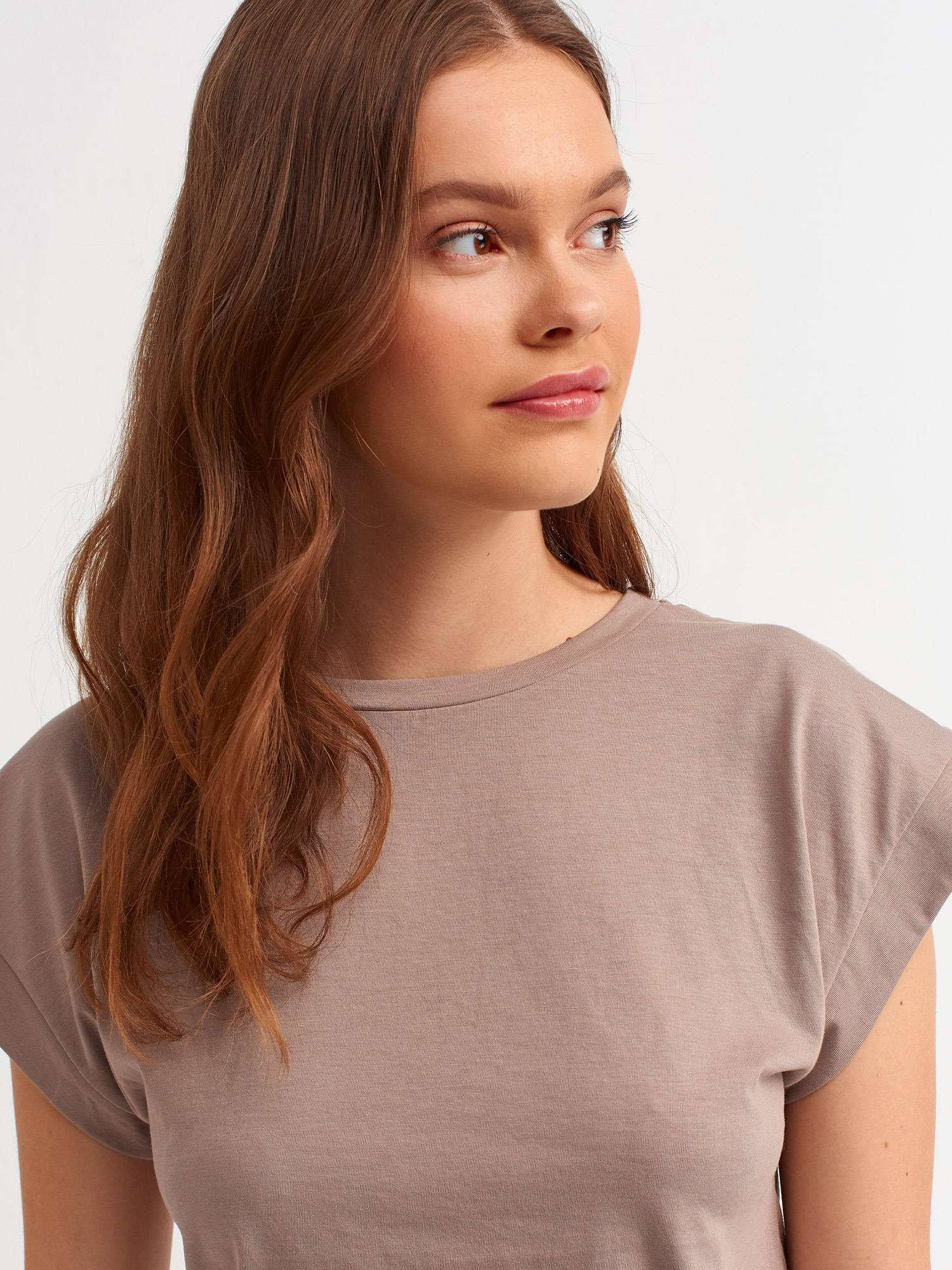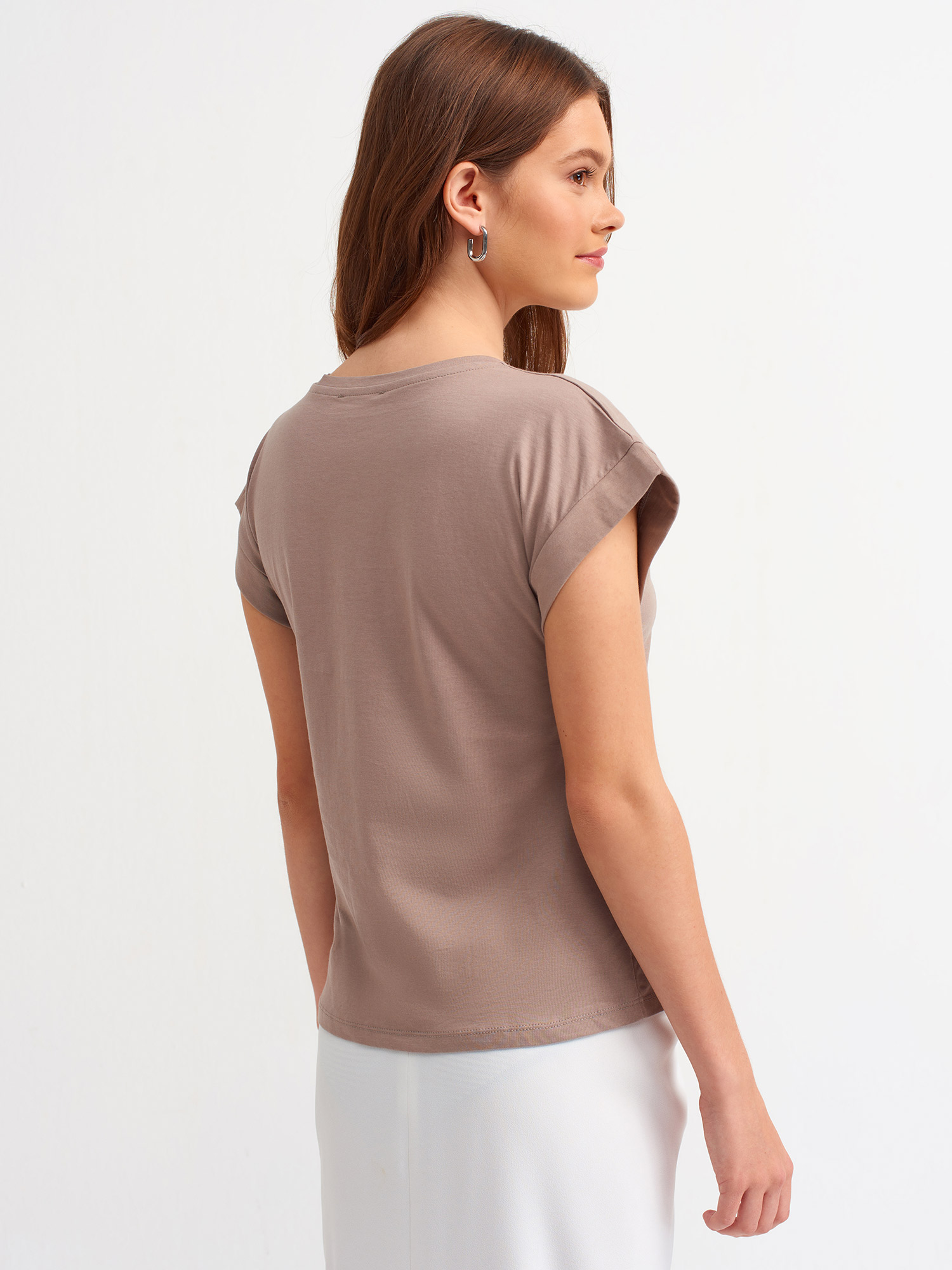 3504 Bisiklet Yaka Penye T-Shirt-Koyu Vizon