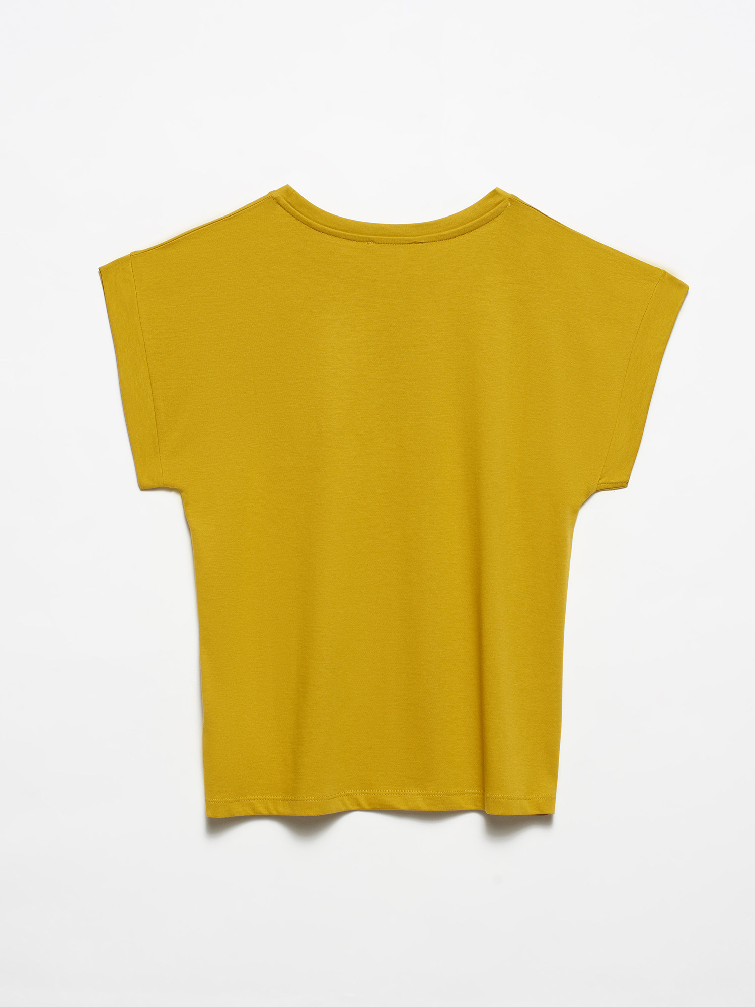 3504 Bisiklet Yaka Penye T-Shirt-Yağ Yeşil