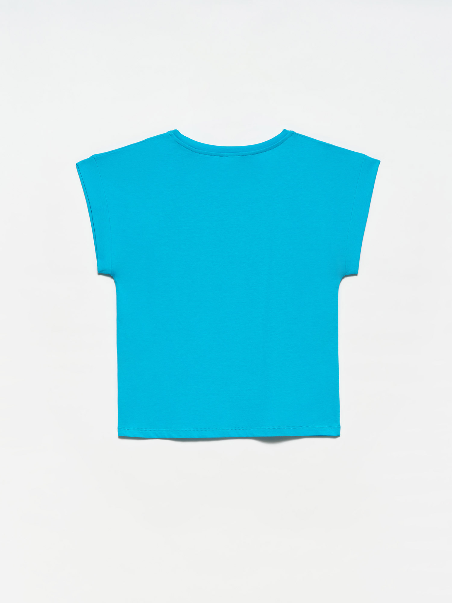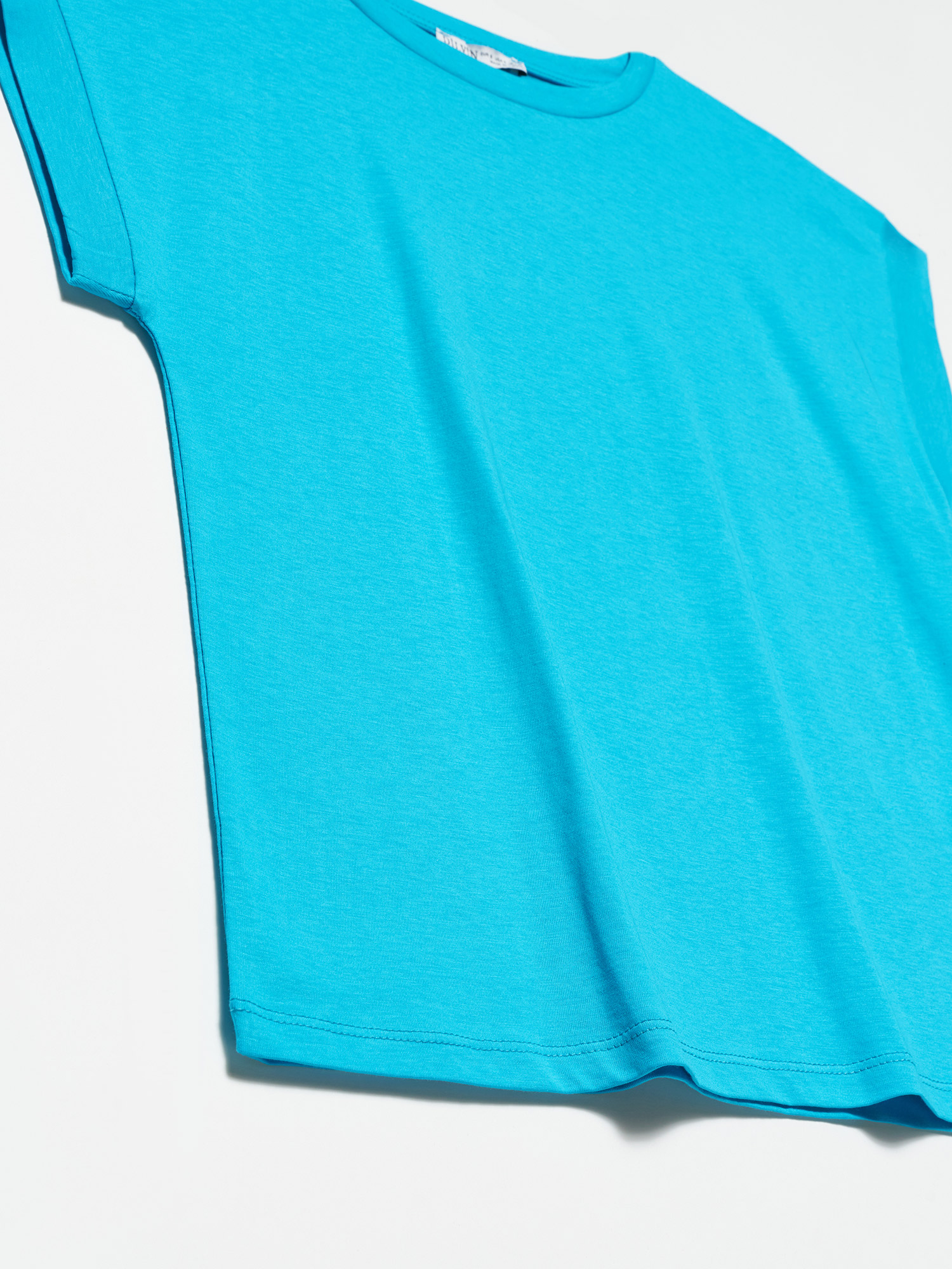 3504 Bisiklet Yaka Penye T-Shirt-Turkuaz