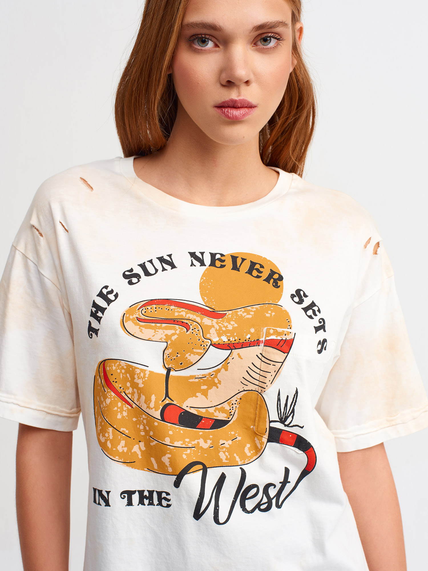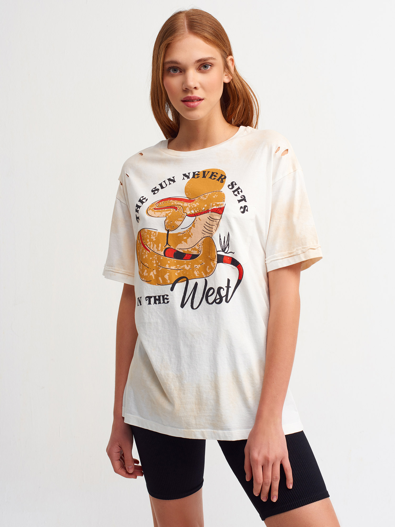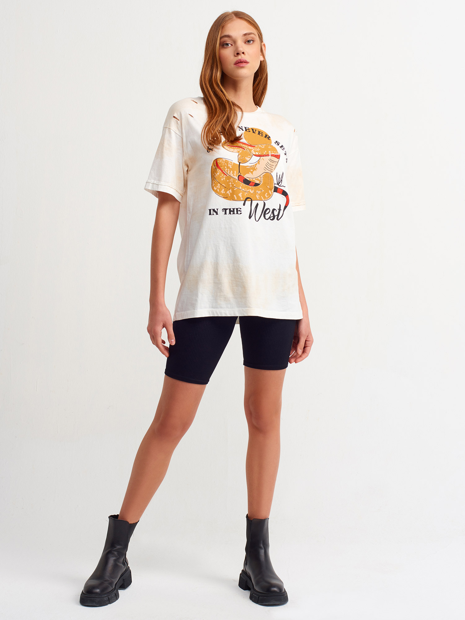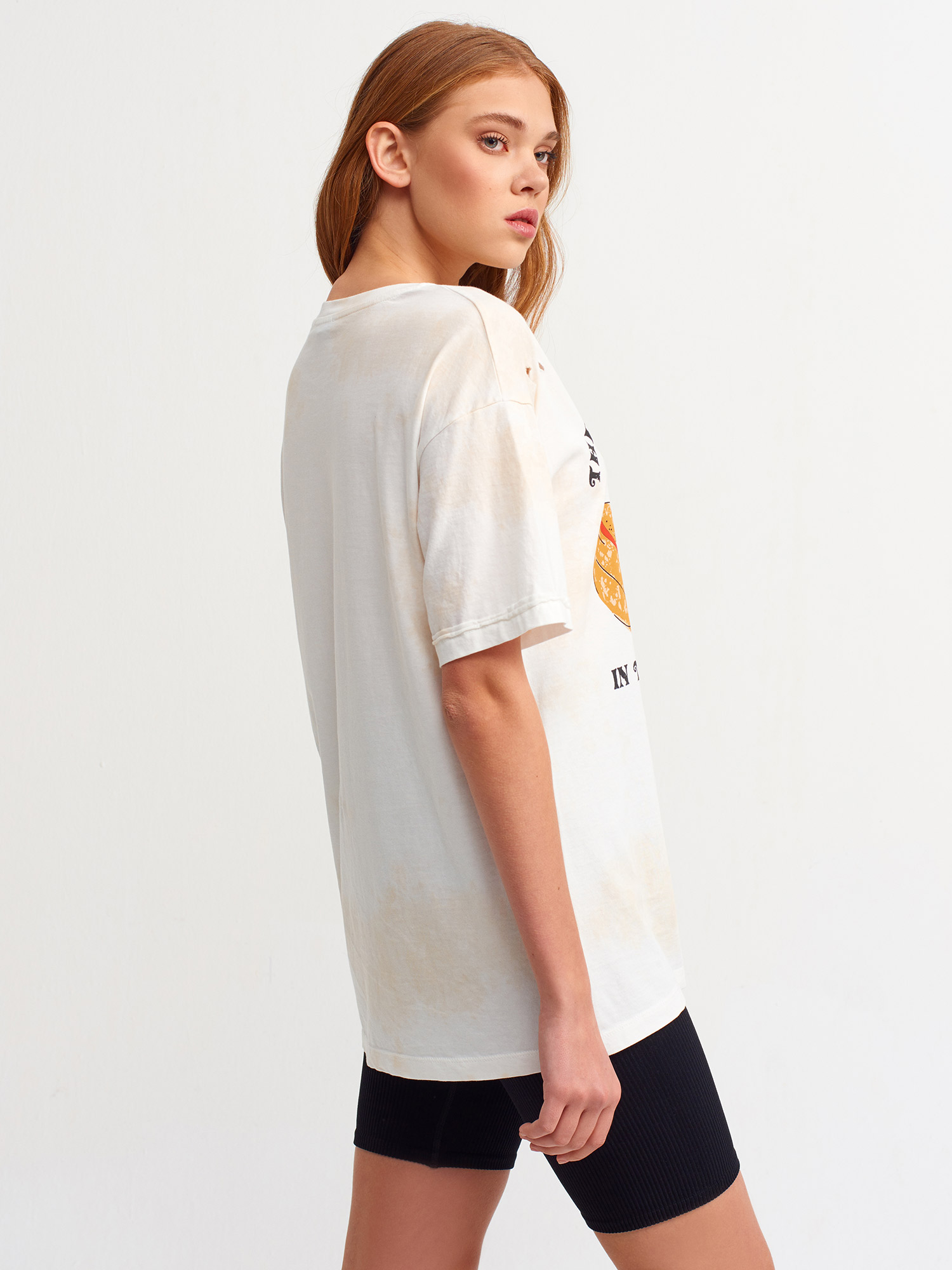 3671 Baskılı T-Shirt-Ekru