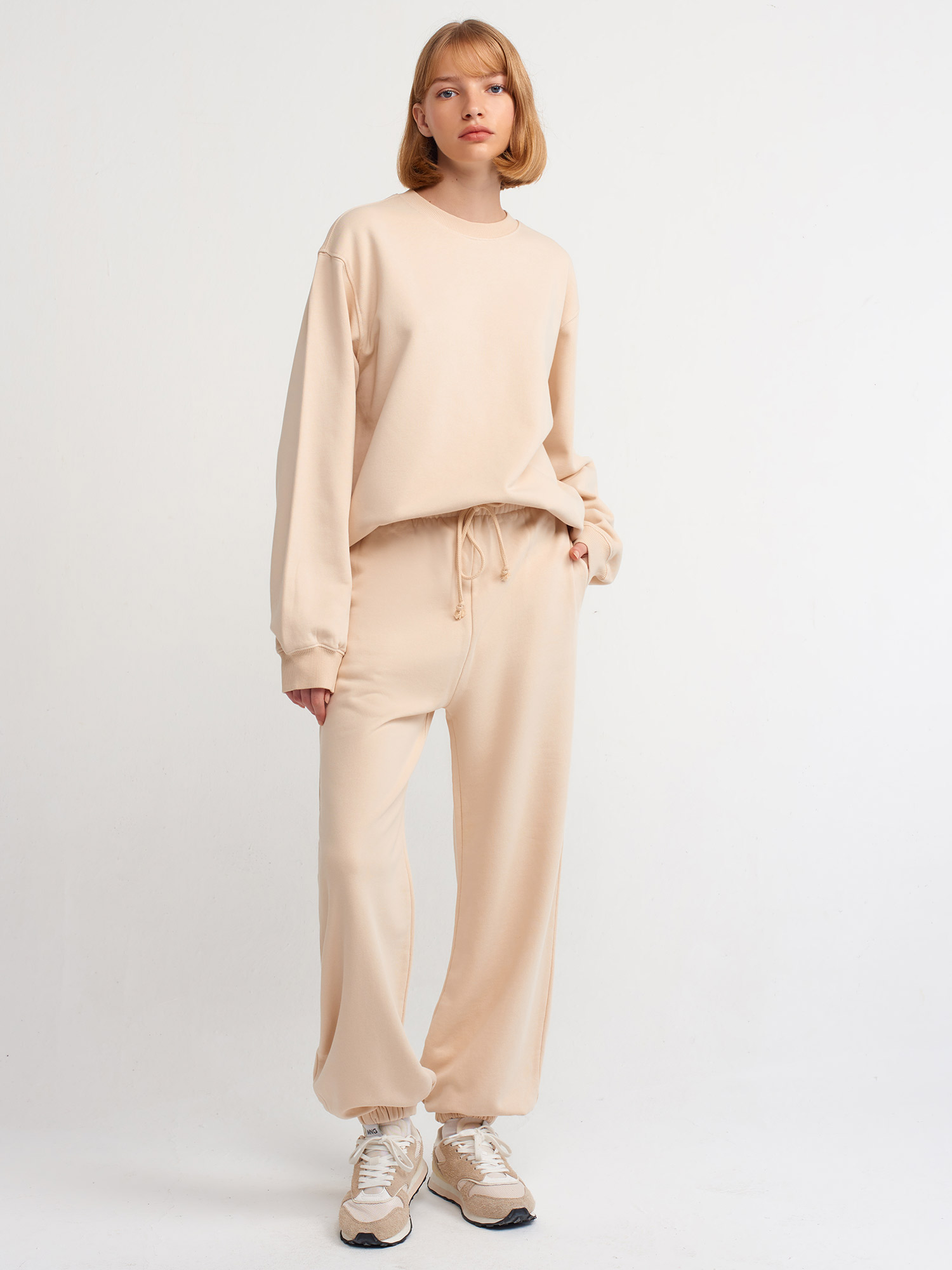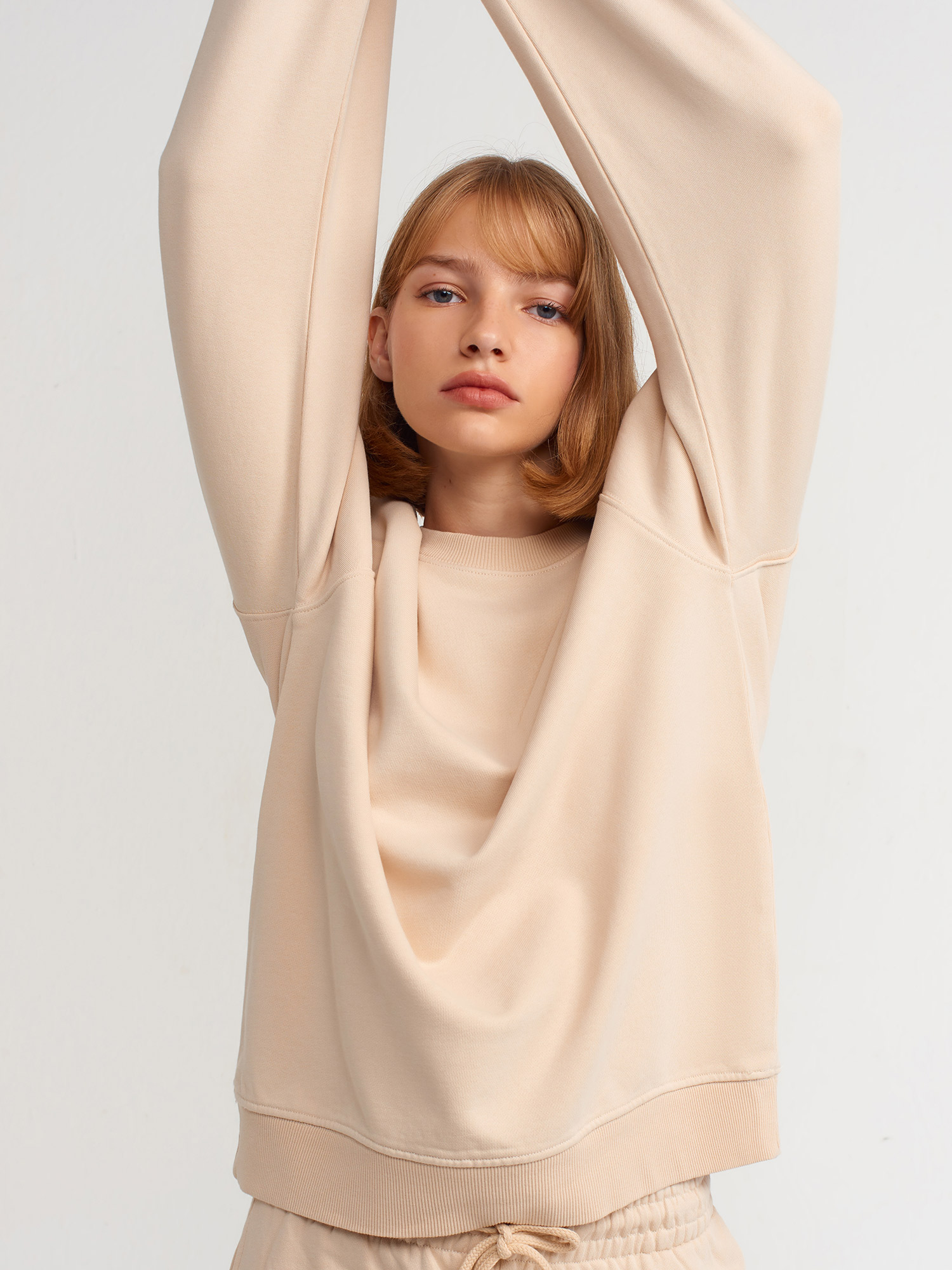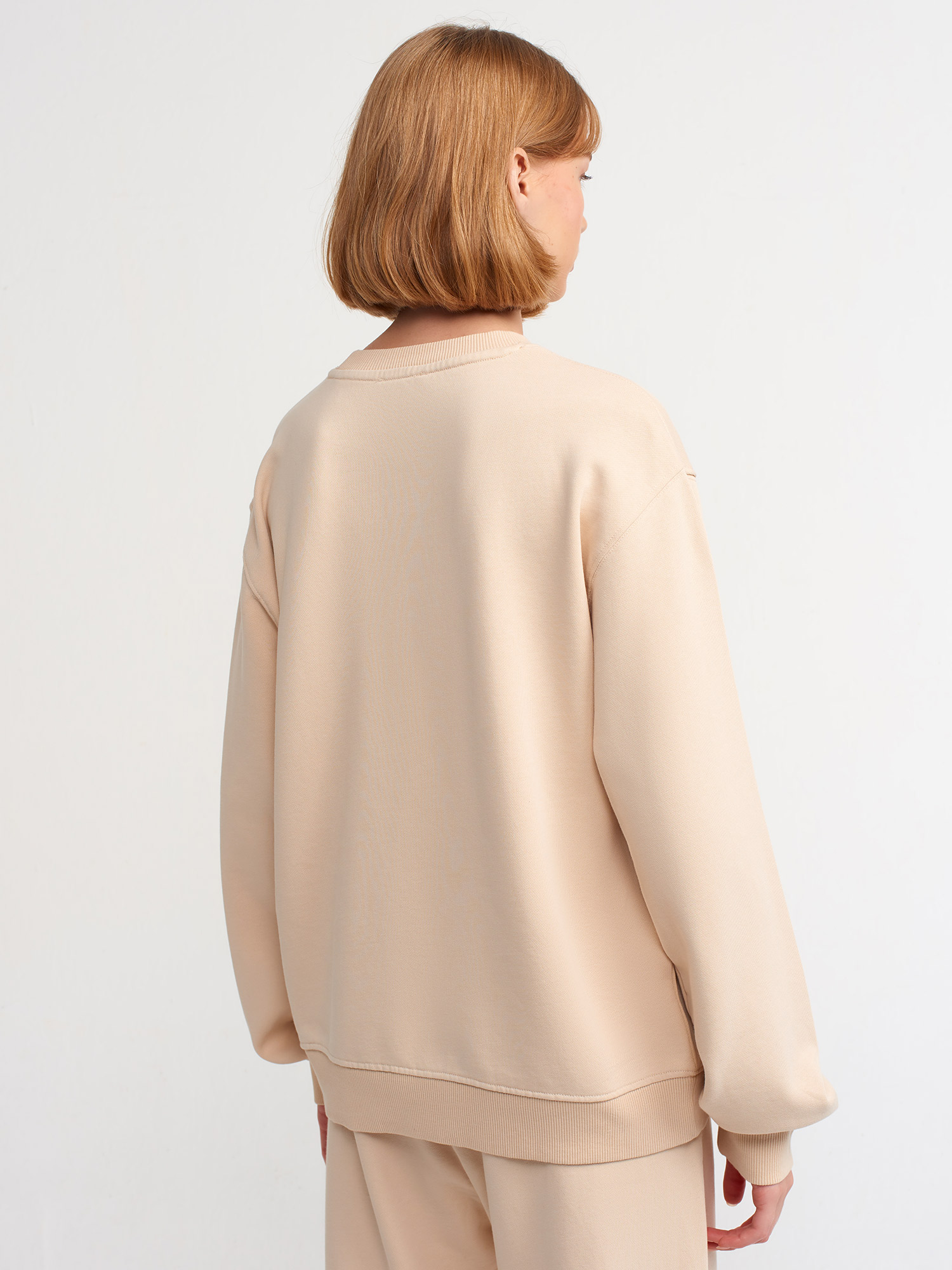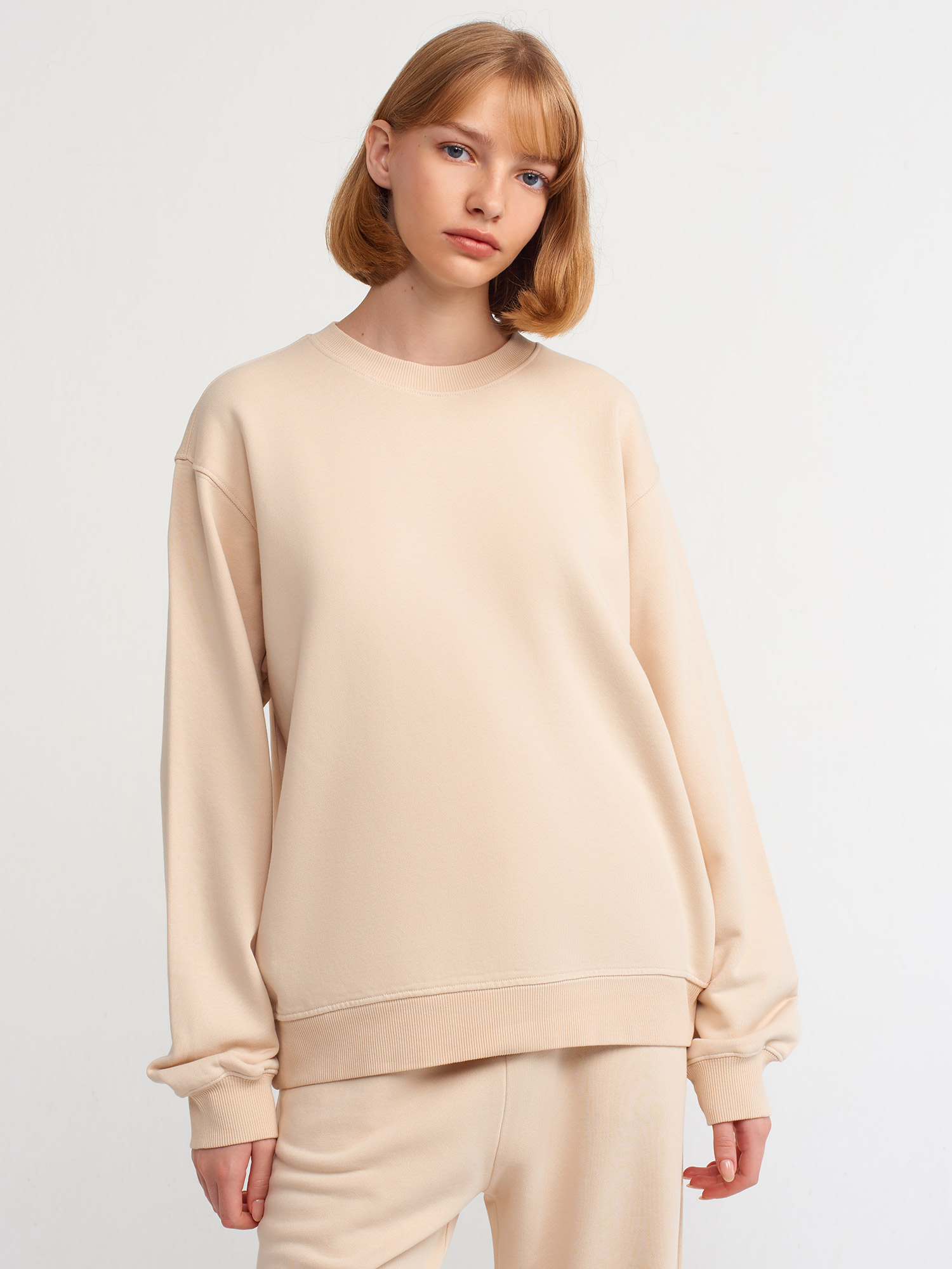 40146 Bisiklet Yaka Sweatshirt-Açık Bej