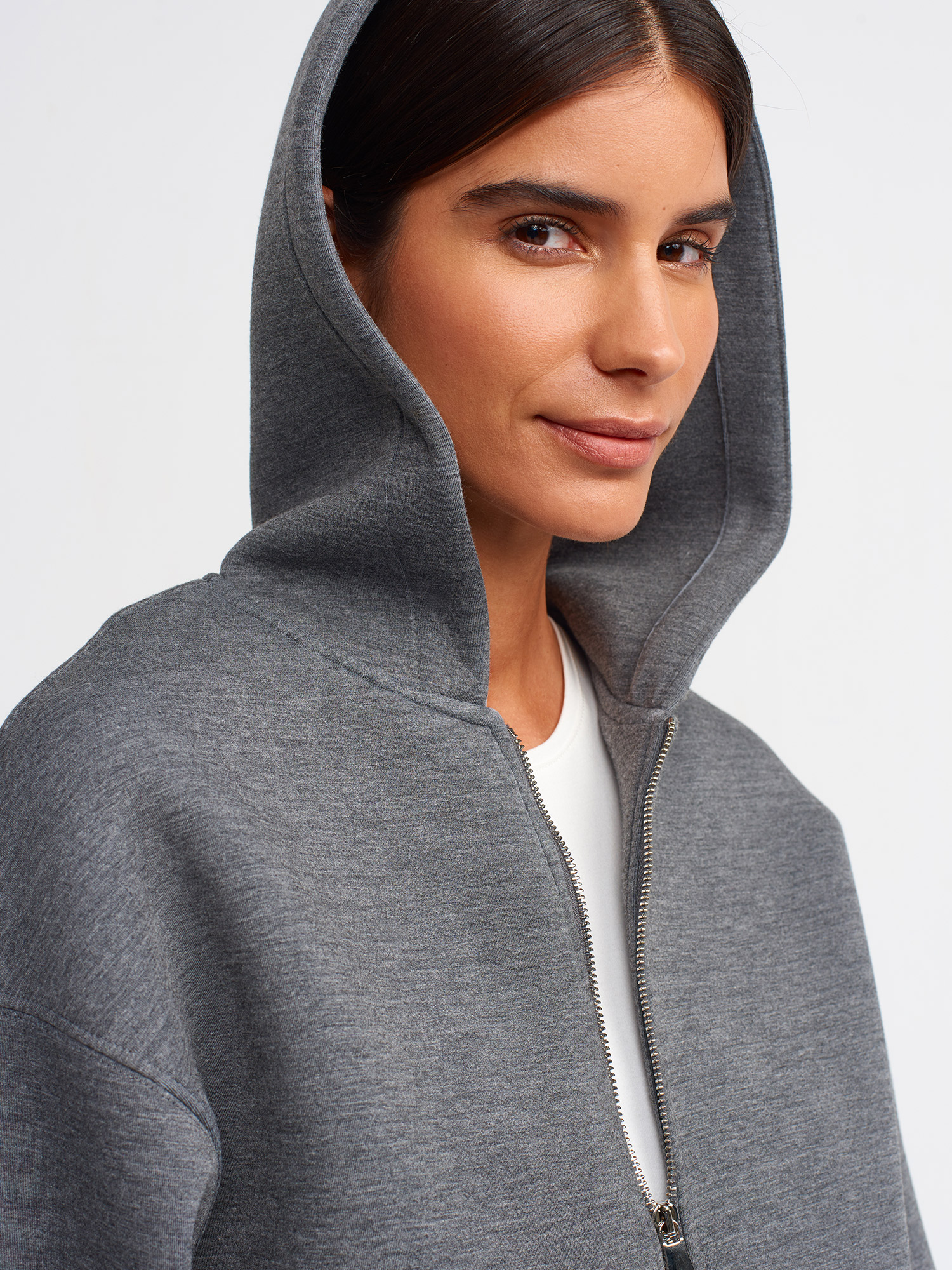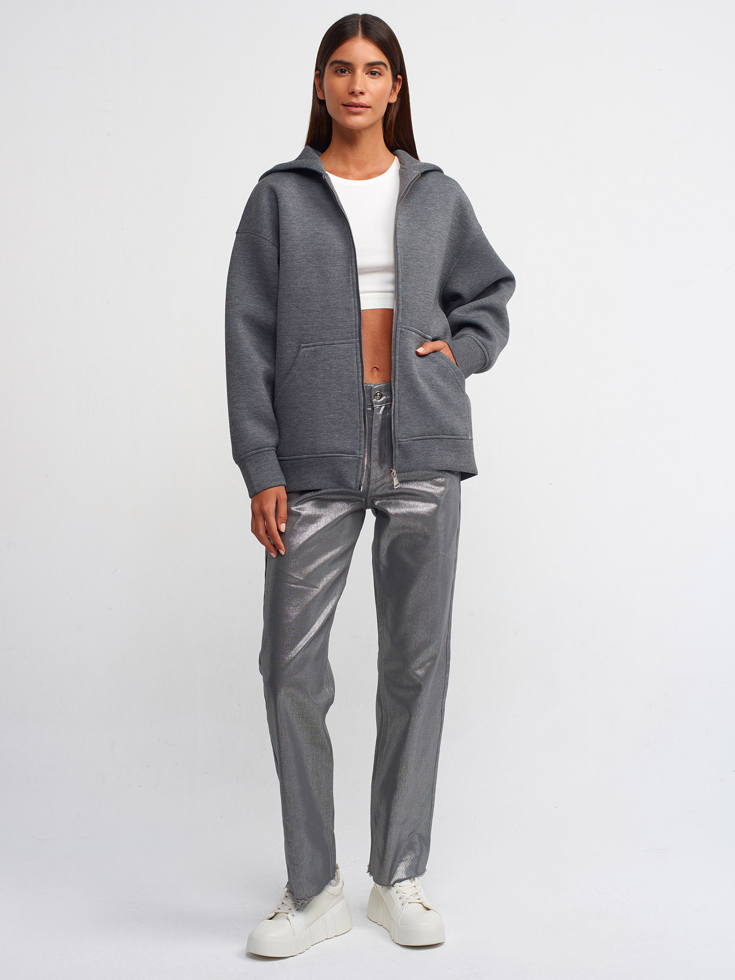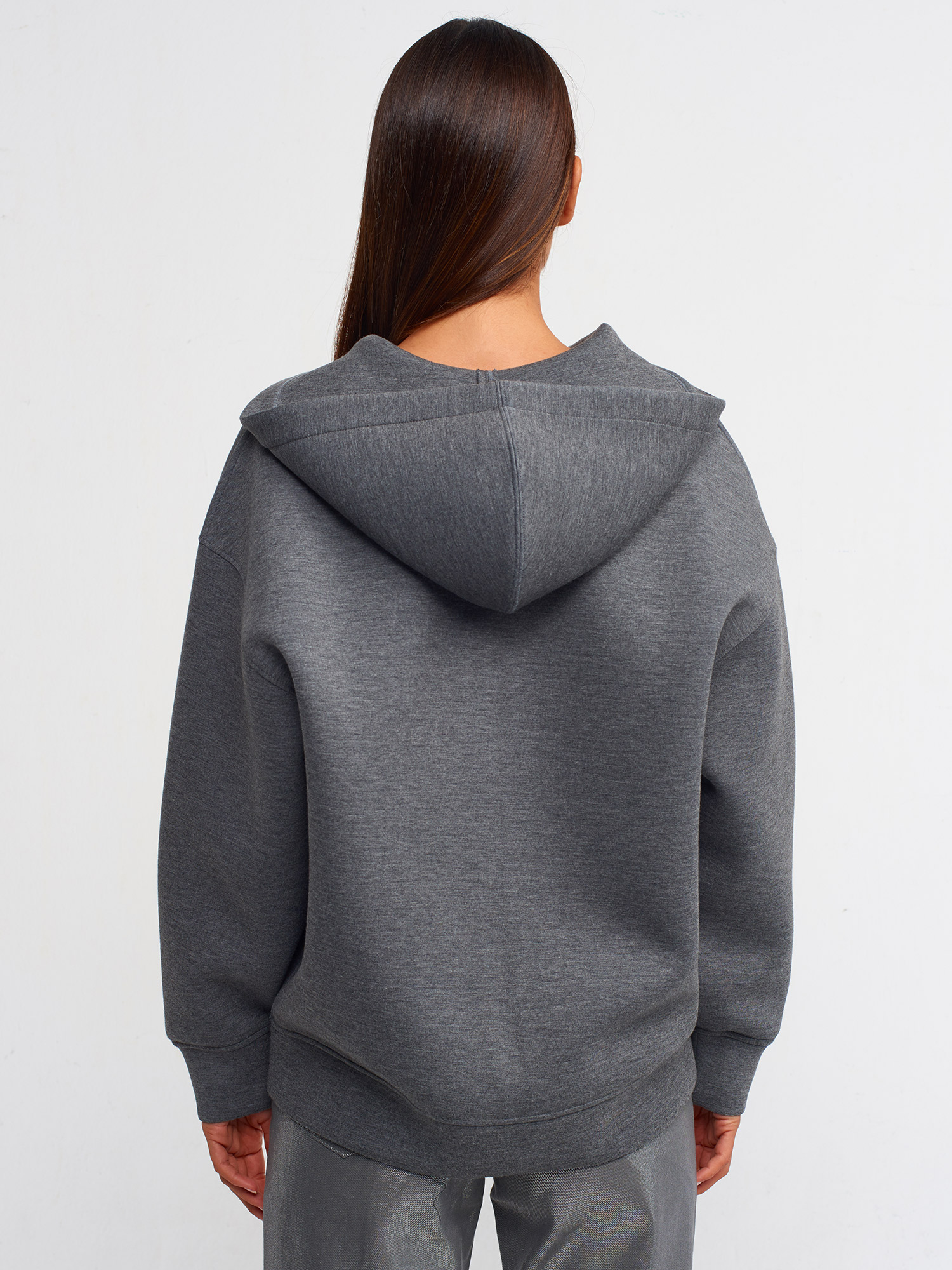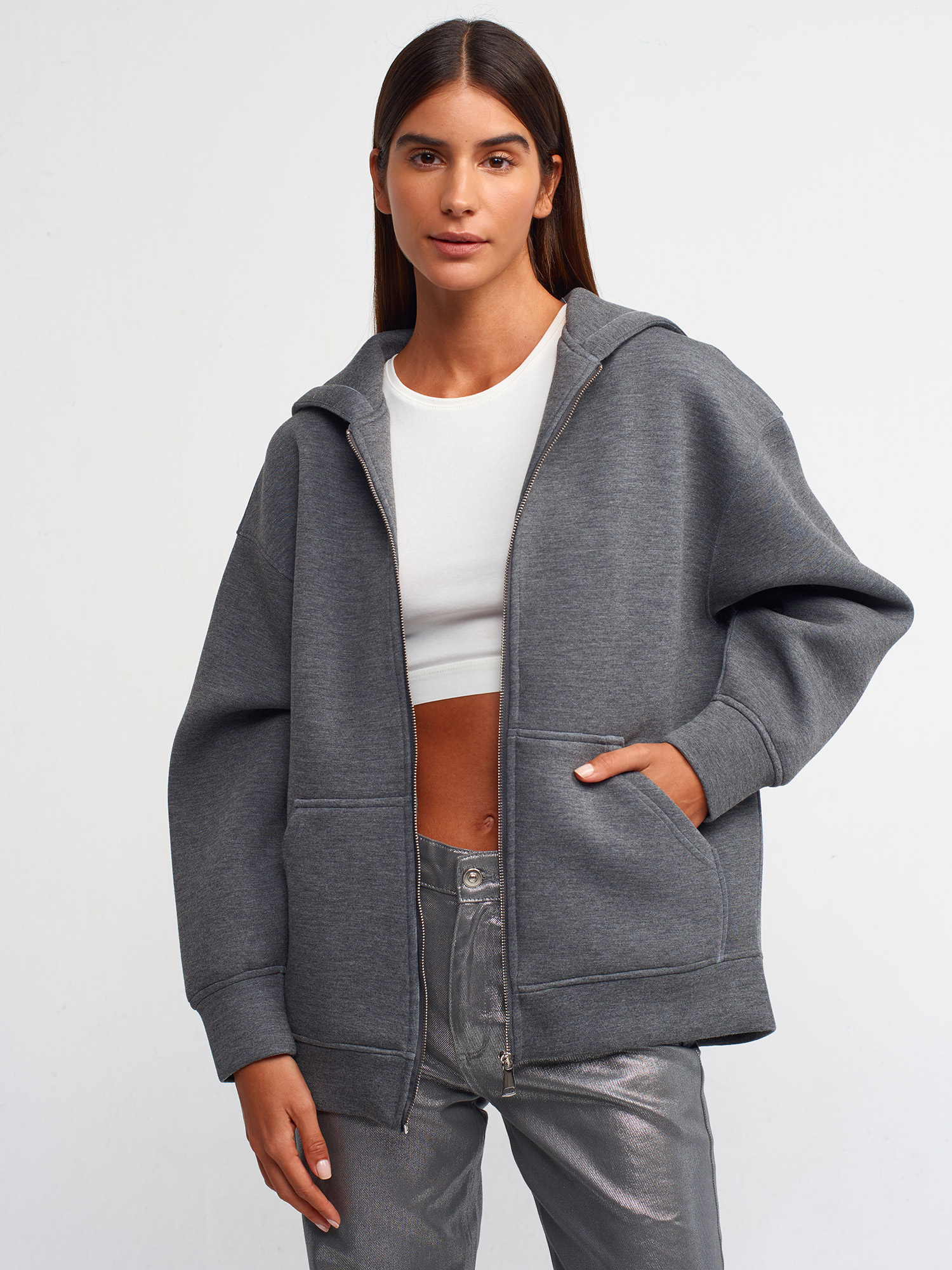 40164 Fermuar Detaylı Oversize Hırka-Antrasit M