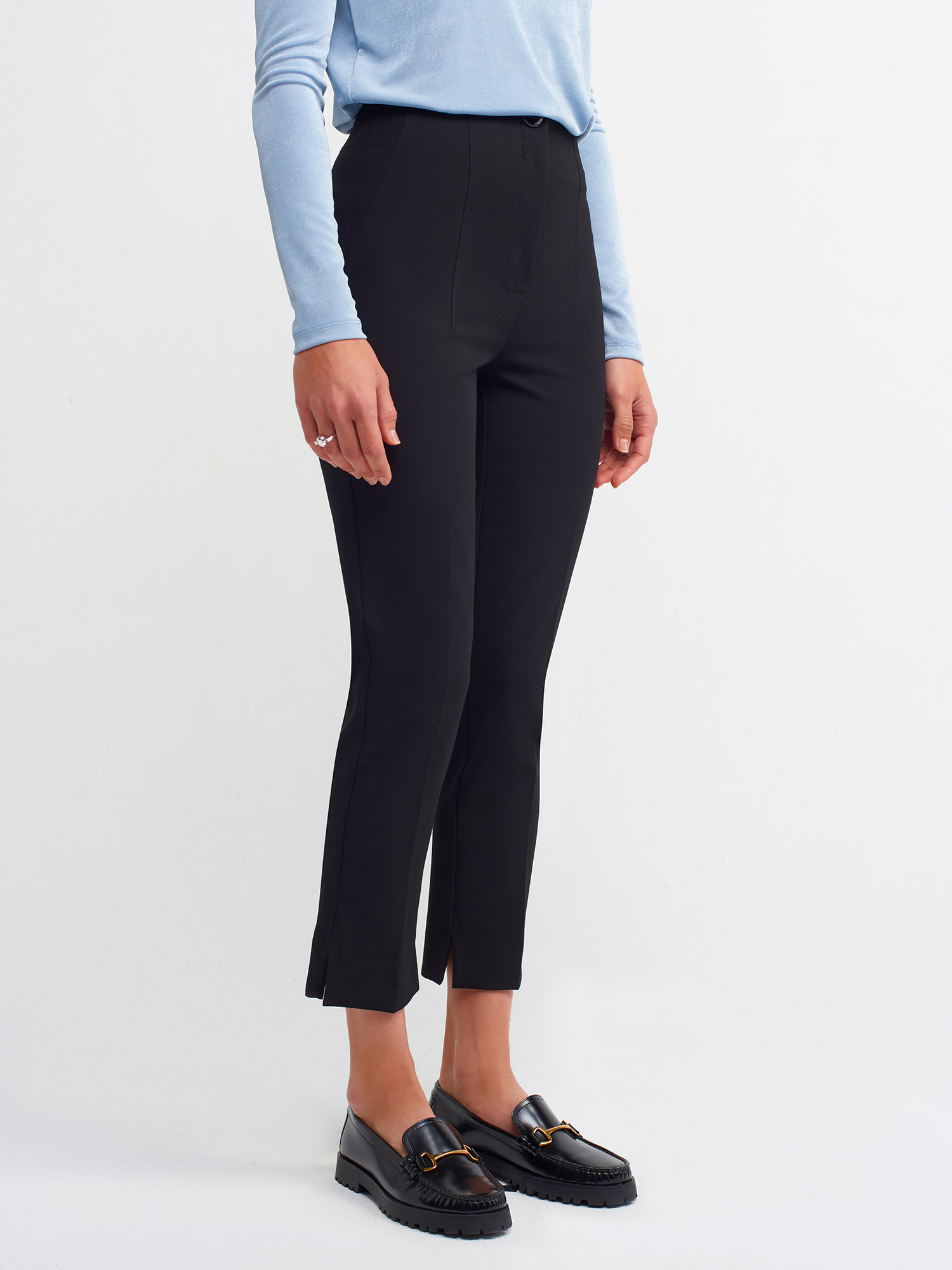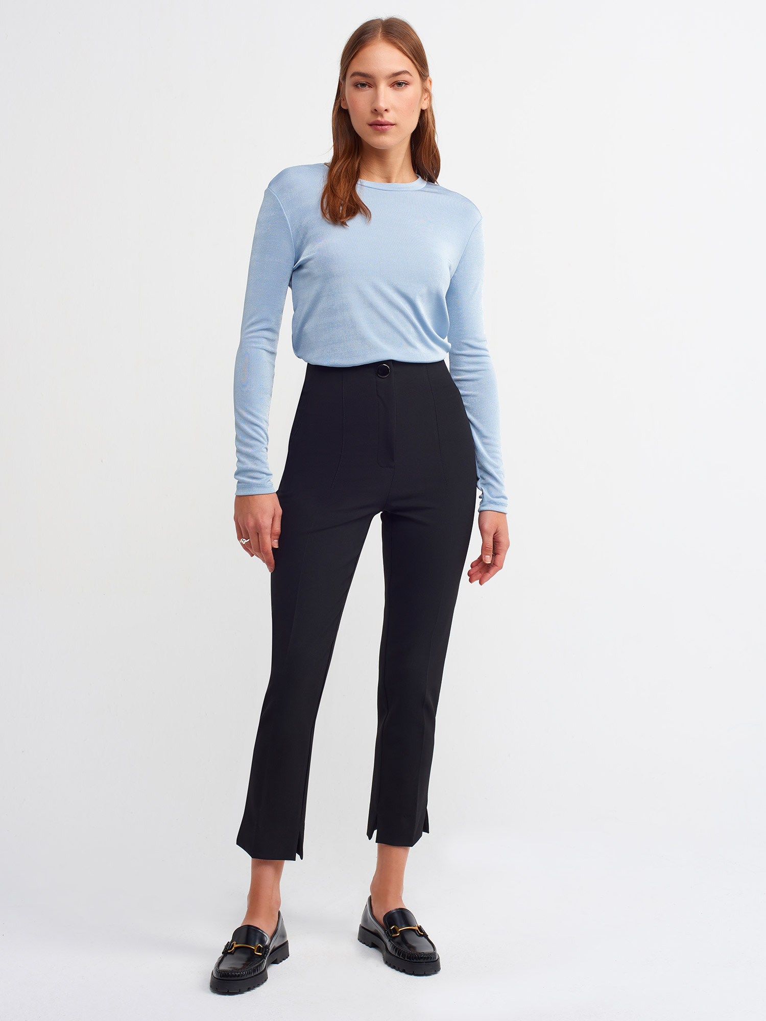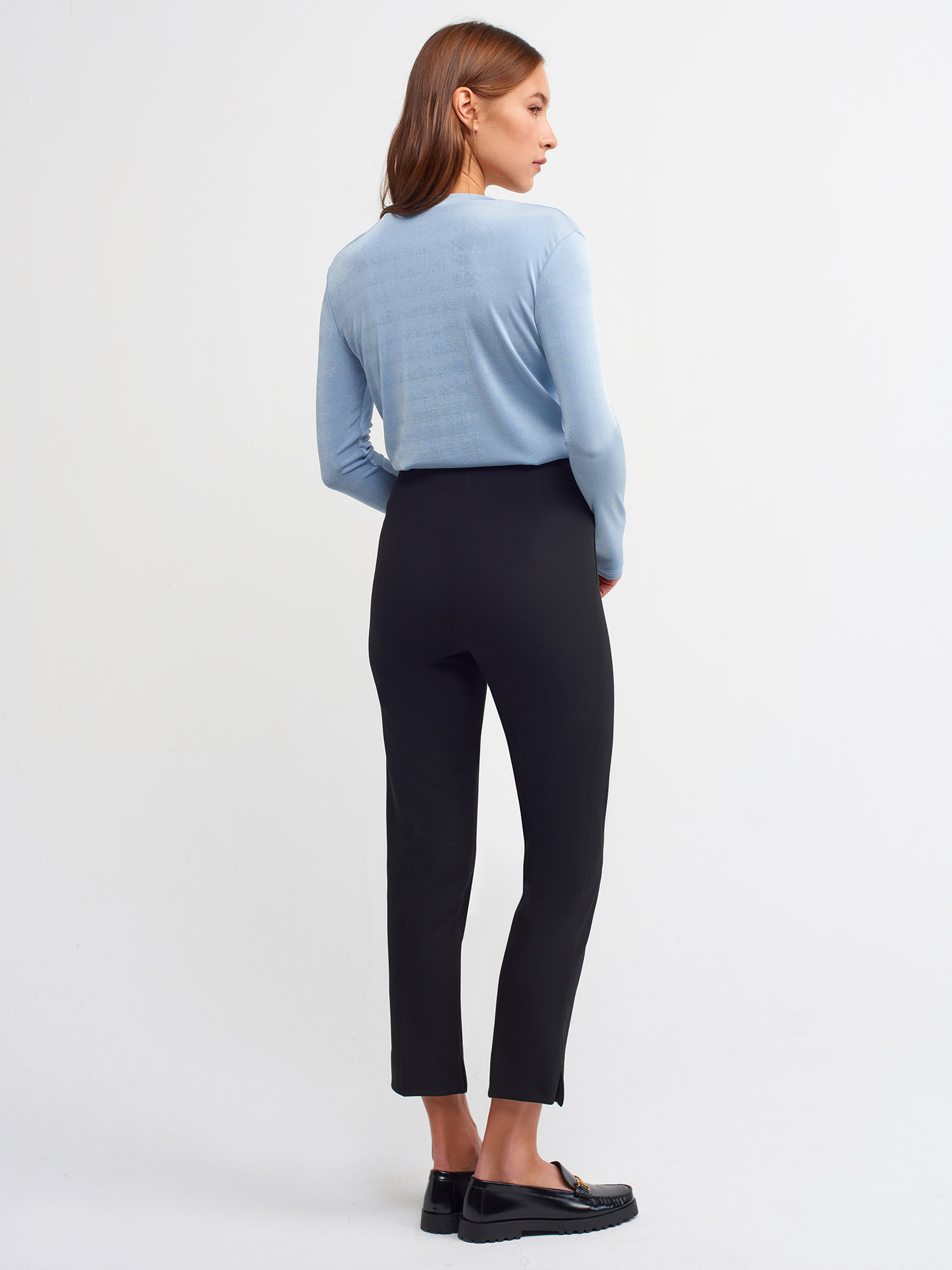 4841 Çıtçıtlı Yüksek Bel Pantolon-Siyah
