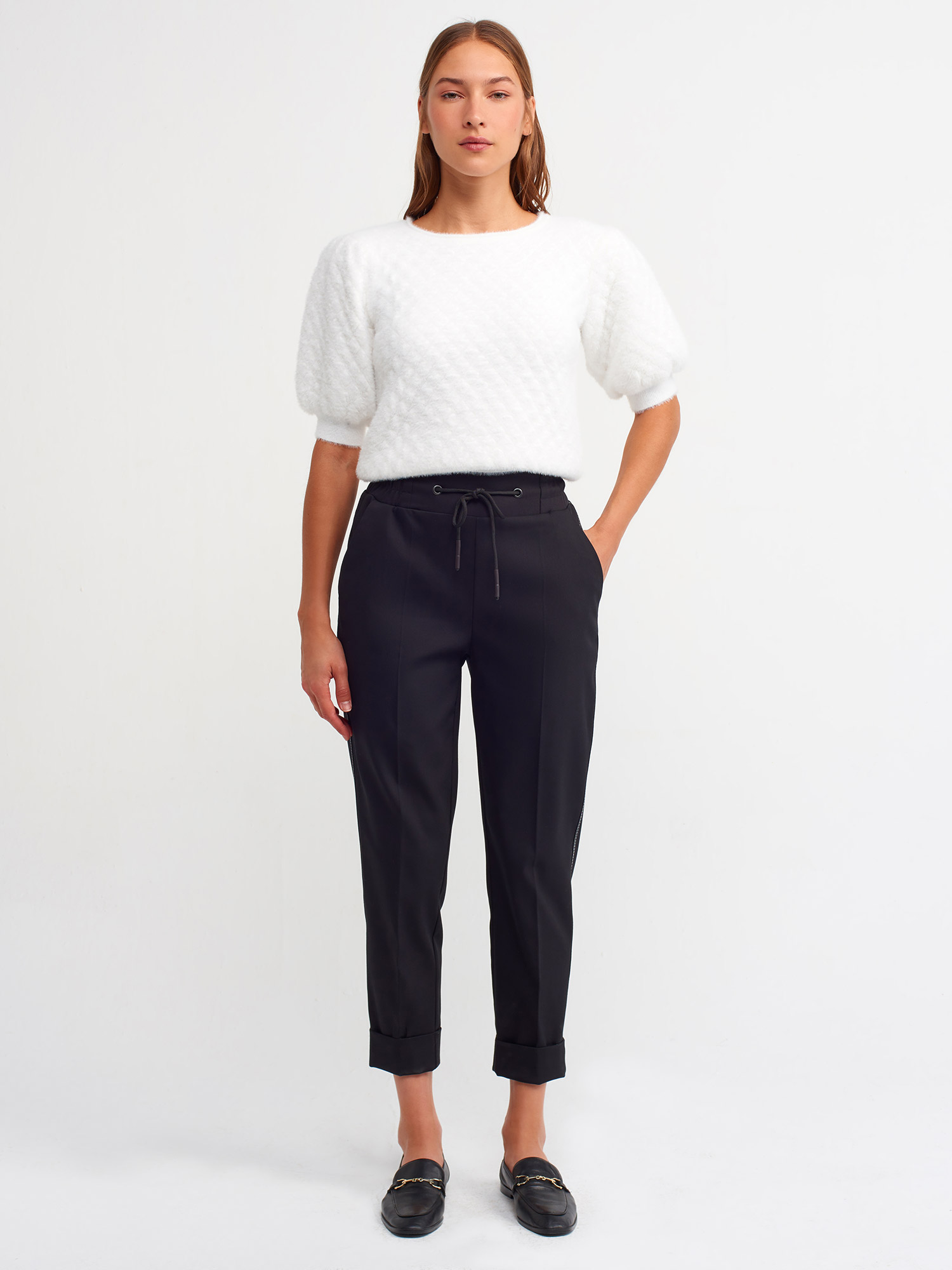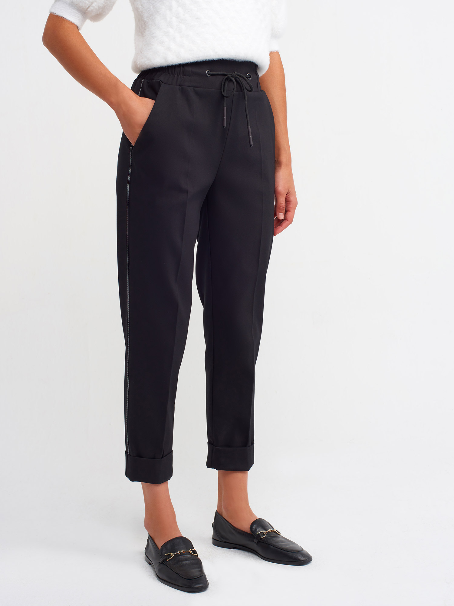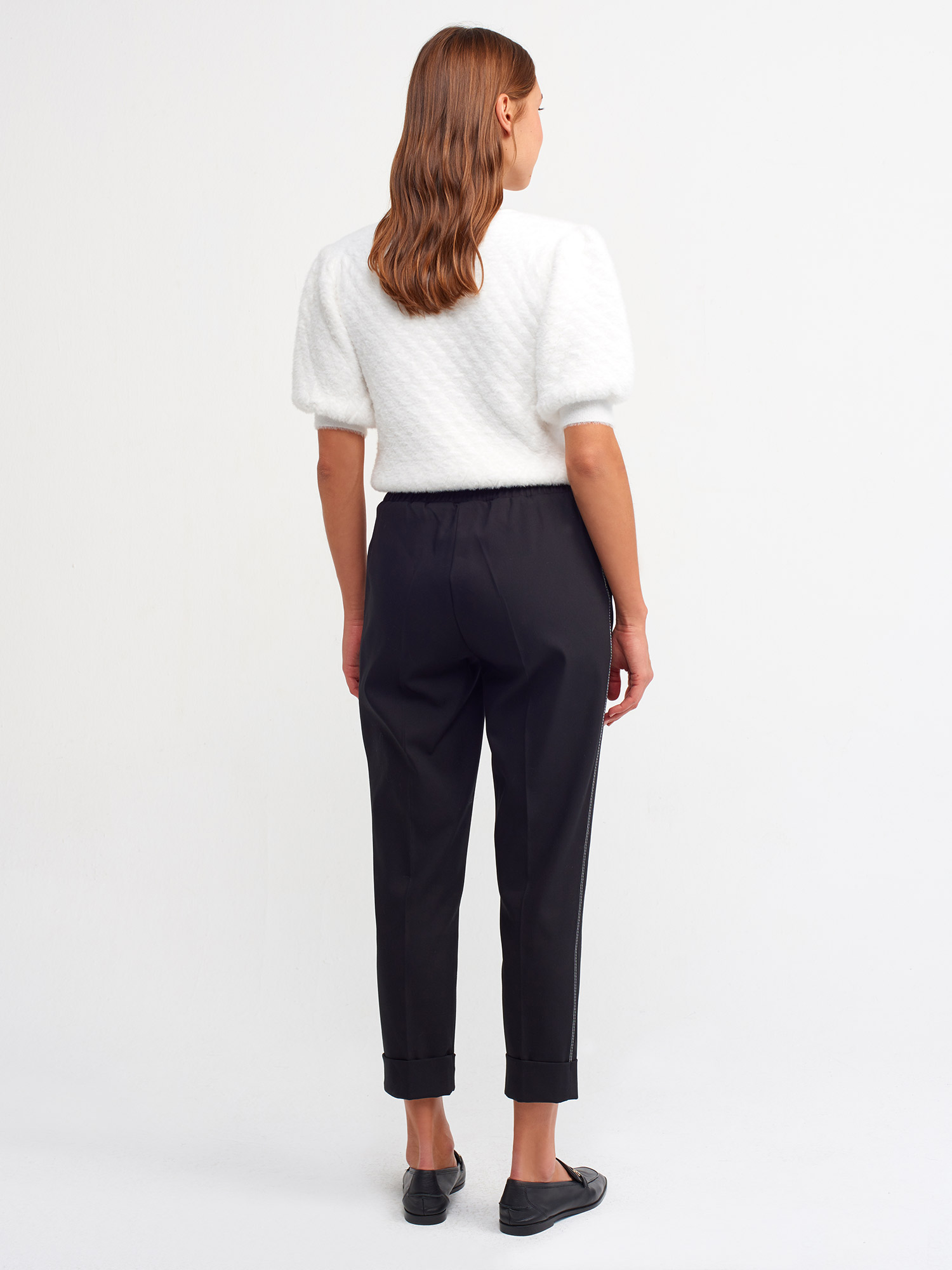 4860 Kontras Dikişli Fit Pantolon-Siyah