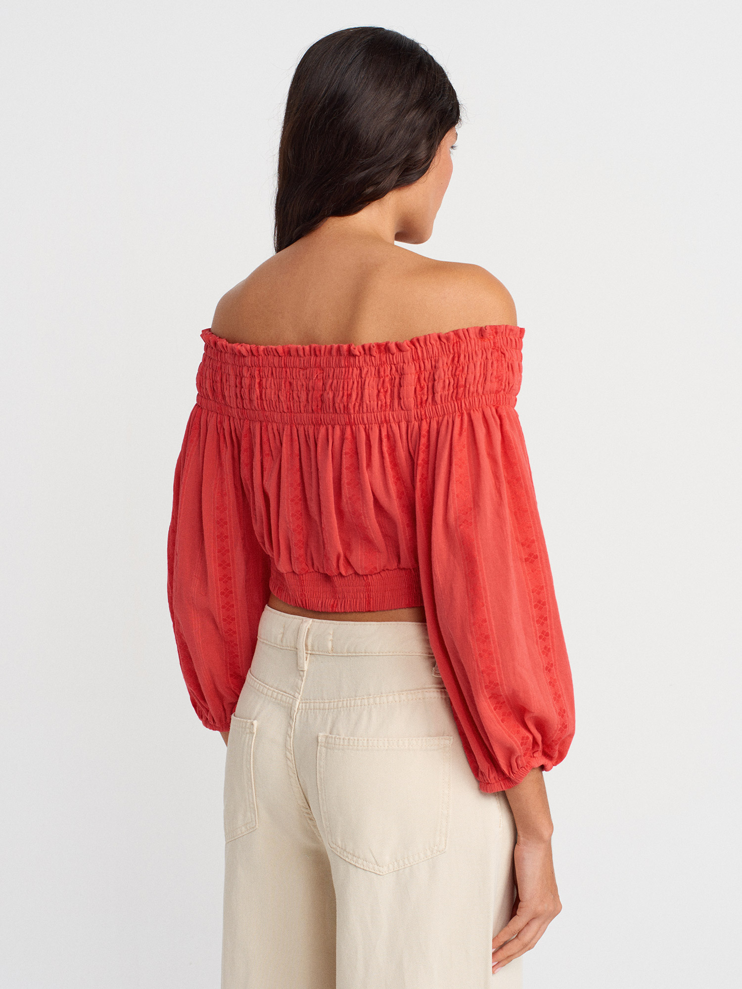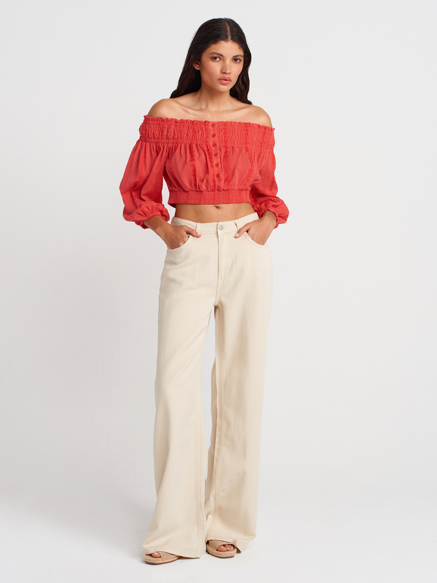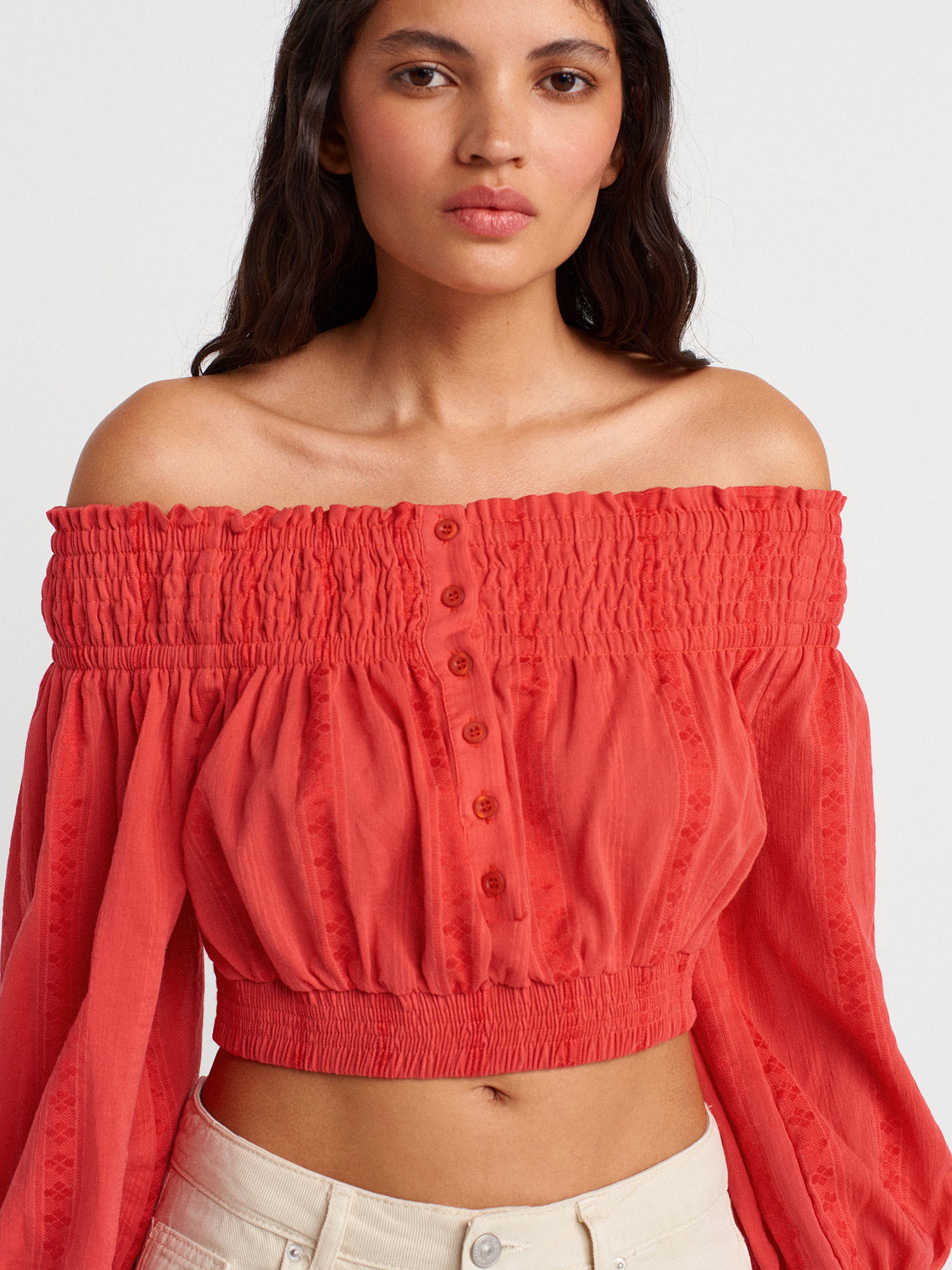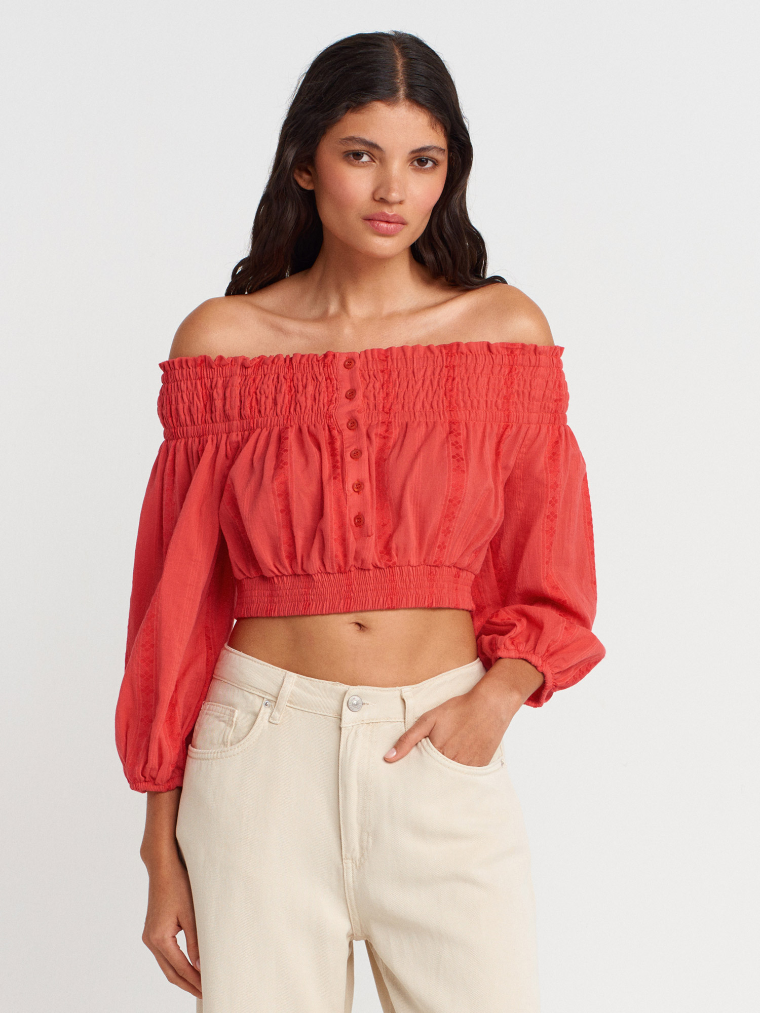 50258 Omuzları Açık Düğmeli Top-A.Kırmızı