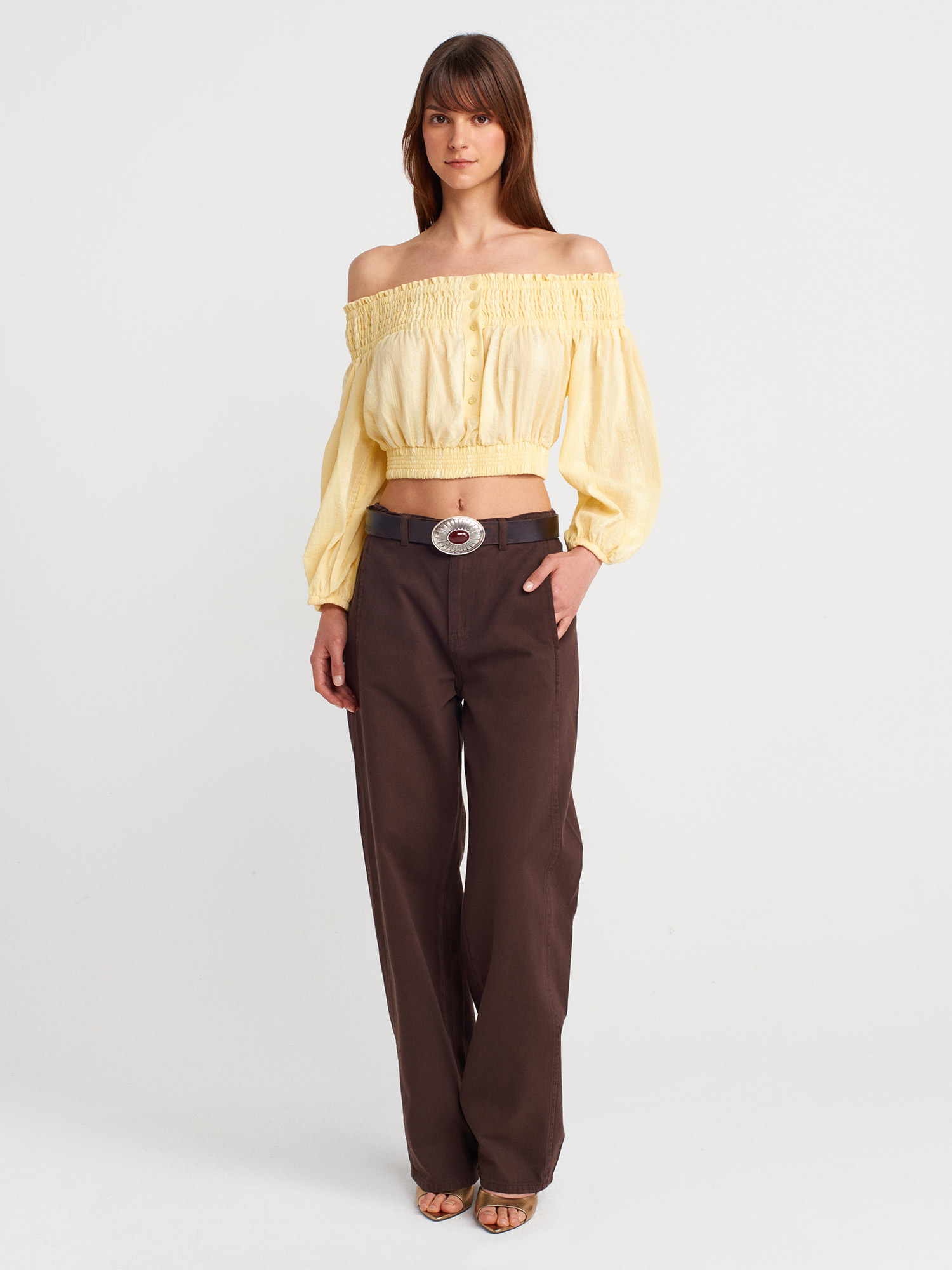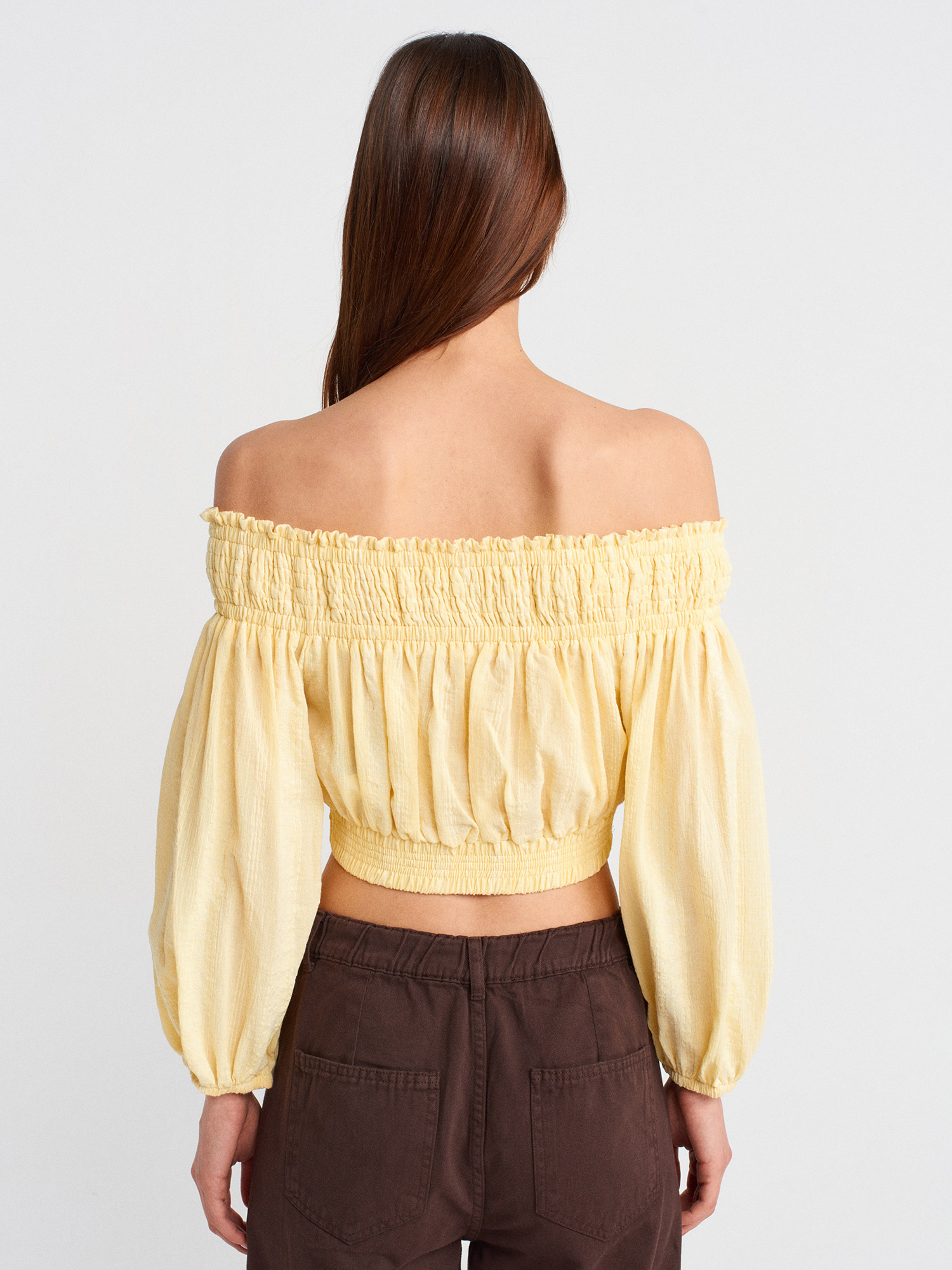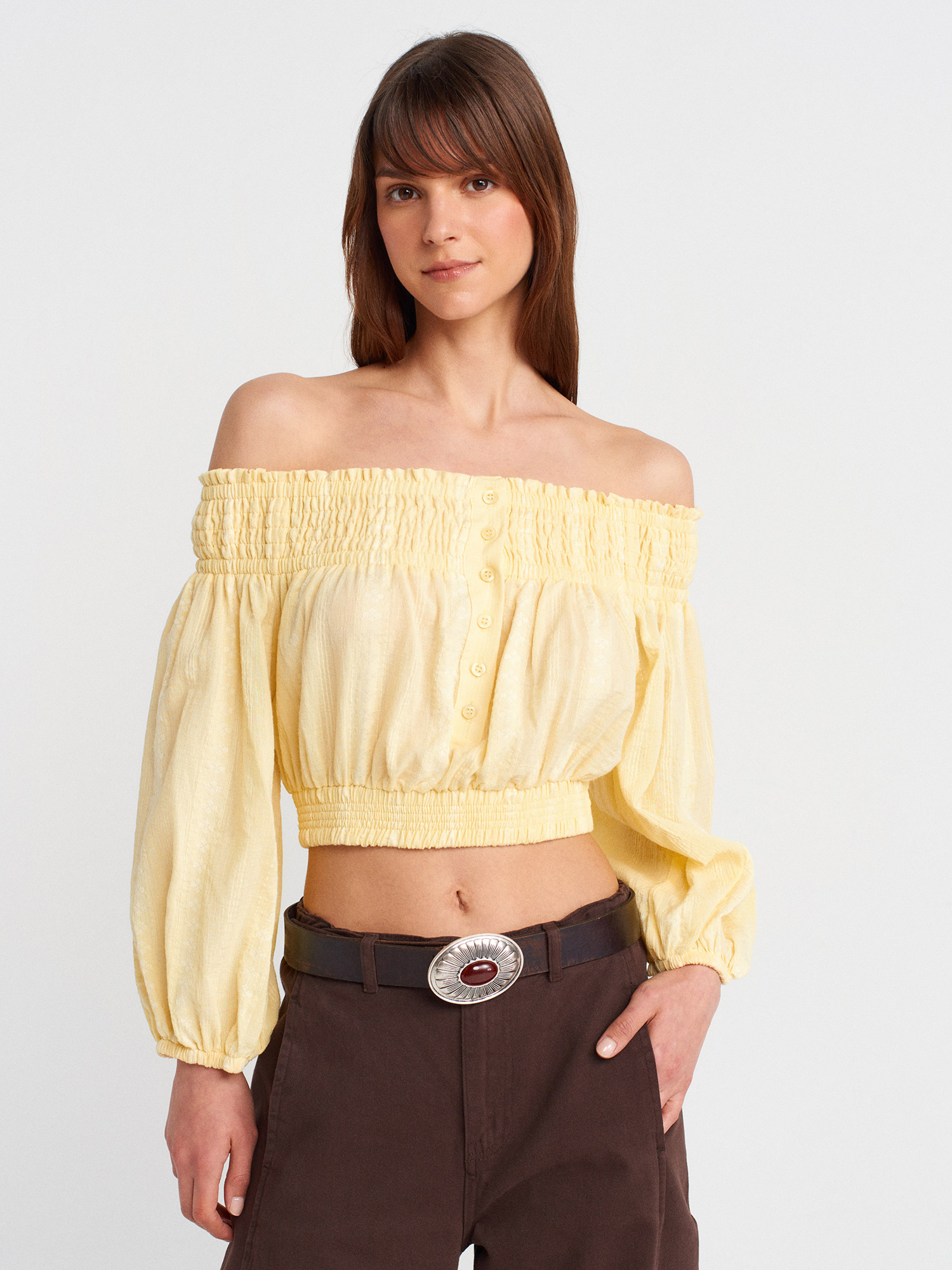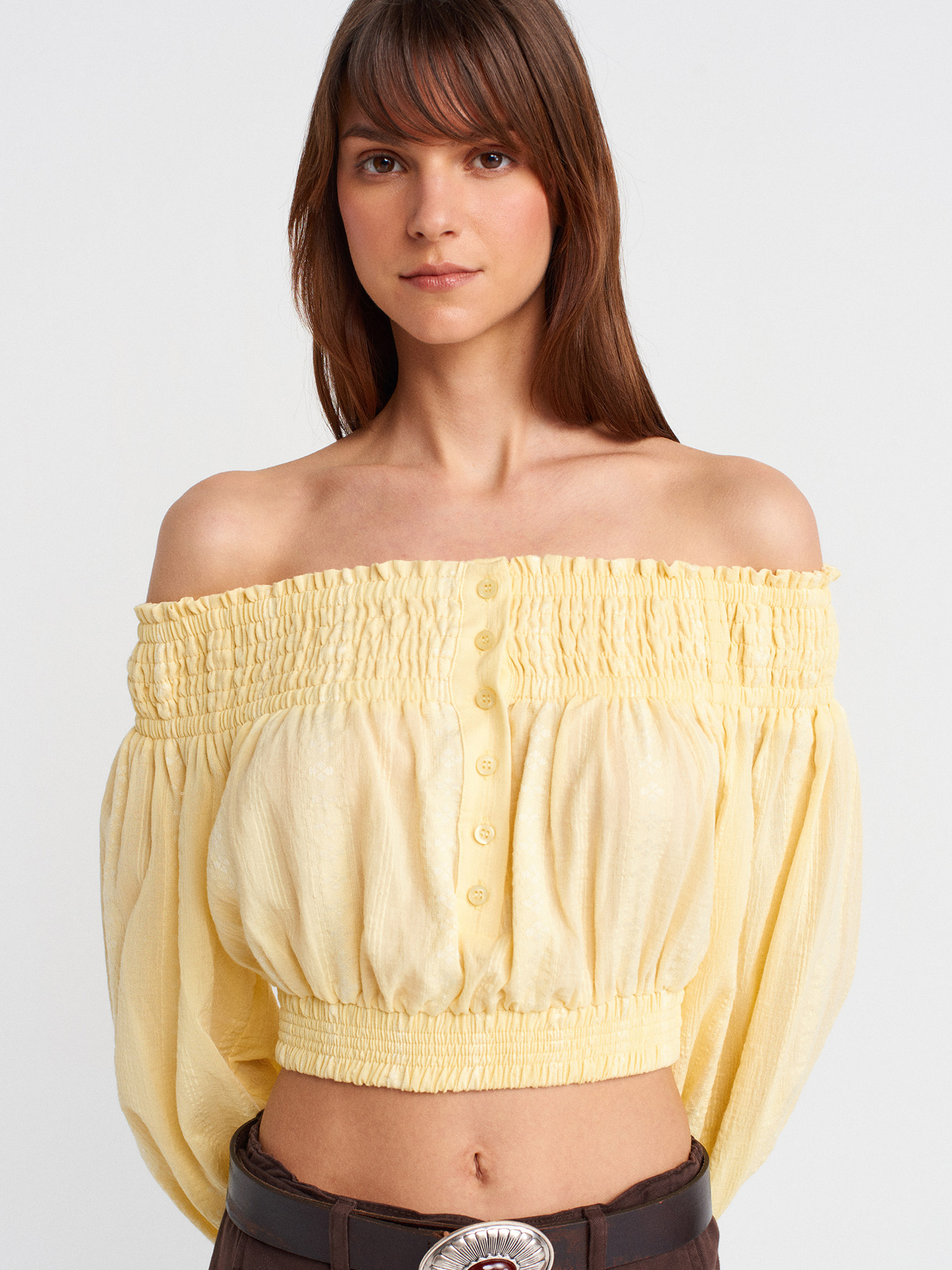 50258 Omuzları Açık Düğmeli Top-Açık Sarı