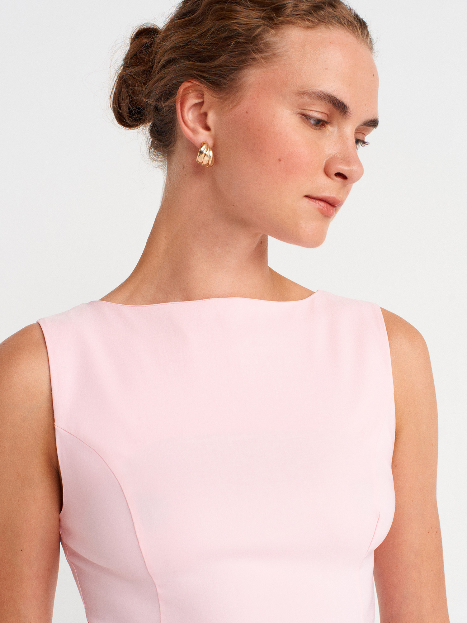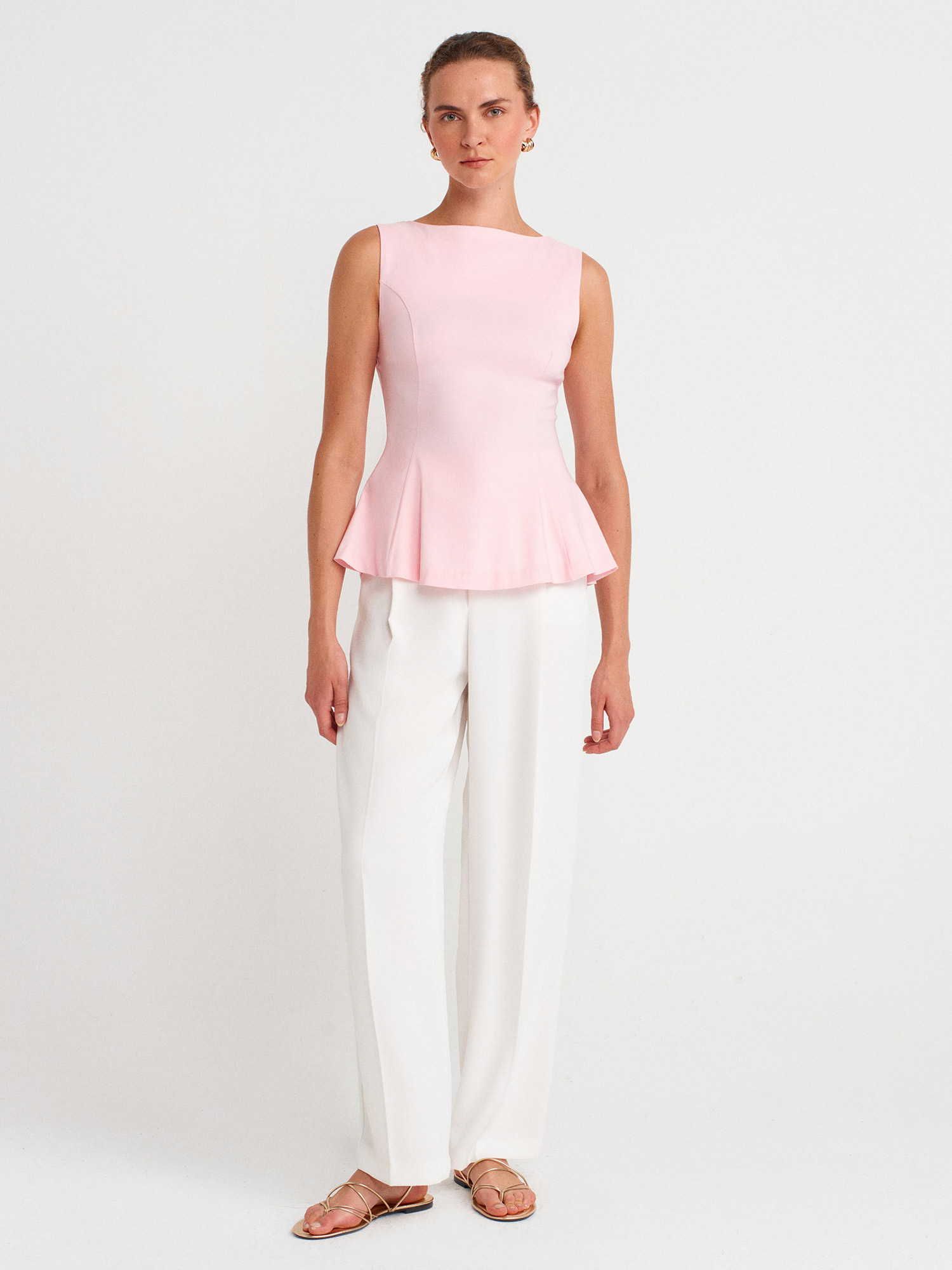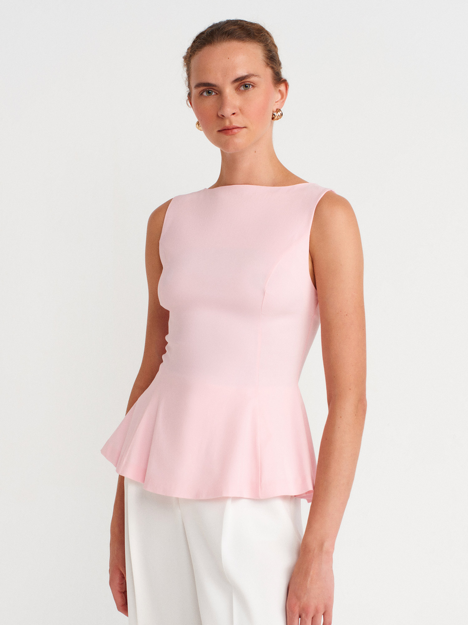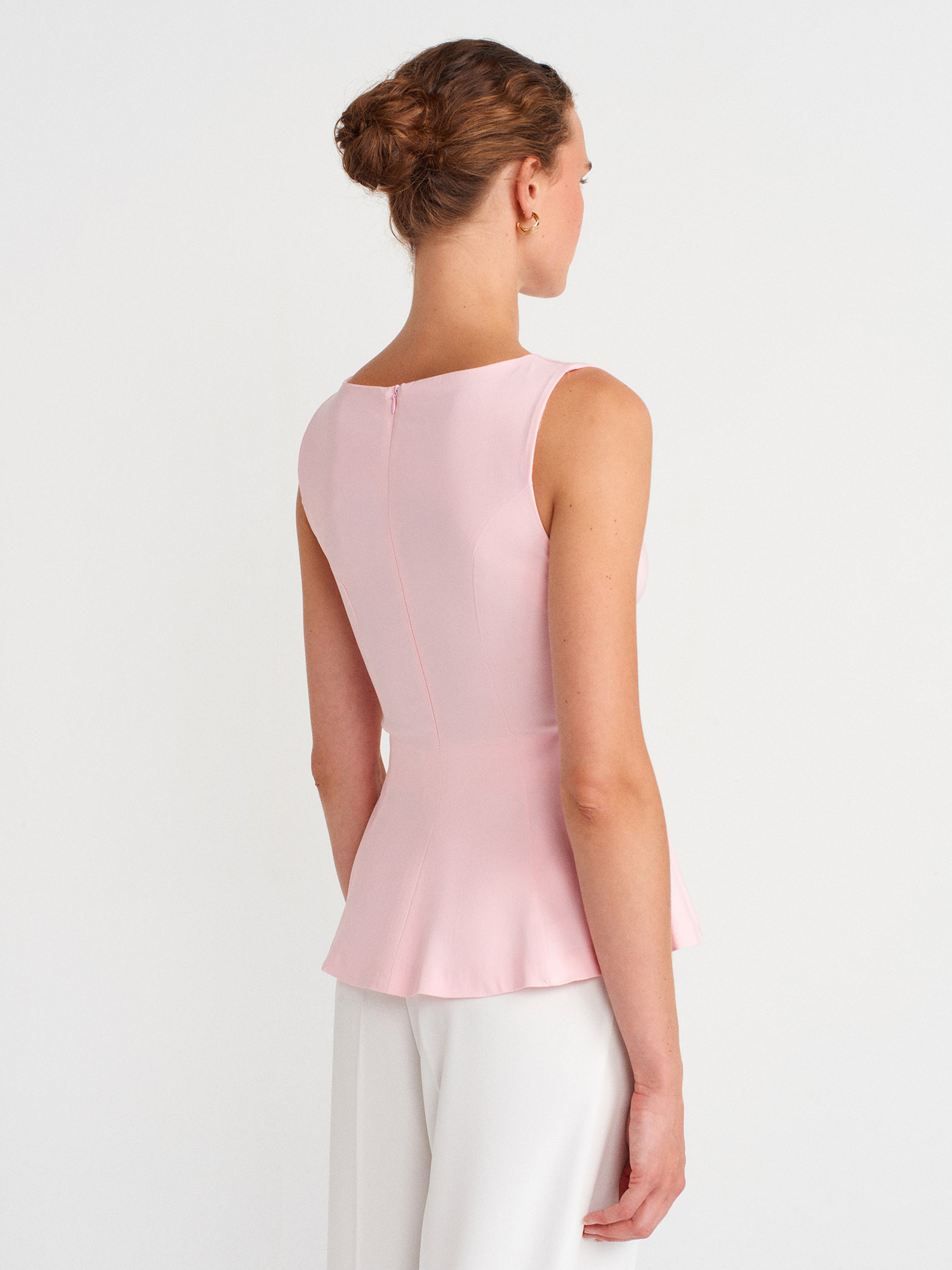 50281 Peplum Top-Toz Pembe