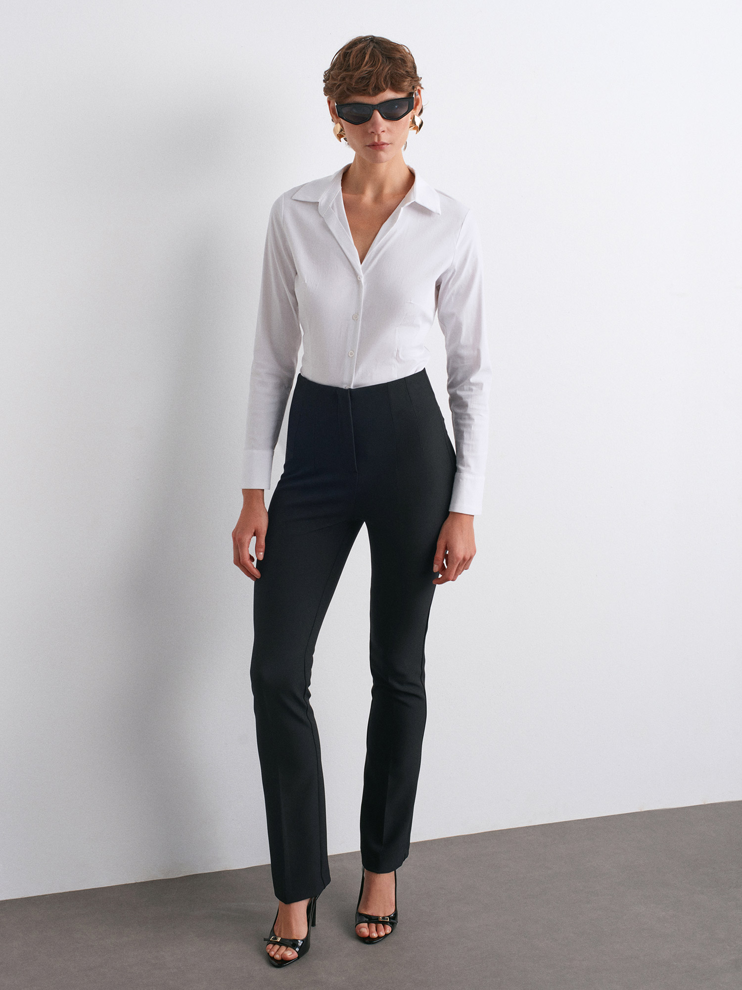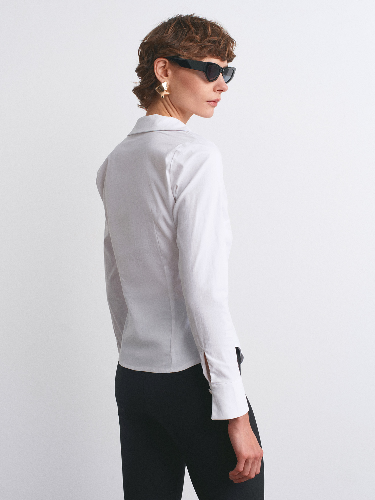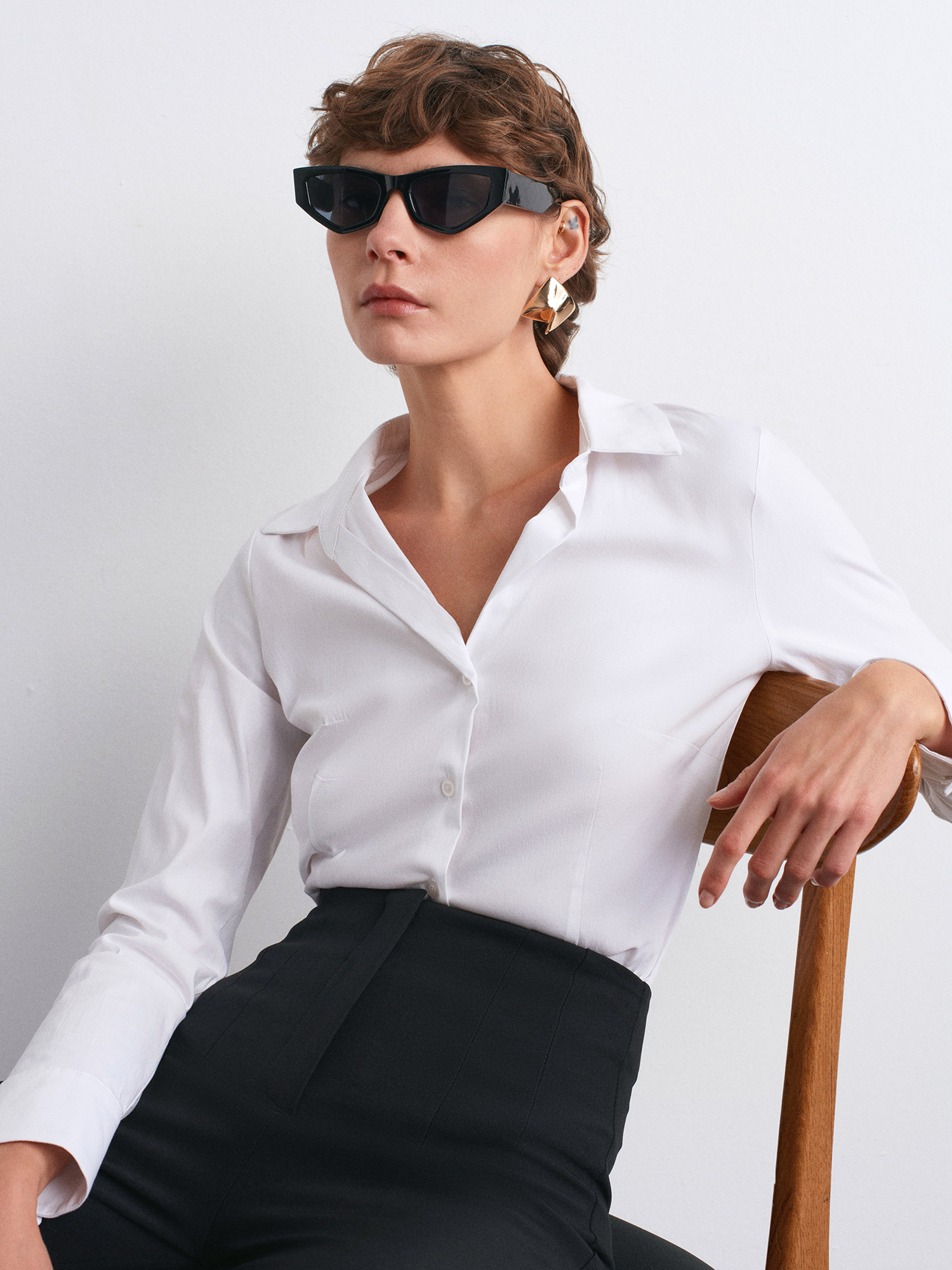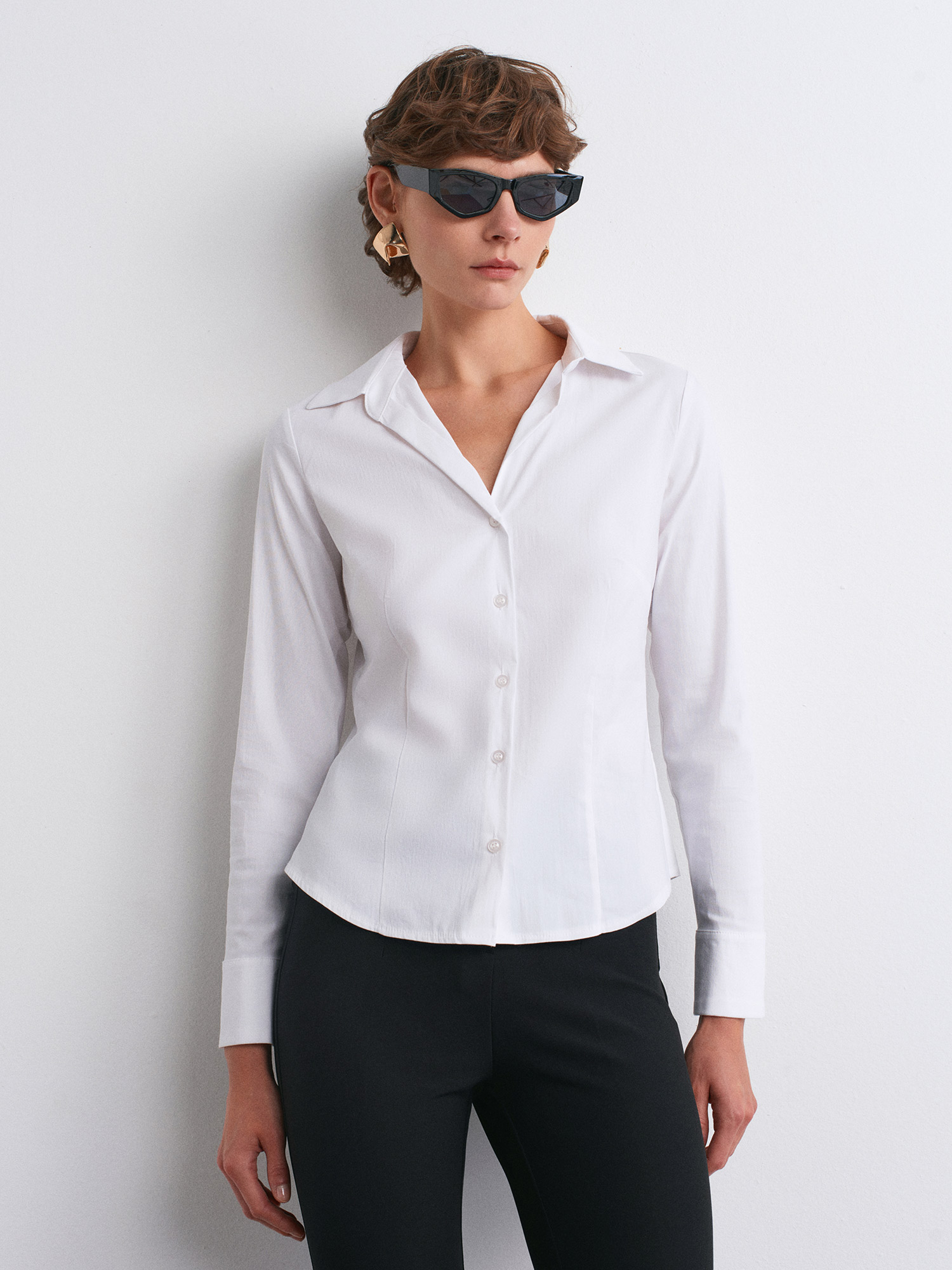 50513 Vücuda Oturan Basic Gömlek-Beyaz