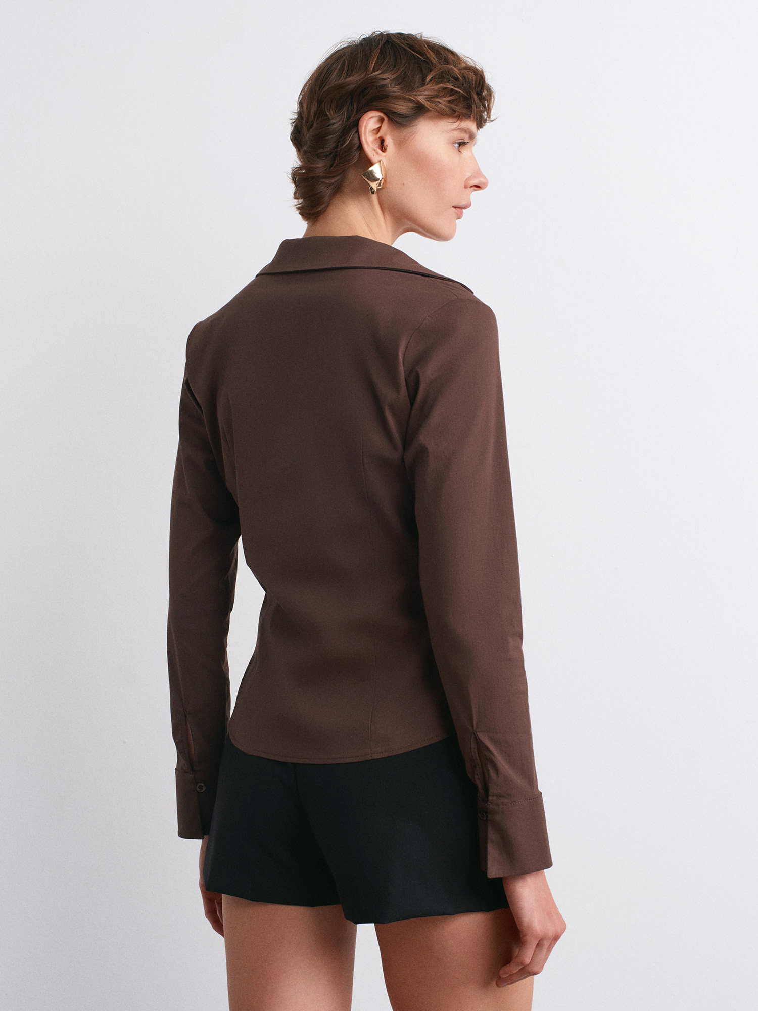 50513 Vücuda Oturan Basic Gömlek-Kahve