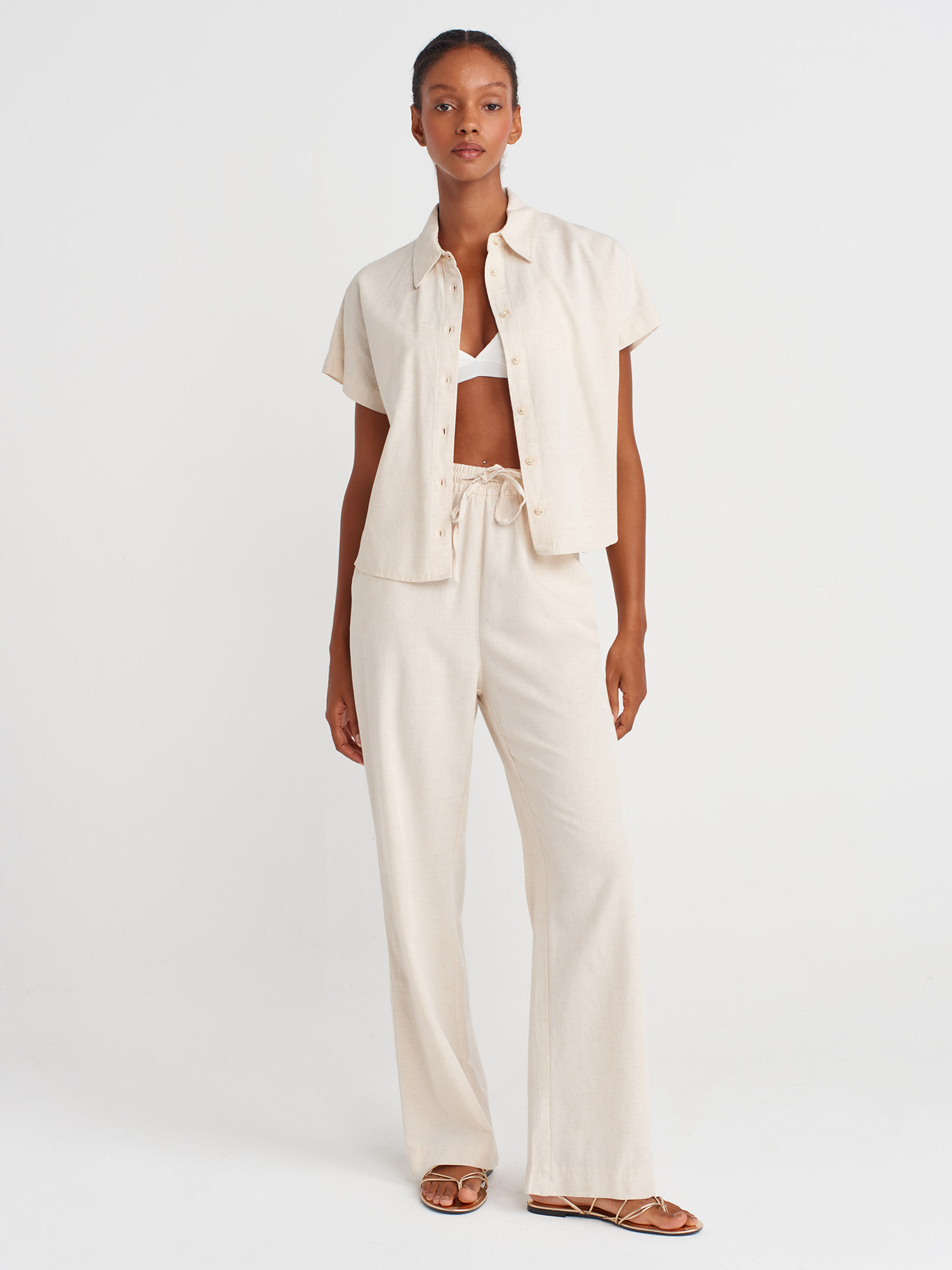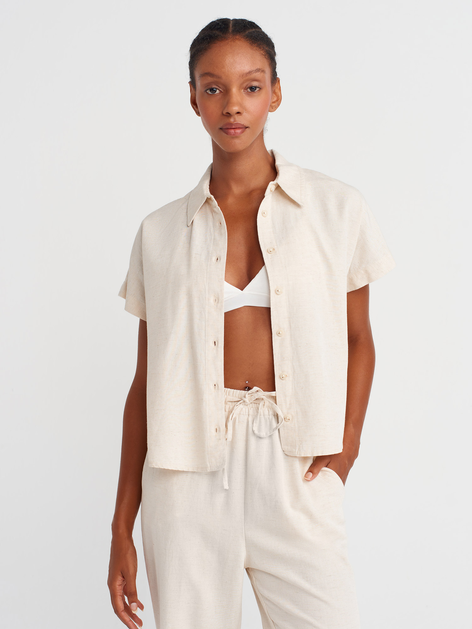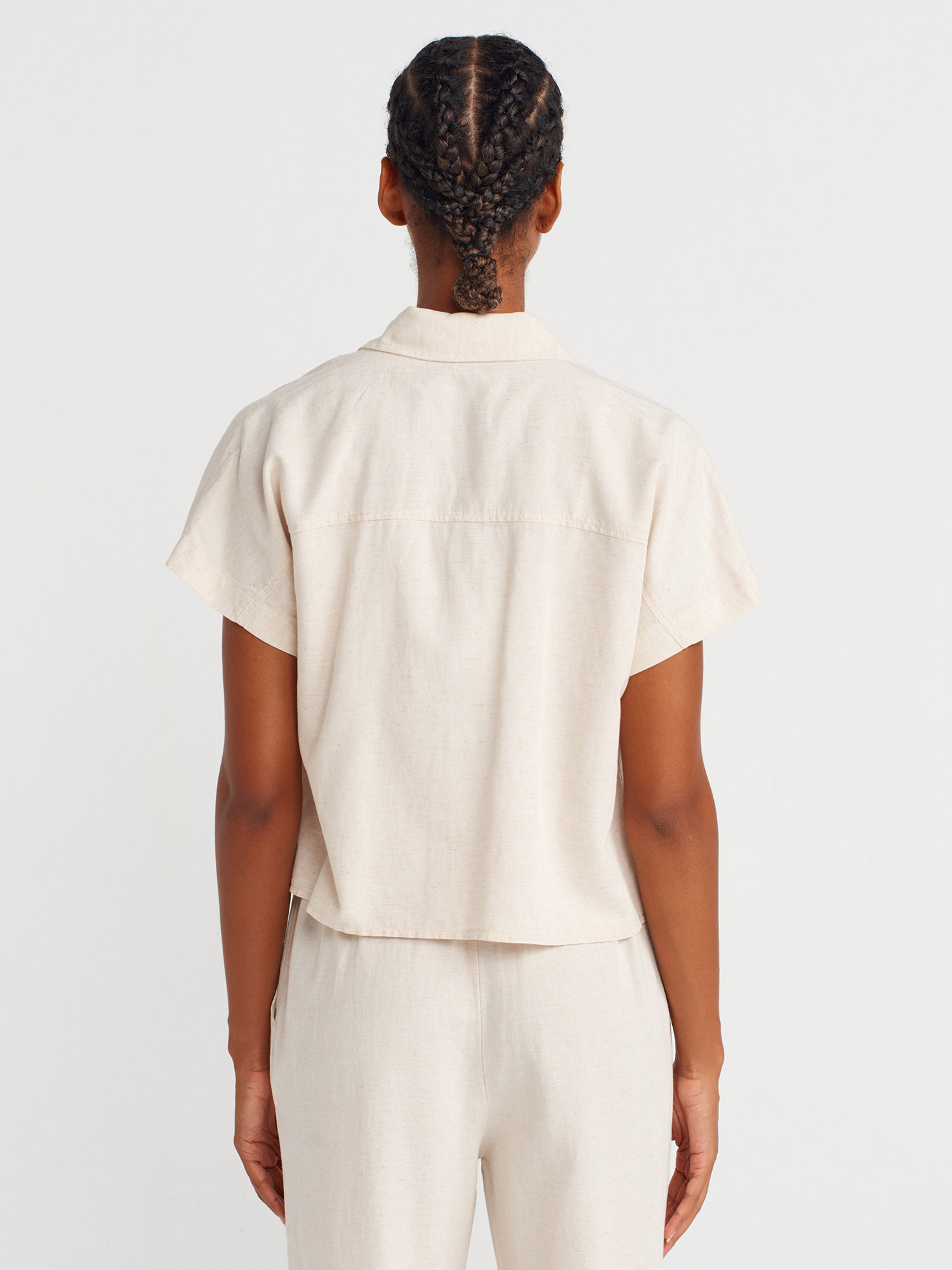 50514 Keten Karışımlı Oversize Gömlek-Ekru
