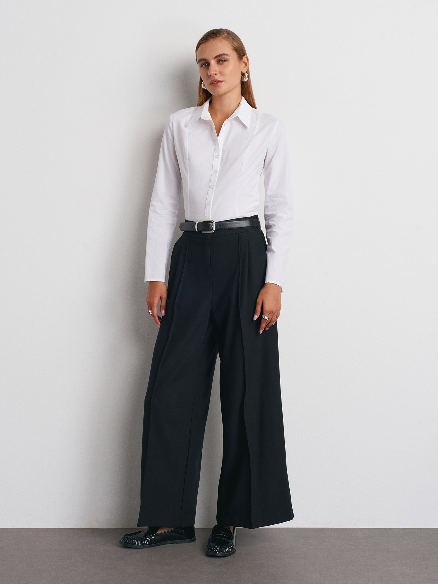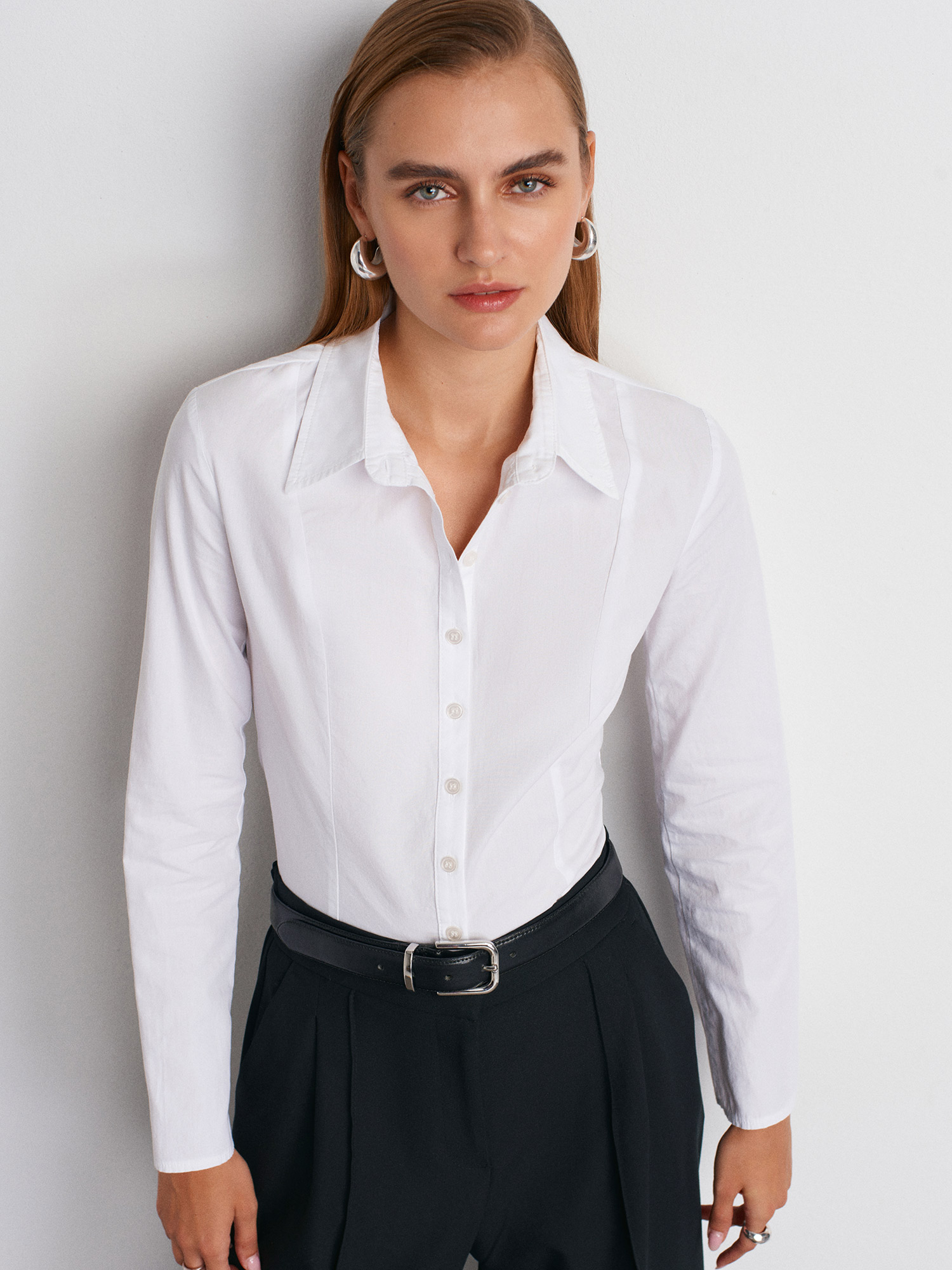 50517 Çan Kollu Vücuda Oturan Gömlek-Beyaz