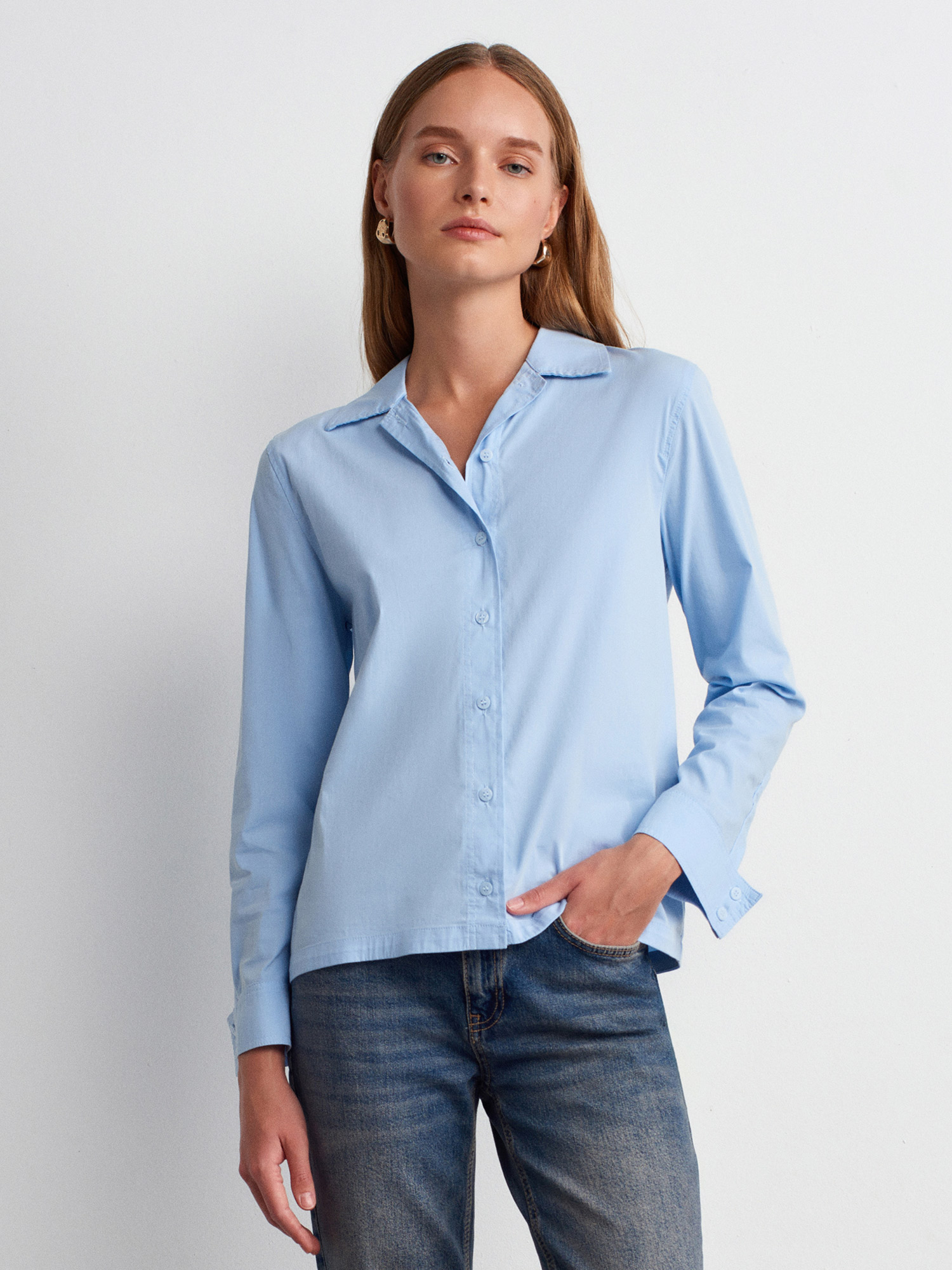50523 Sırt Dekolteli Gömlek-Mavi