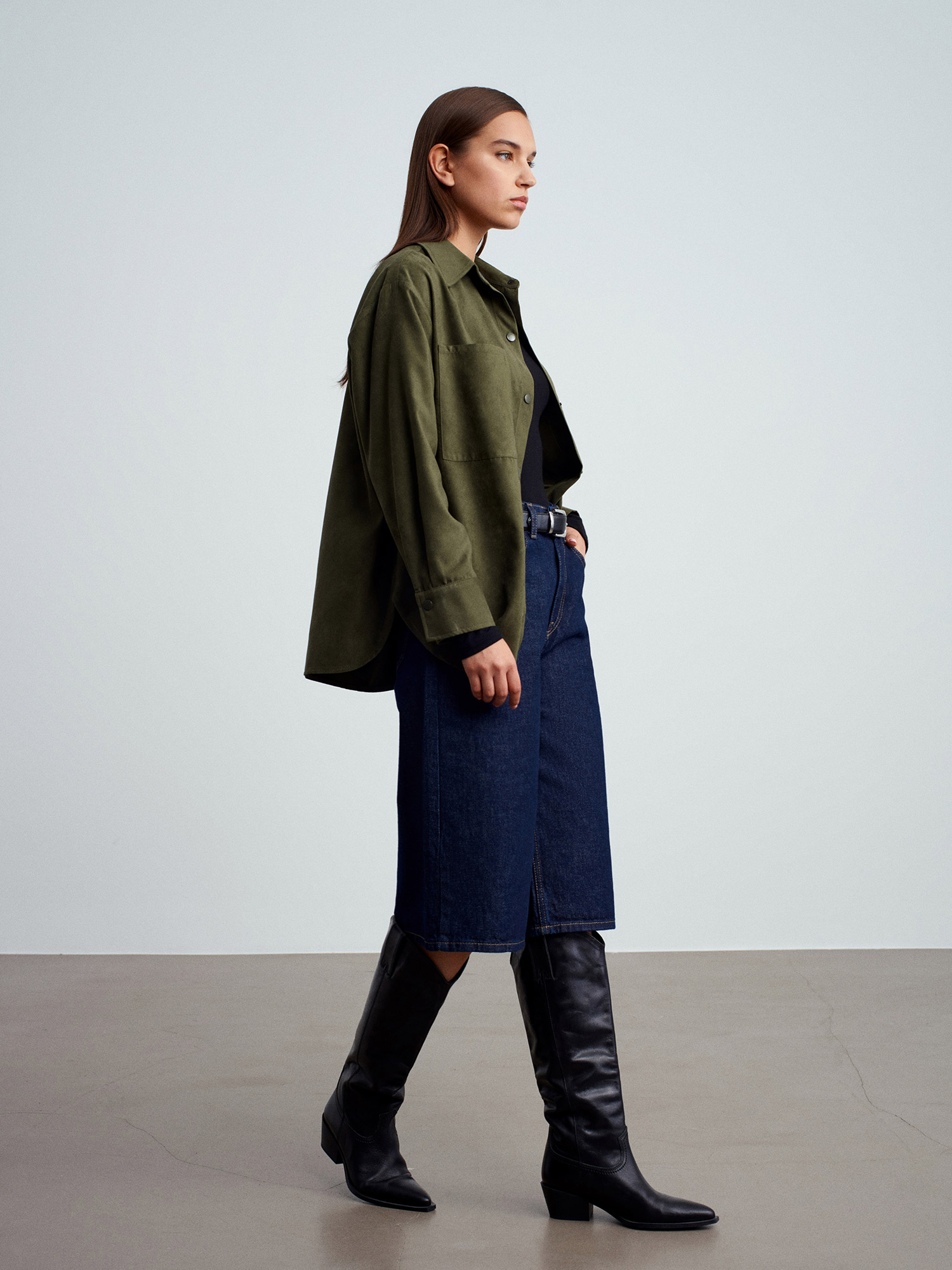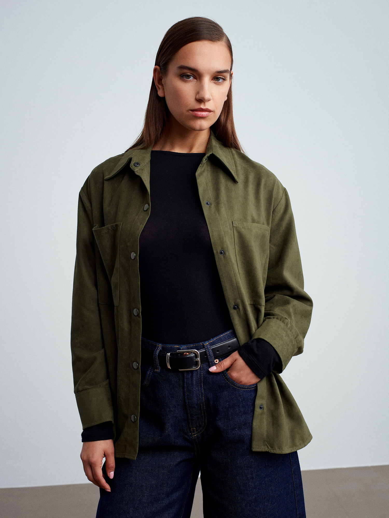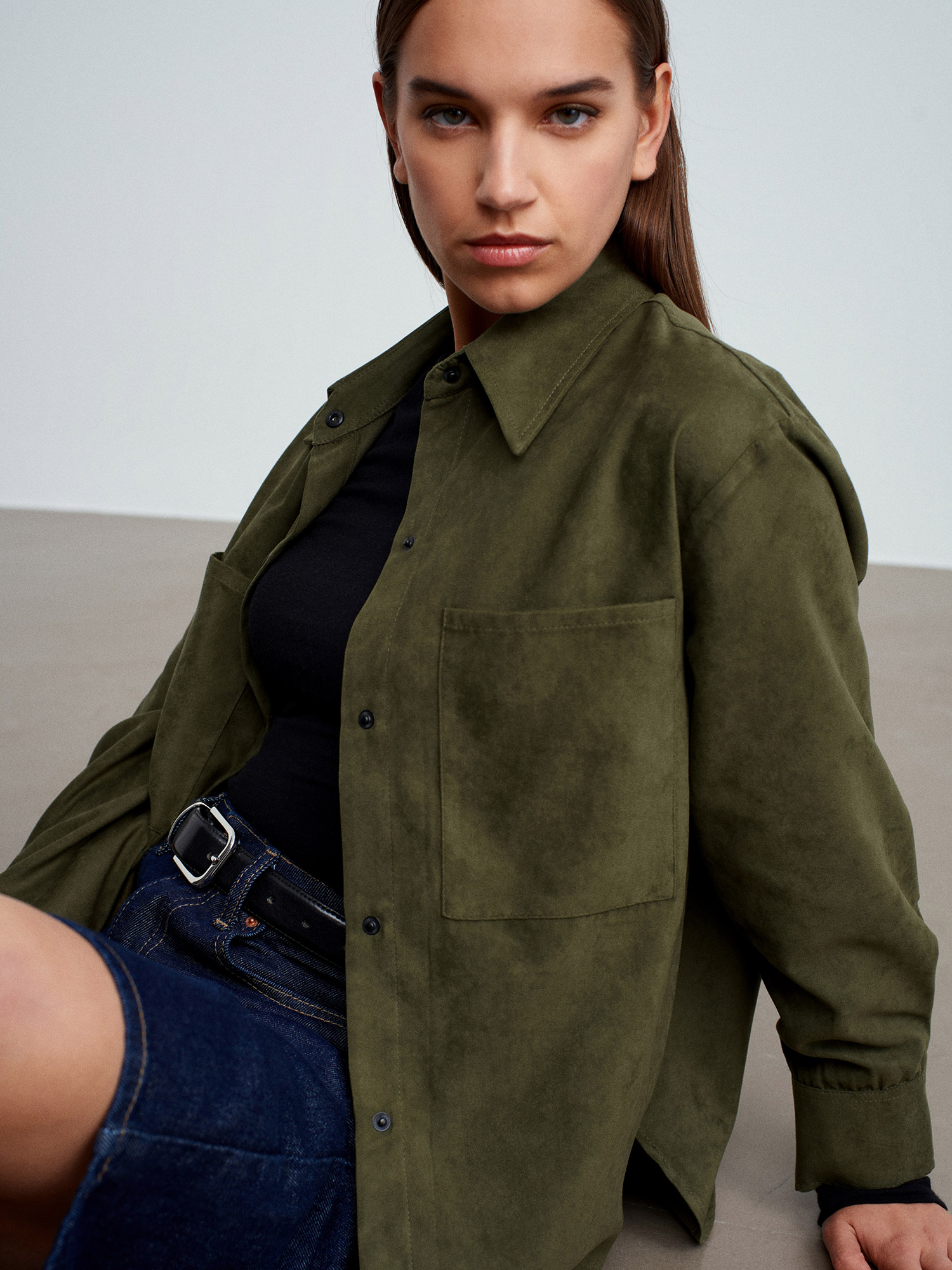 50532 Çıtçıtlı Süet Gömlek-Çağla