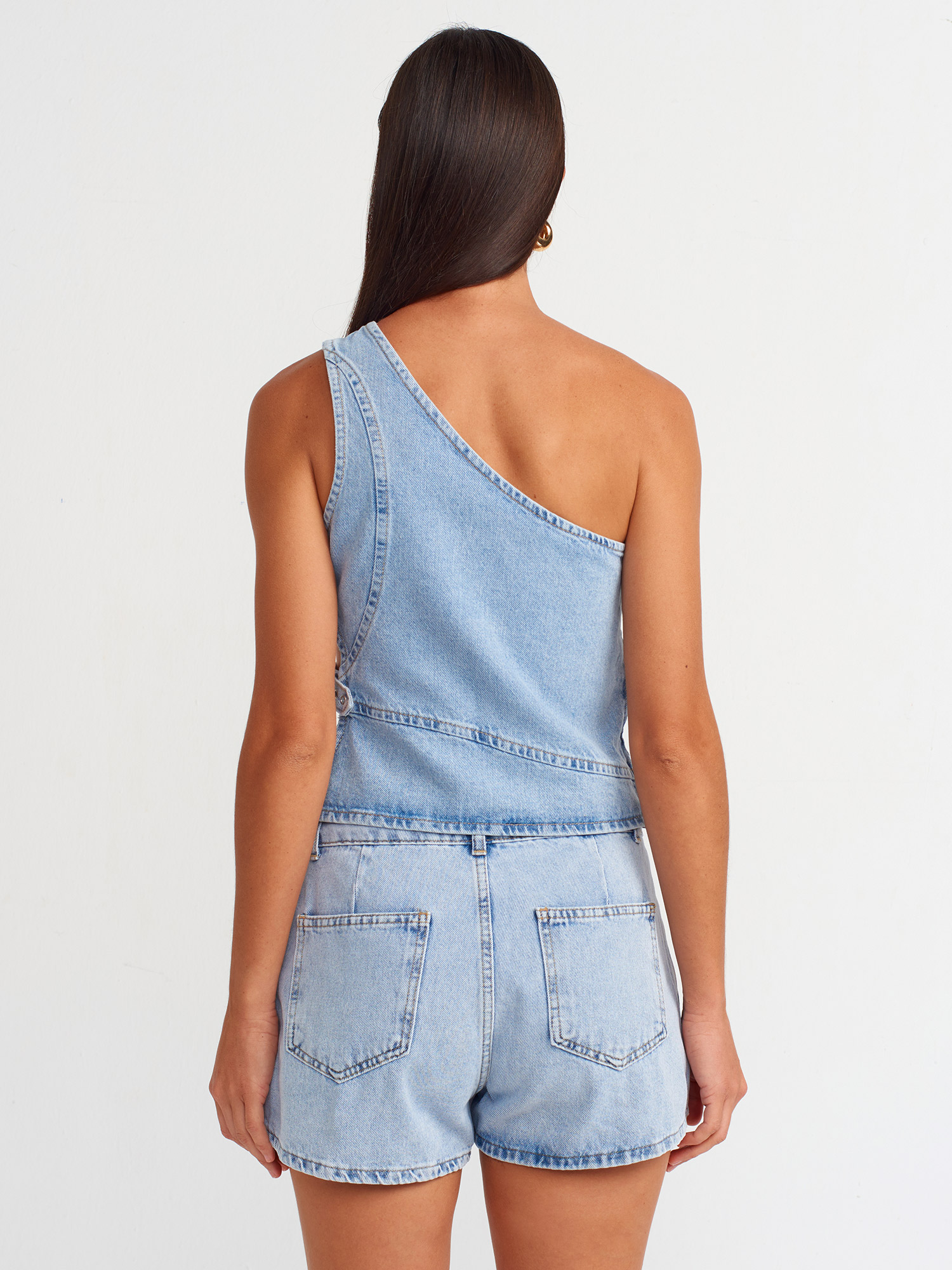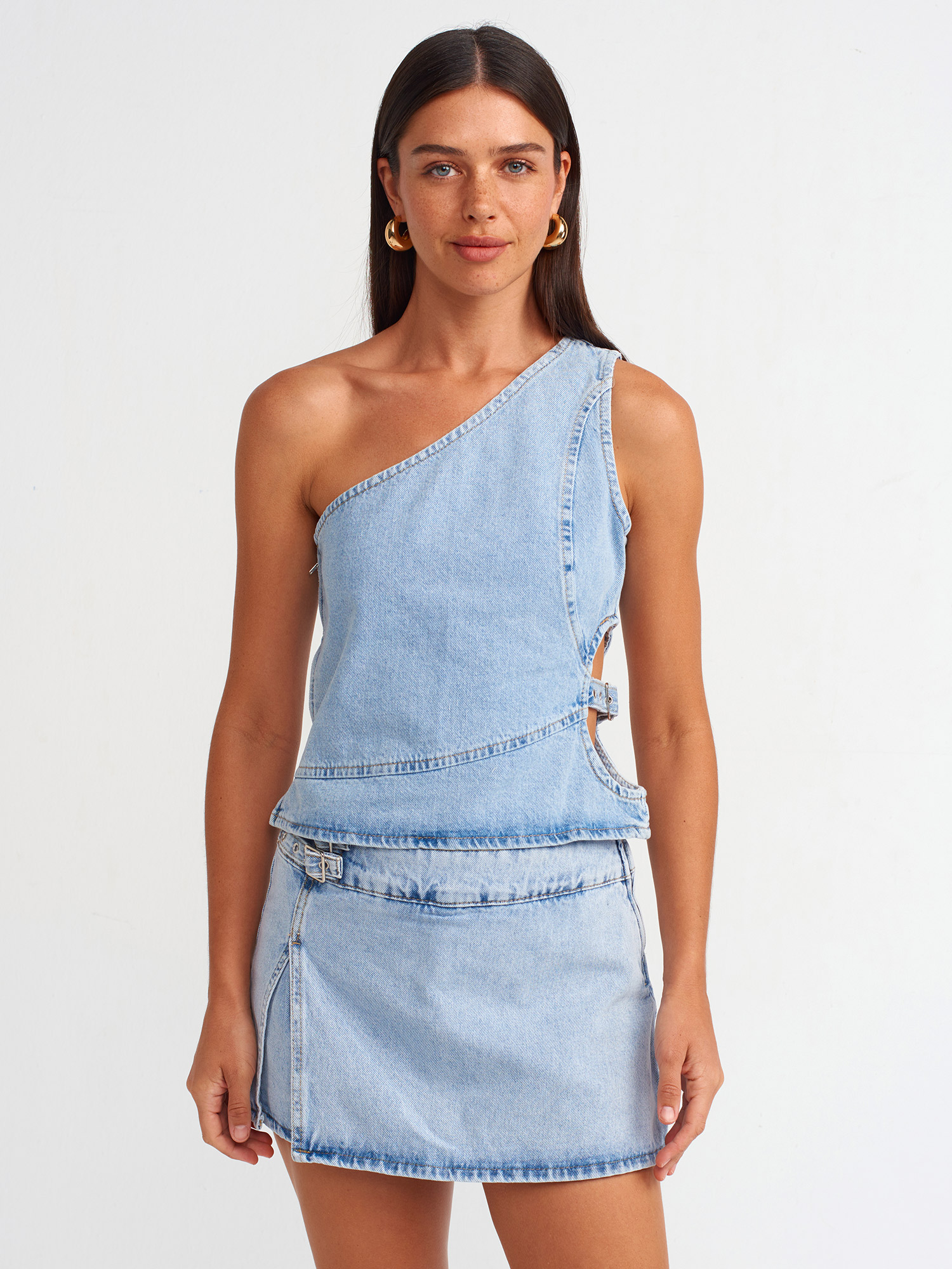 50736 Pencere Detaylı Denim Bluz-Mavi