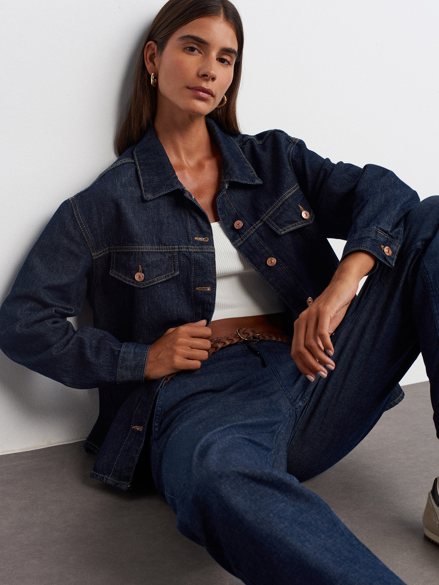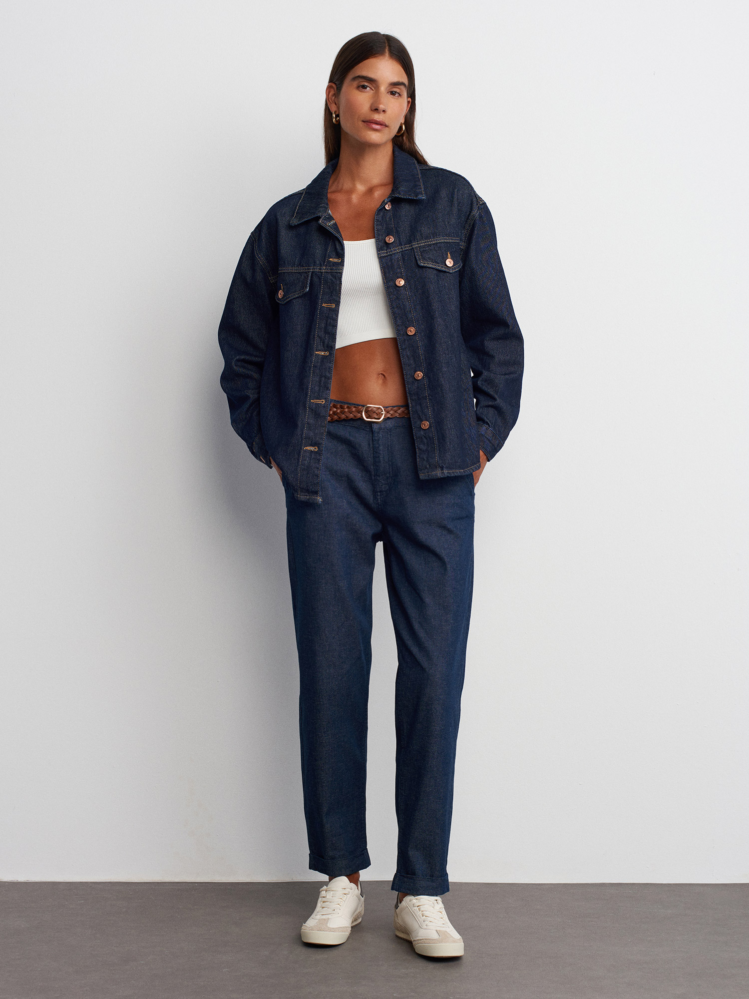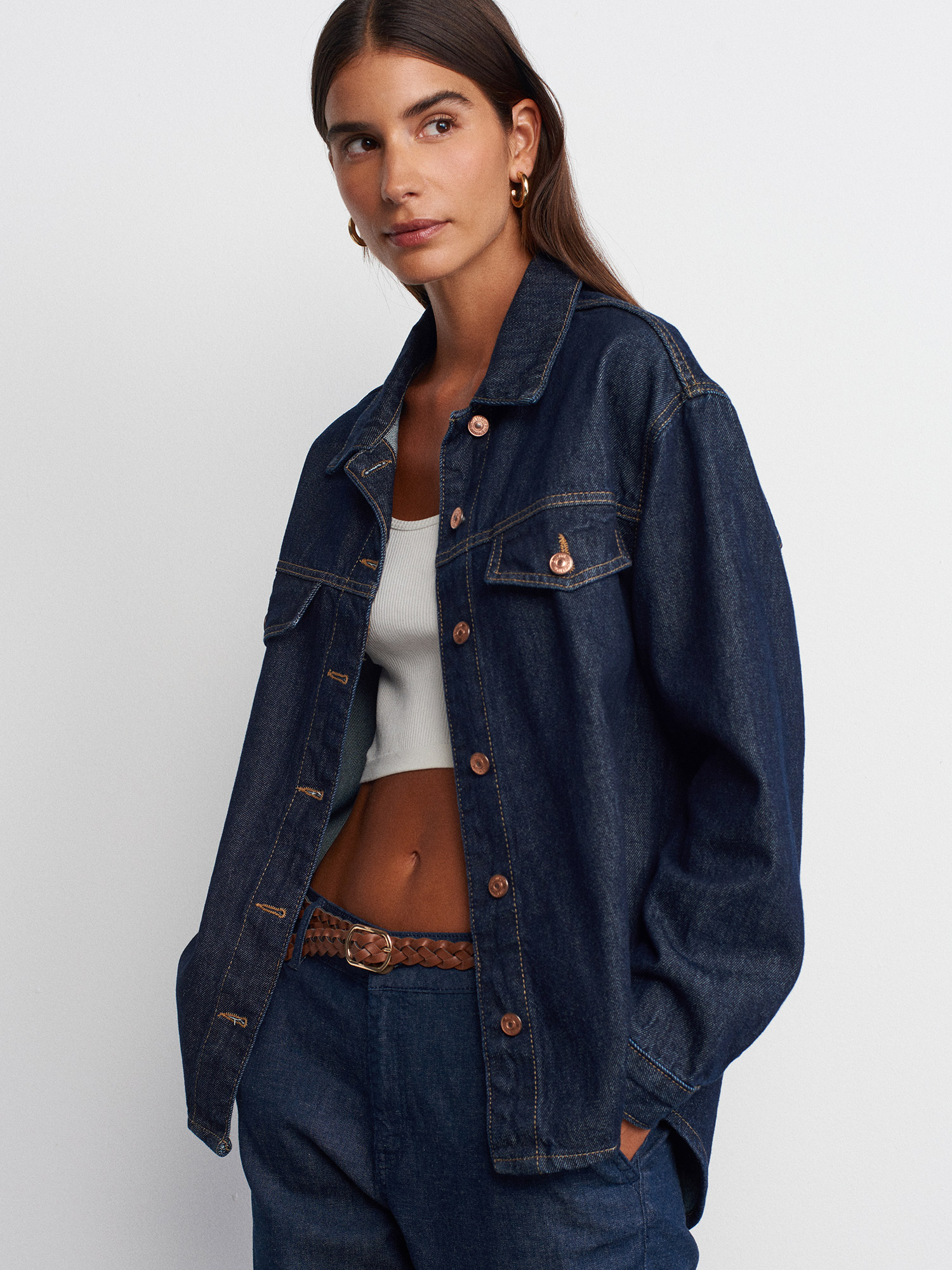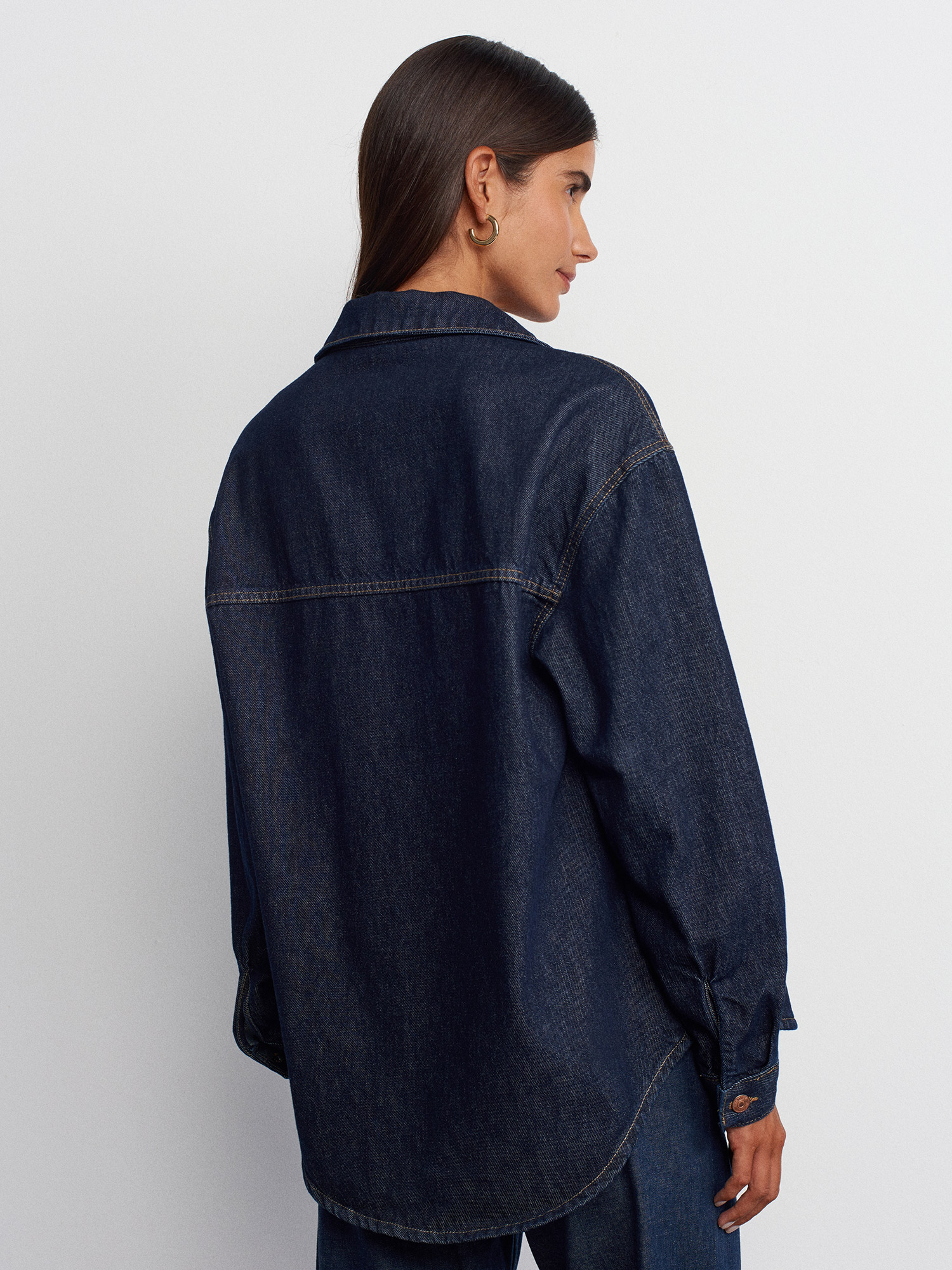 50738 Rins Yıkama Oversize Denim Gömlek-Lacivert