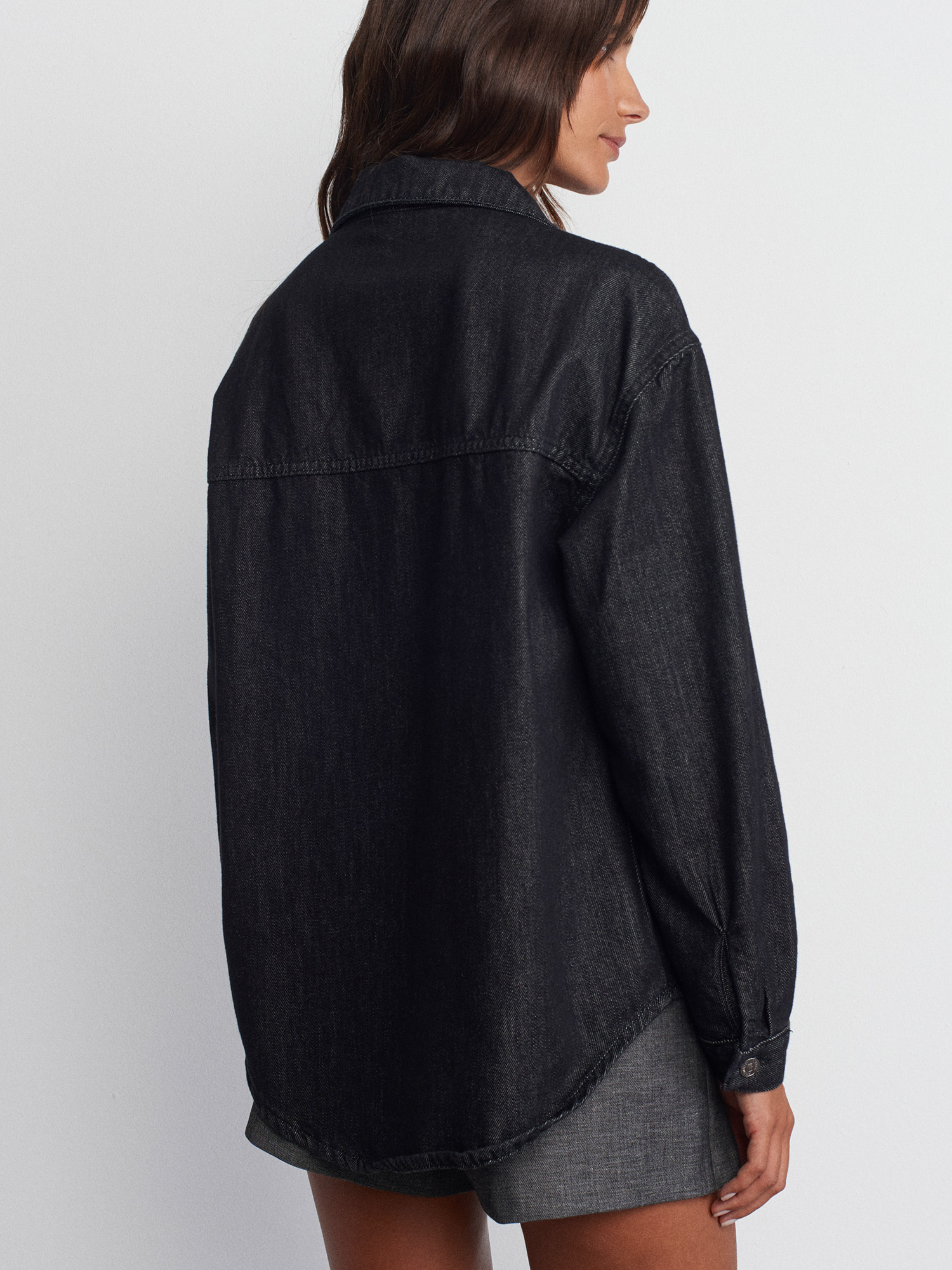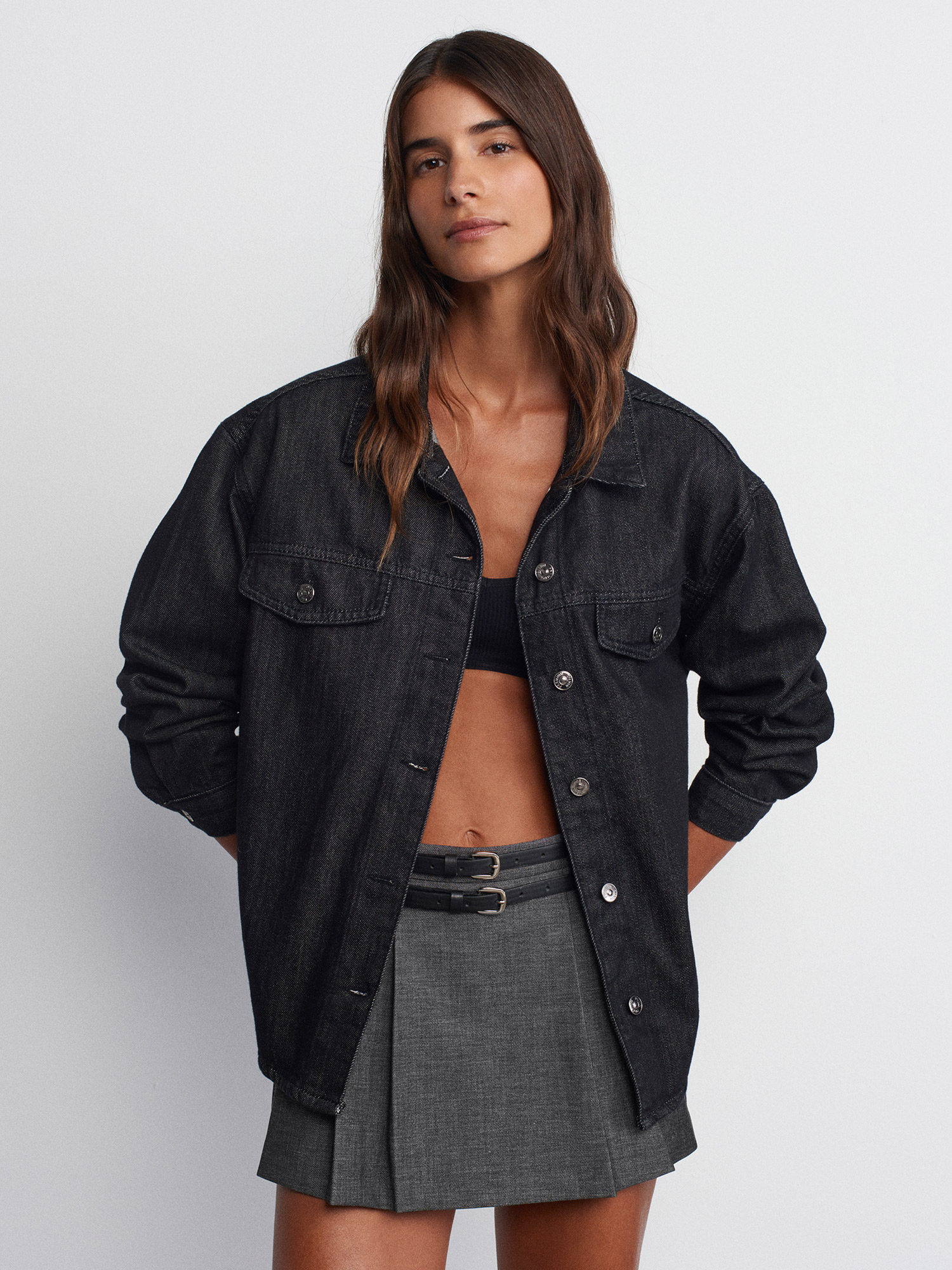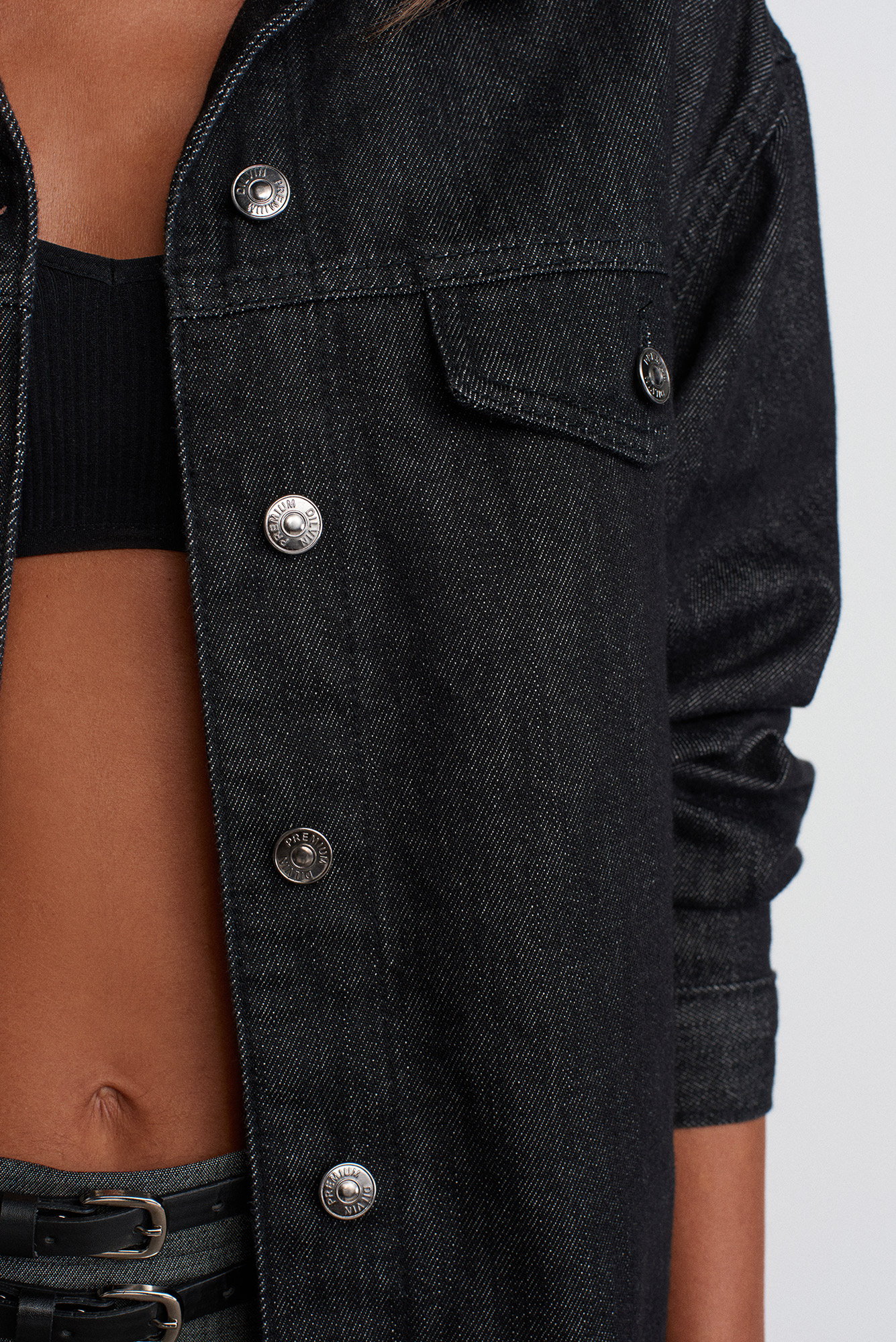 50738 Rins Yıkama Oversize Denim Gömlek-Siyah
