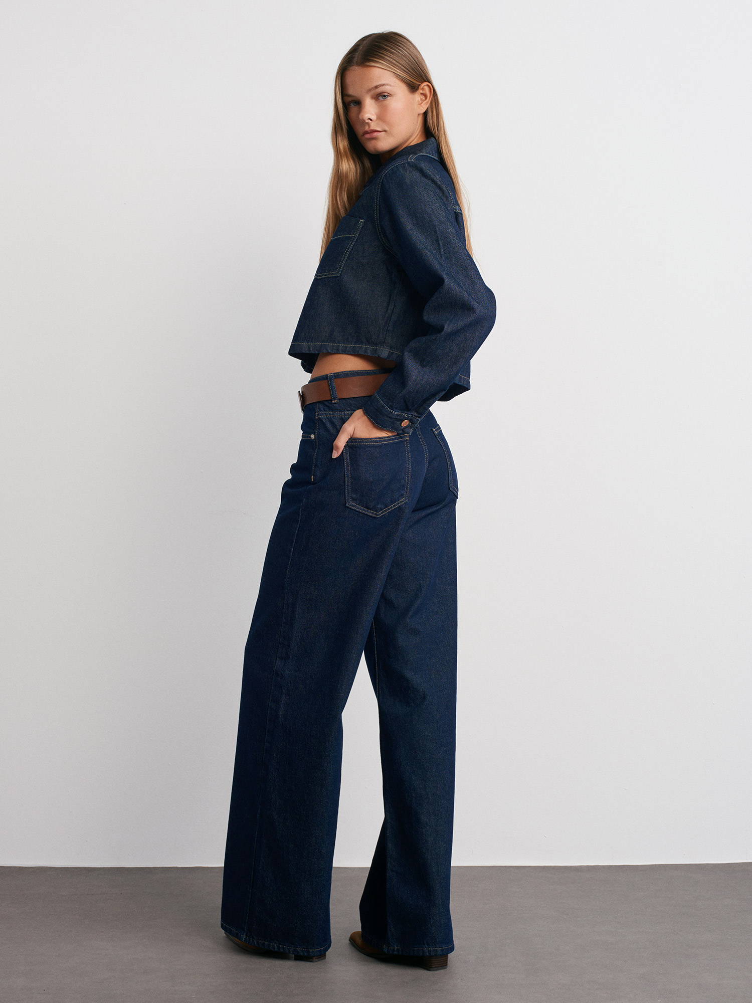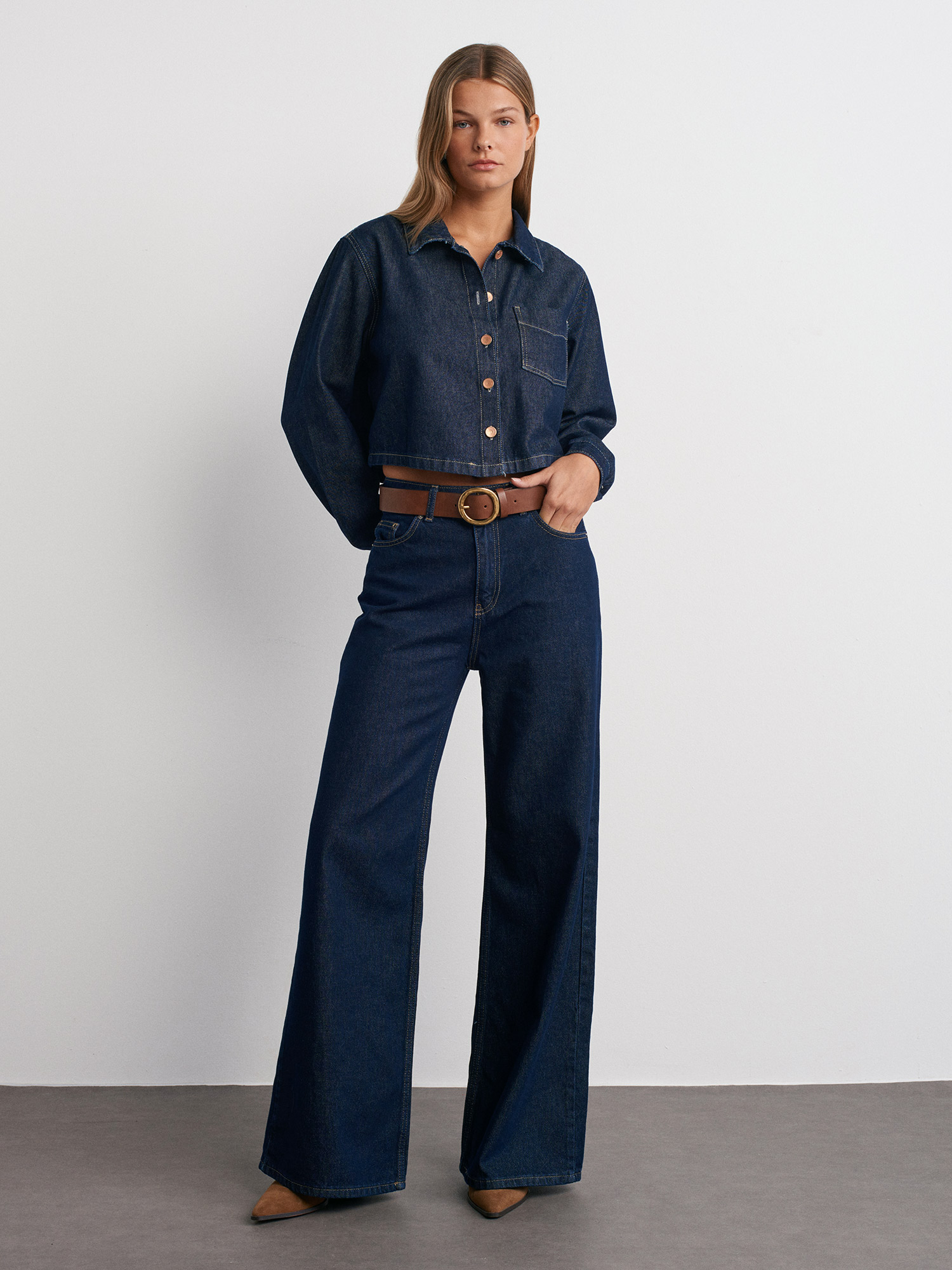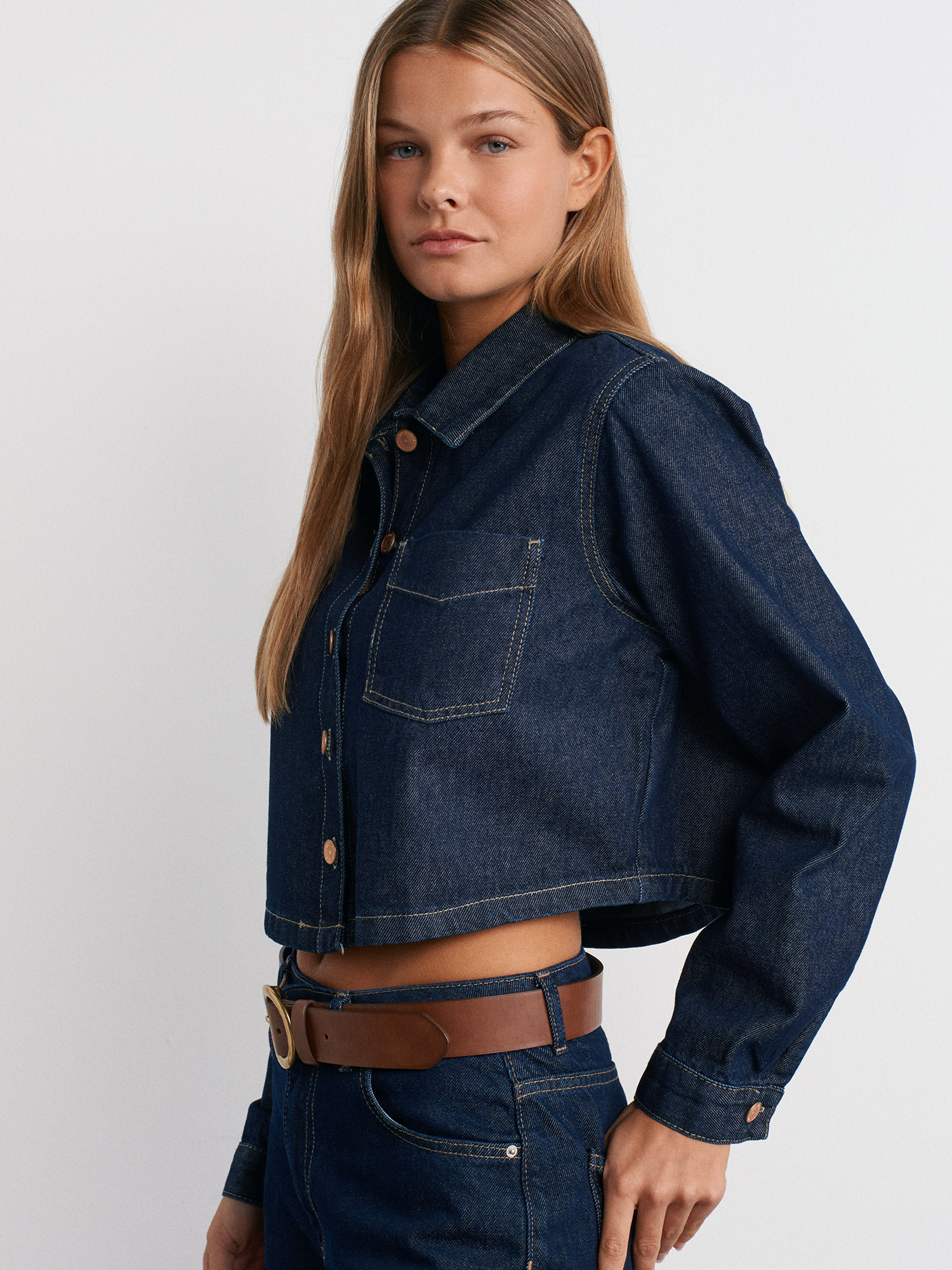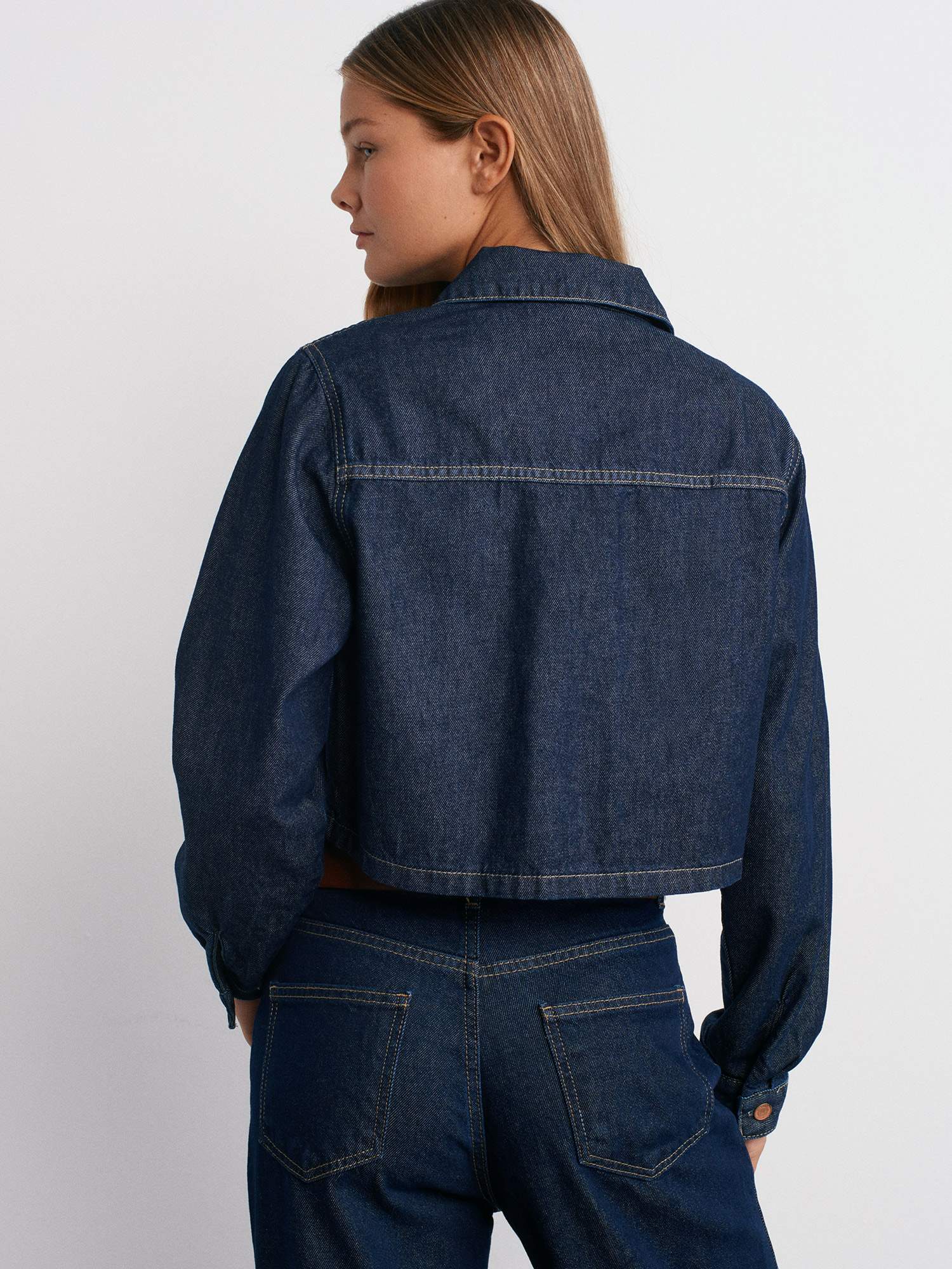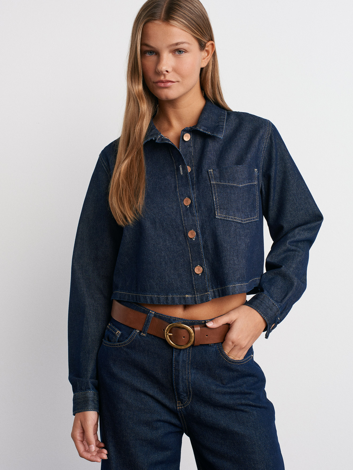 50740 Rins Yıkama Crop Denim Gömlek-Lacivert
