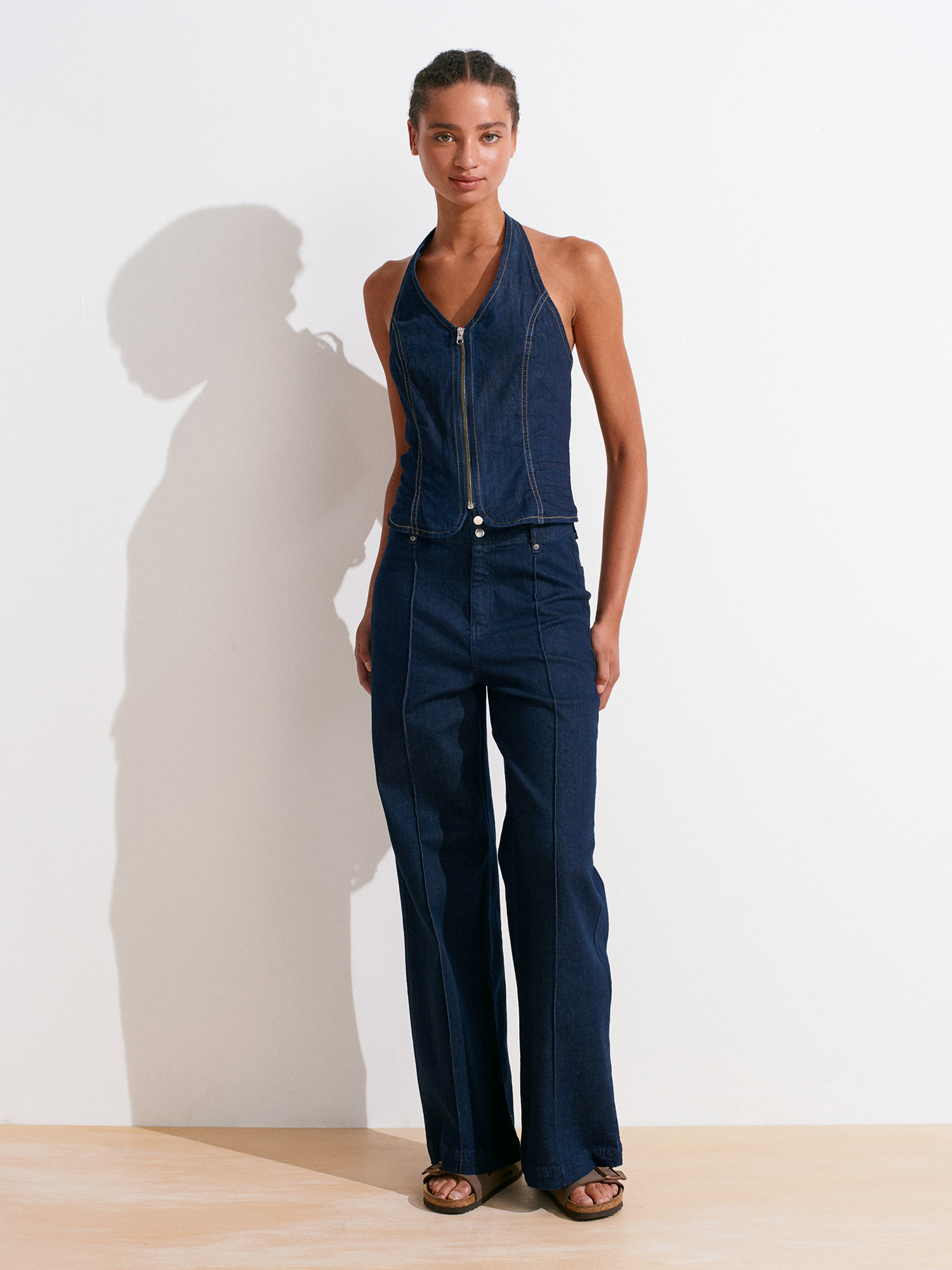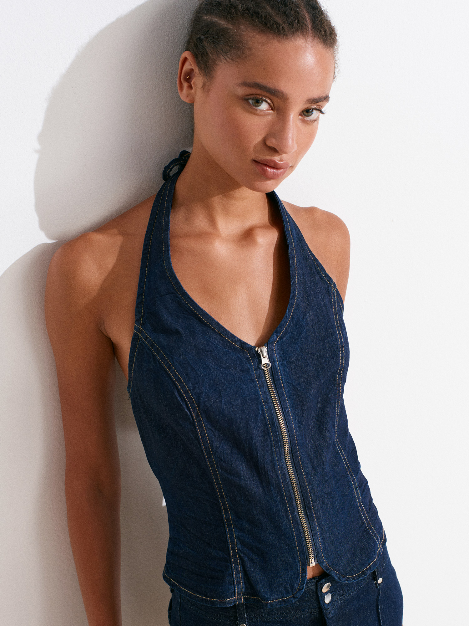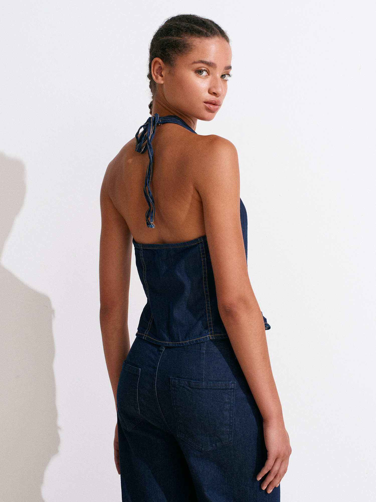 50755 Önü Fermuarlı Denim Büstiyer-Lacivert