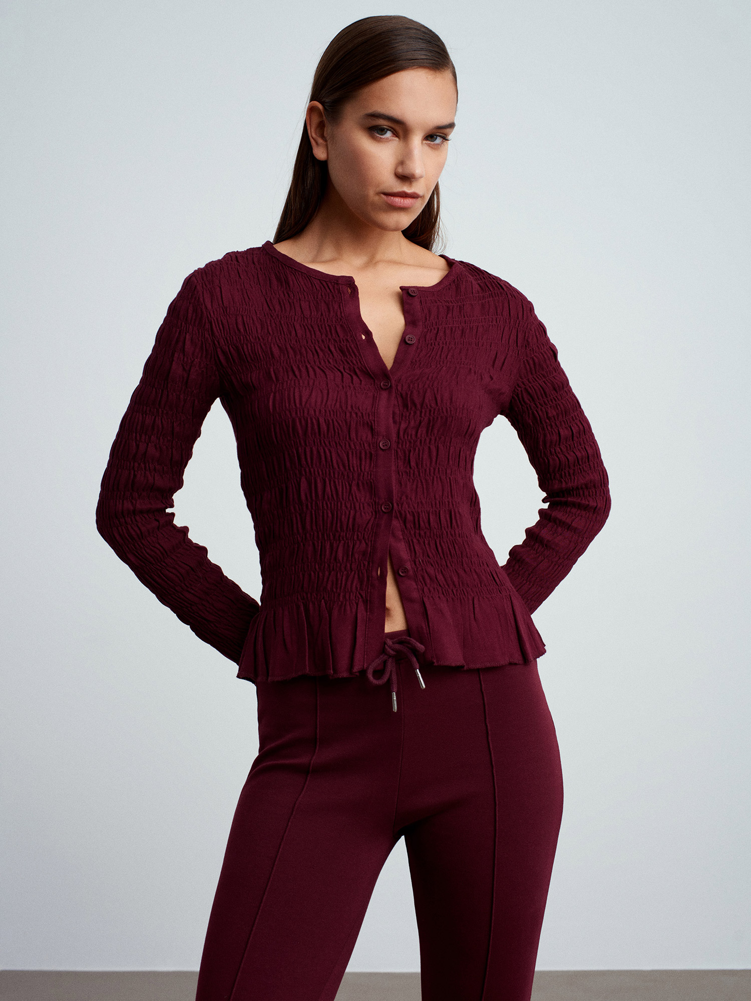 50926 Düğmeli Gipeli Top-Bordo