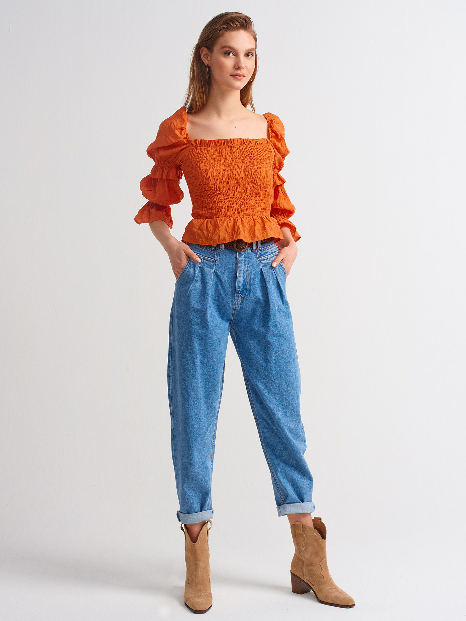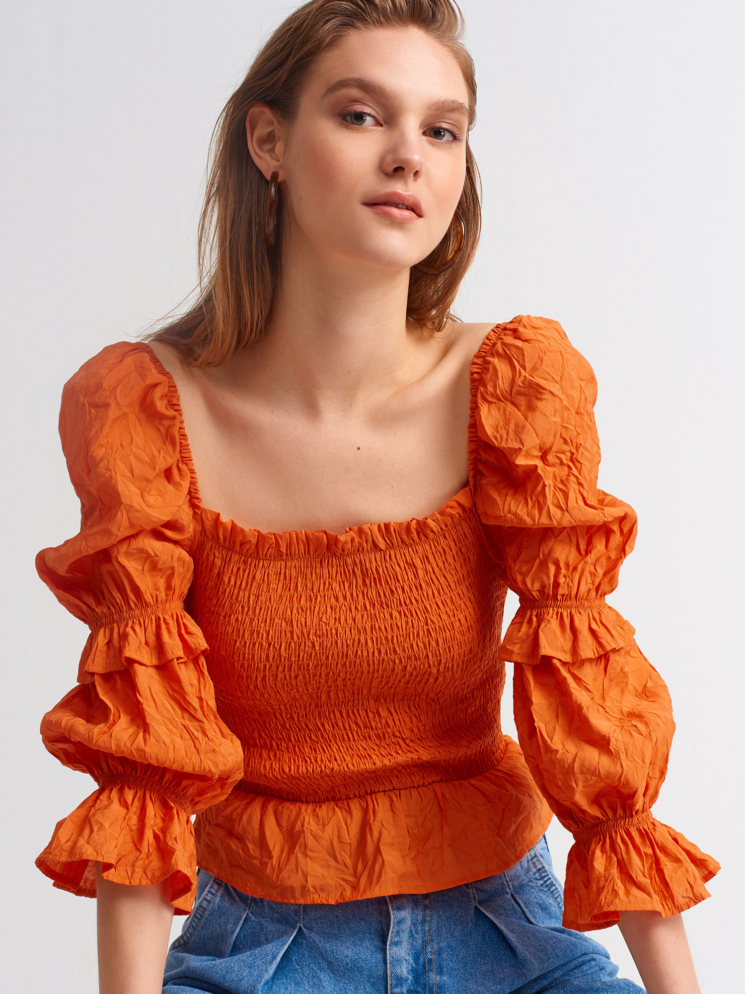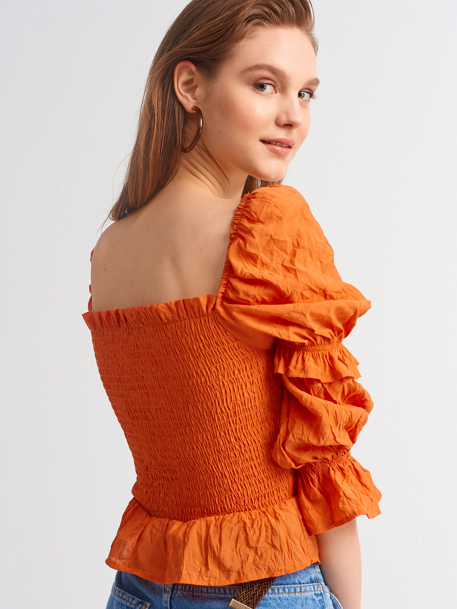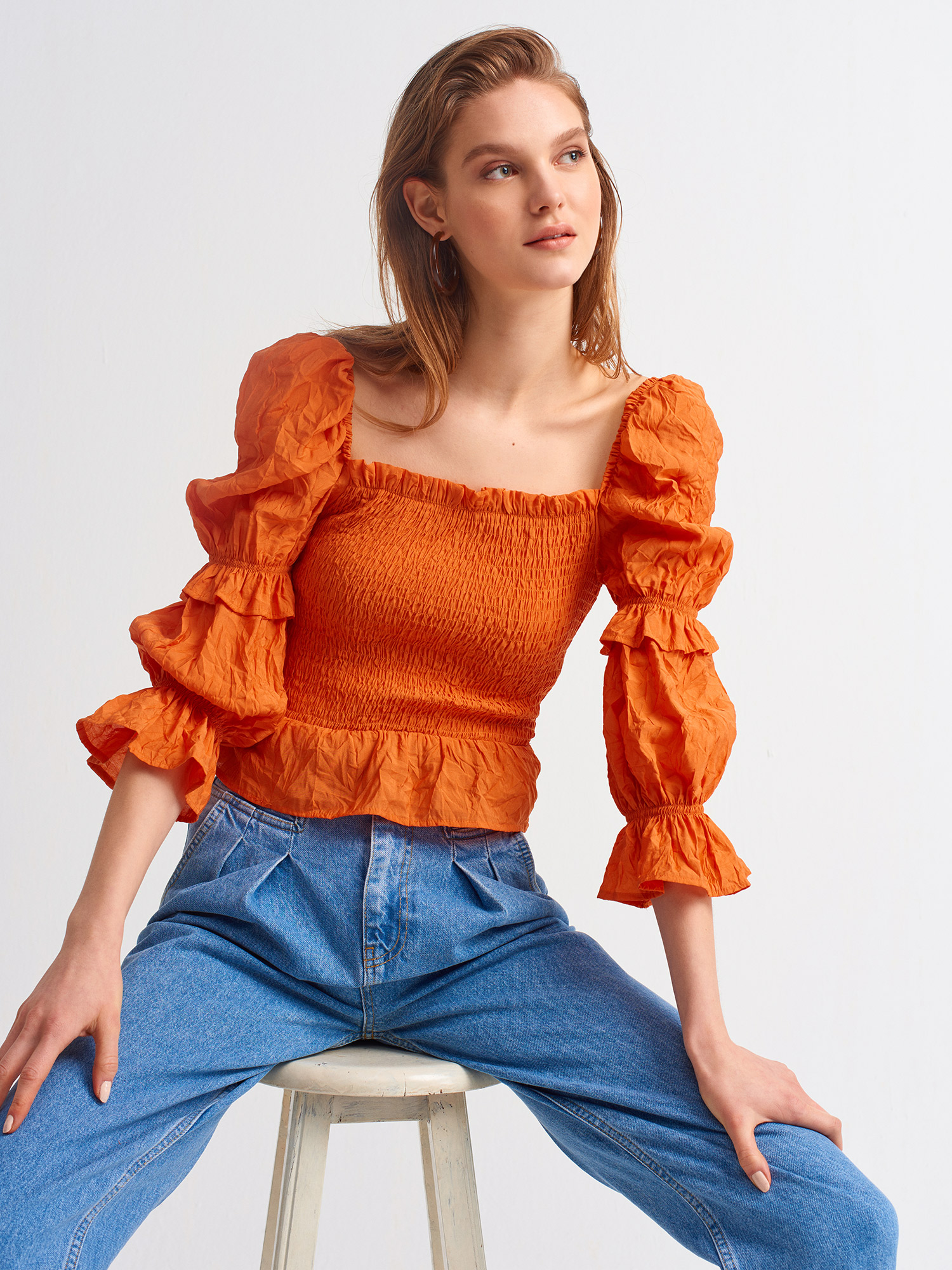 5784 Kıraşlı Gipeli Bluz-Turuncu
