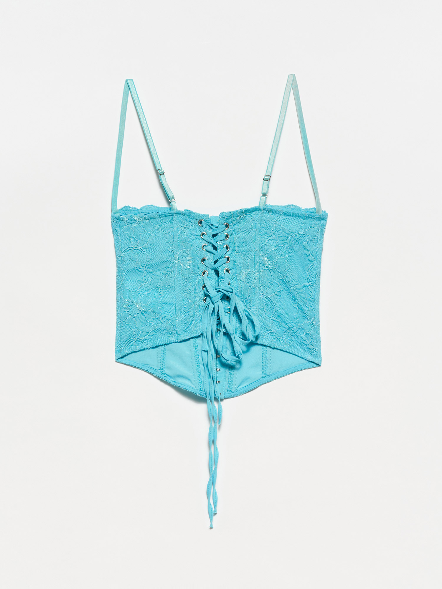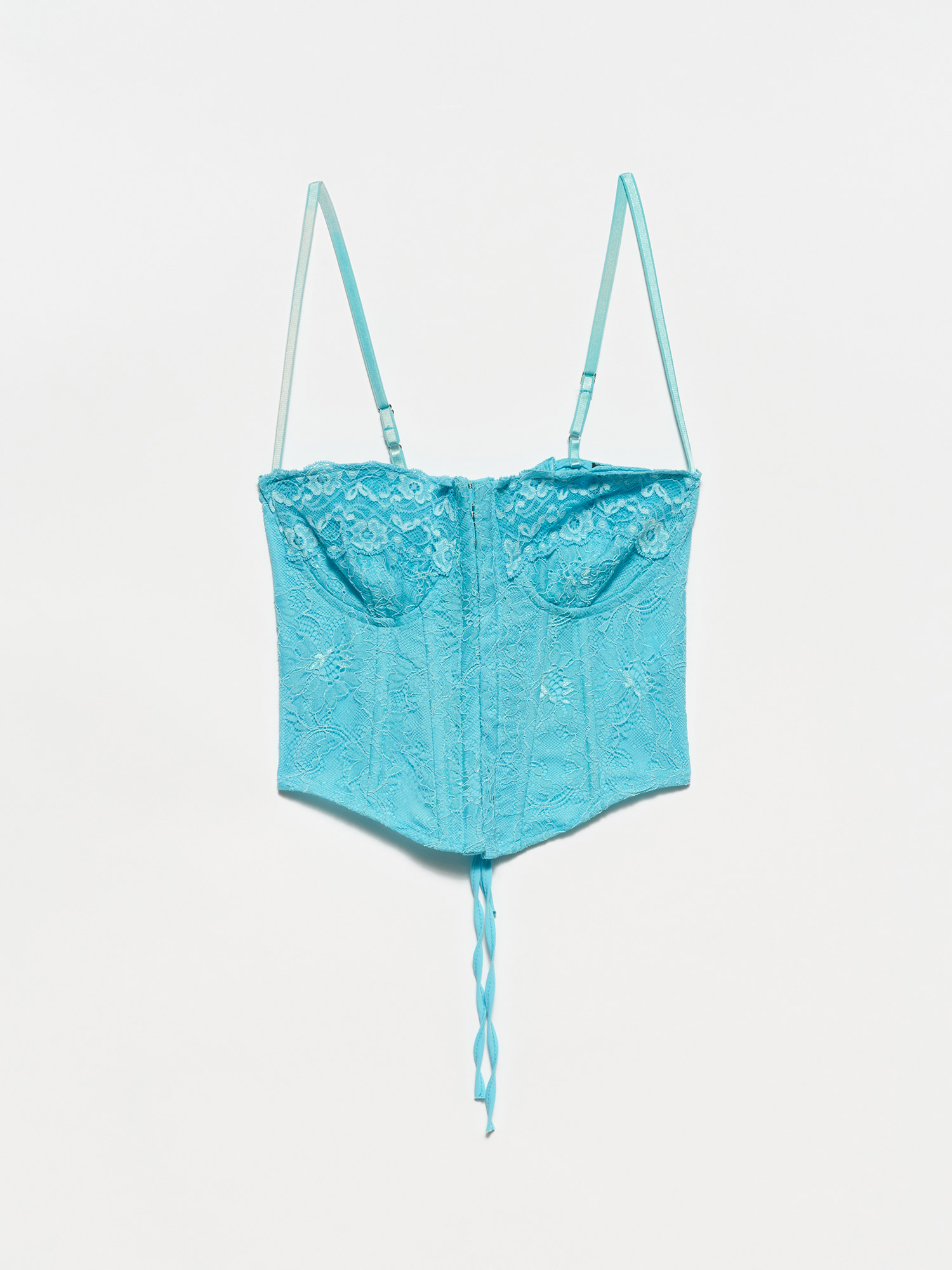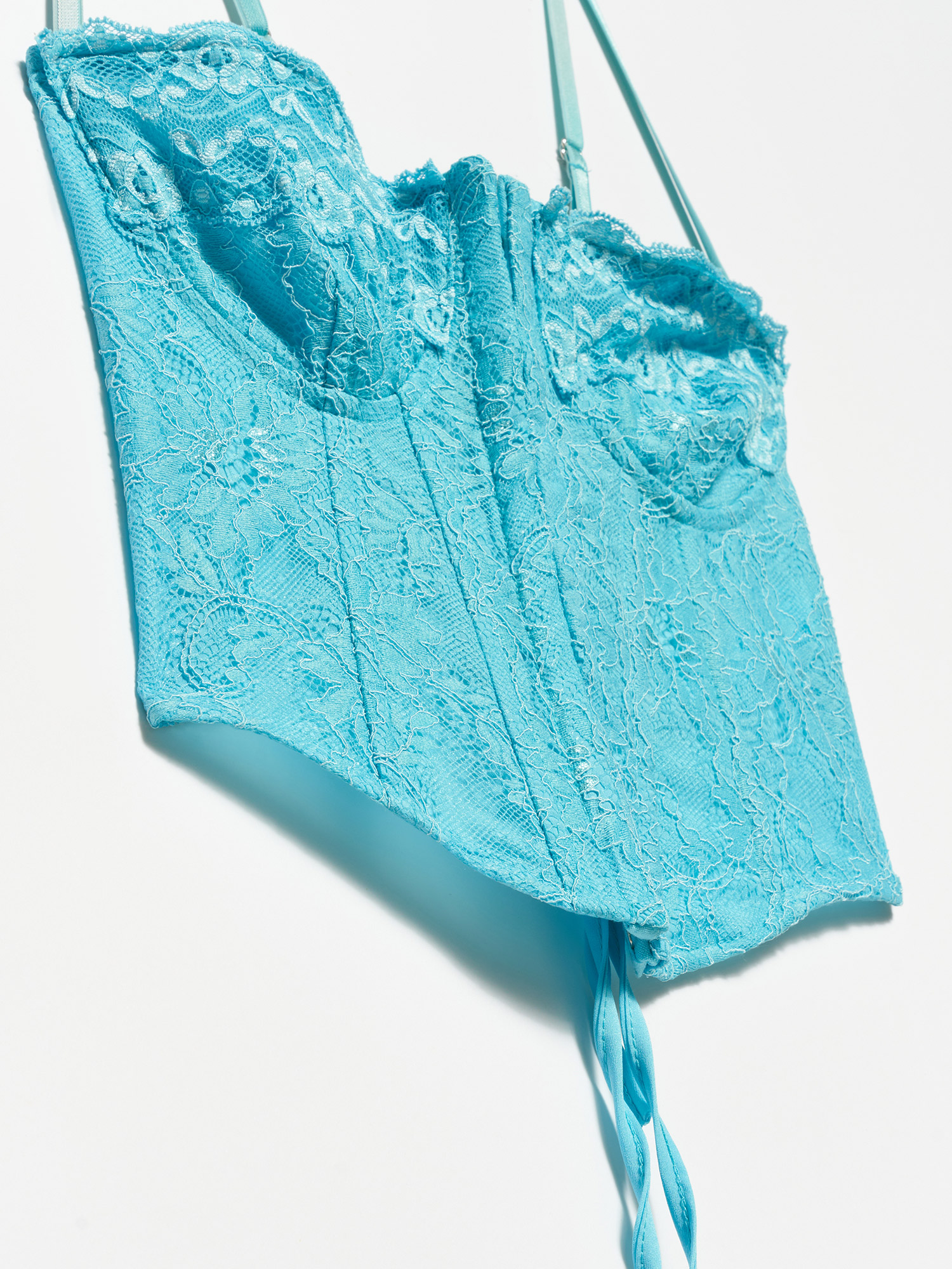 5852 Dantel Detaylı Korse Top-Turkuaz